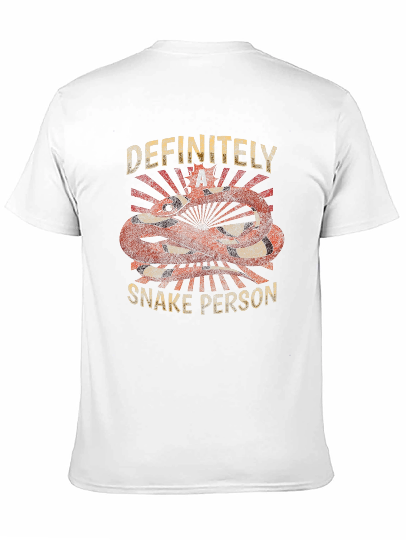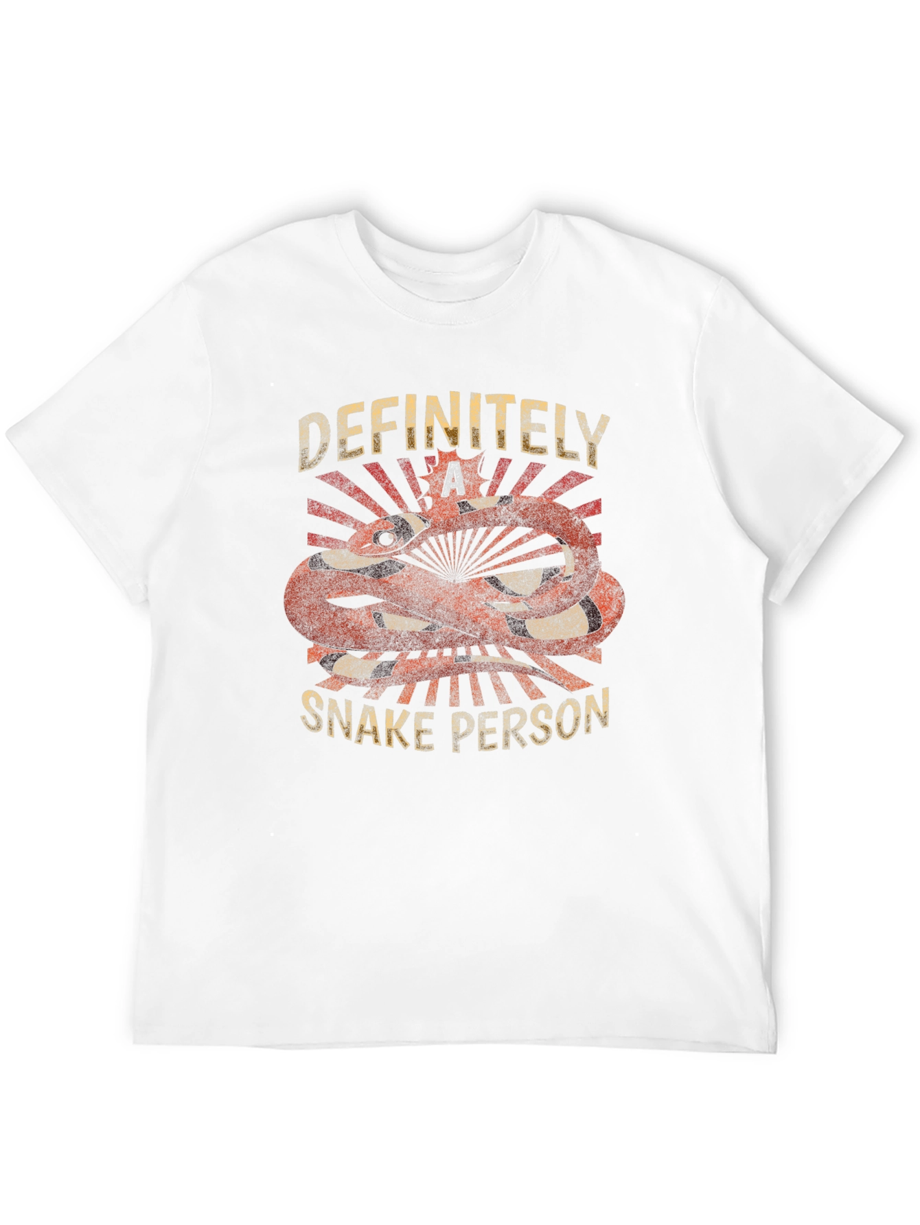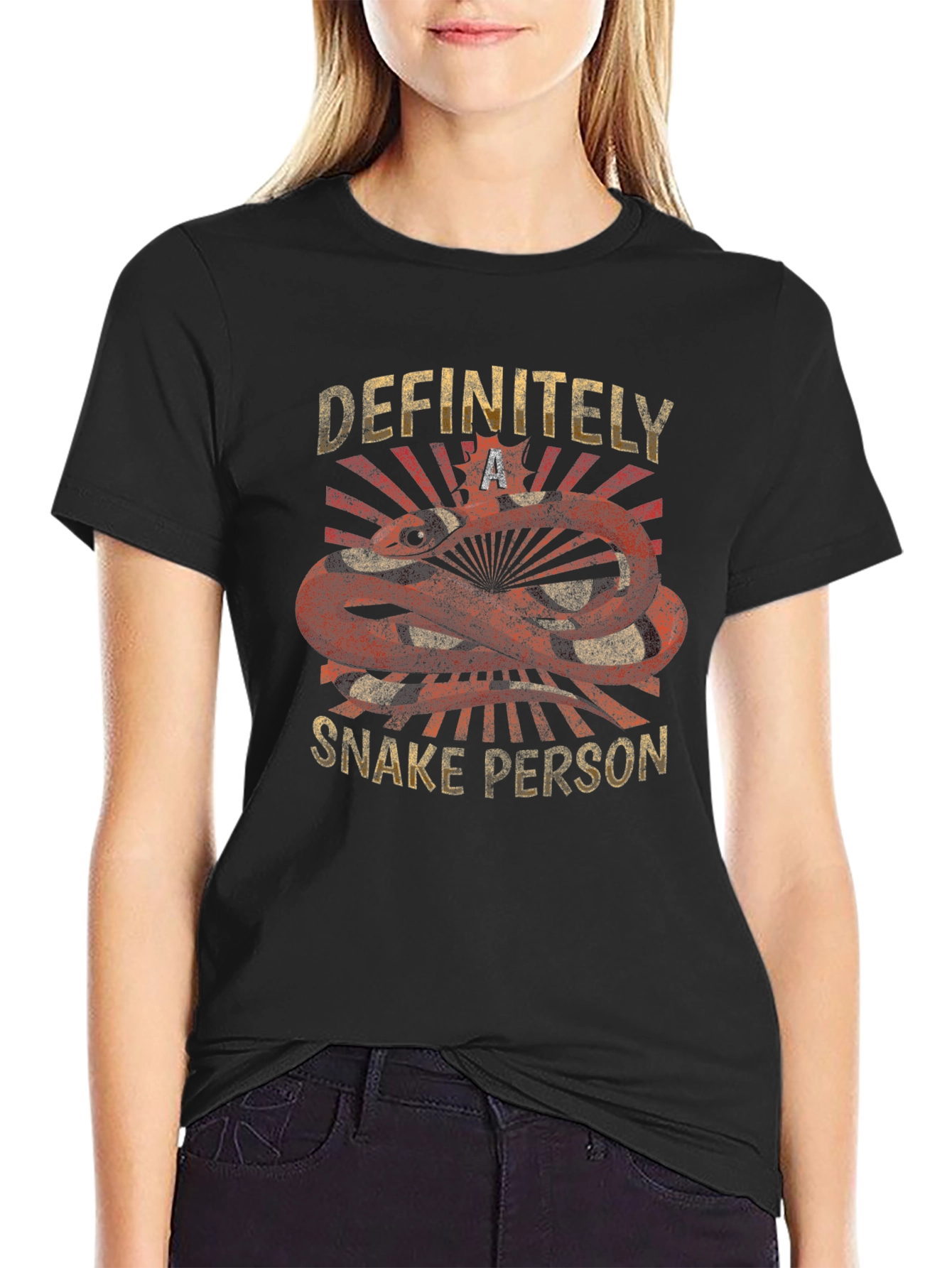 Luce un estilo audaz con esta camiseta negra de manga corta. Presenta un llamativo diseño envejecido con la frase "Definitivamente una Persona Serpiente", con una serpiente enroscada sobre un fondo de rayos rojos y blancos. El diseño sugiere un estilo vintage y un atractivo rebelde. Perfecta para los amantes de los animales, la naturaleza o aquellos que buscan una prenda con personalidad. Su color neutro la hace fácil de combinar con cualquier atuendo casual. Ideal para llevar en el día a día, eventos informales o como una declaración de tu singularidad.