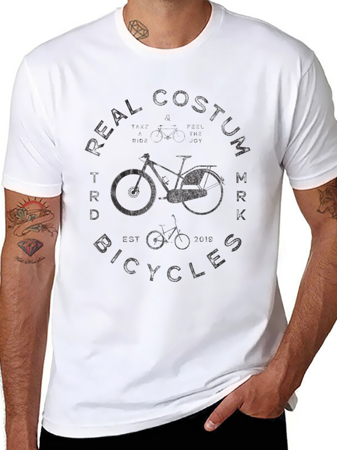 Esta camiseta negra presenta un diseño sutil pero llamativo. En el centro, se aprecia la silueta de una bicicleta rodeada de texto circular, creando un efecto visual interesante y moderno. Confeccionada en un tejido suave y cómodo, esta camiseta es ideal para el uso diario. Su color negro la hace versátil para combinar con cualquier estilo, ya sea casual o más deportivo. Perfecta para los amantes del ciclismo que buscan una prenda discreta y con estilo para expresar su pasión. Su diseño único la convierte en una excelente opción para regalar.