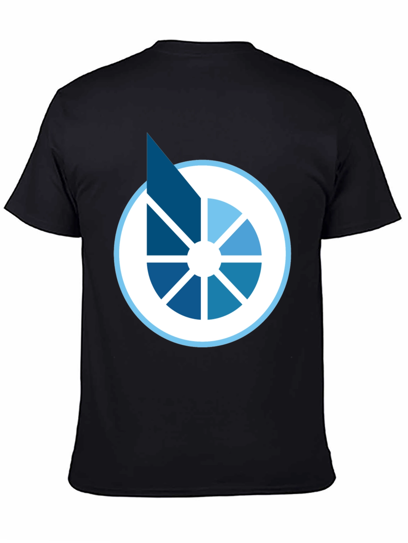 Esta camiseta negra presenta un diseño circular abstracto en el centro. El diseño se compone de un círculo blanco delineado en azul claro, con secciones internas en tonos de azul que varían en intensidad. Una forma triangular azul sobresale de la parte superior del círculo, añadiendo un toque moderno y llamativo. Ideal para un look casual y cómodo, esta camiseta es perfecta para expresar tu estilo único. Fabricada con materiales de alta calidad, promete durabilidad y confort durante todo el día. Combina esta camiseta con tus jeans o pantalones favoritos para un outfit relajado pero con estilo. ¡Añade un toque de arte abstracto a tu guardarropa!