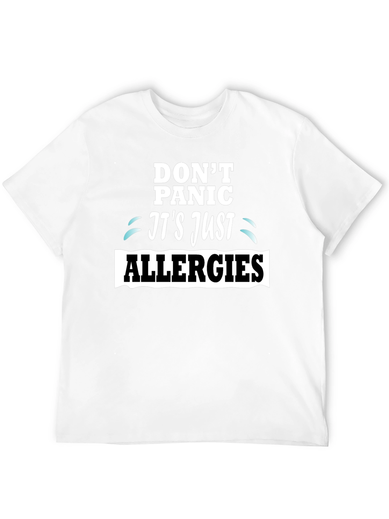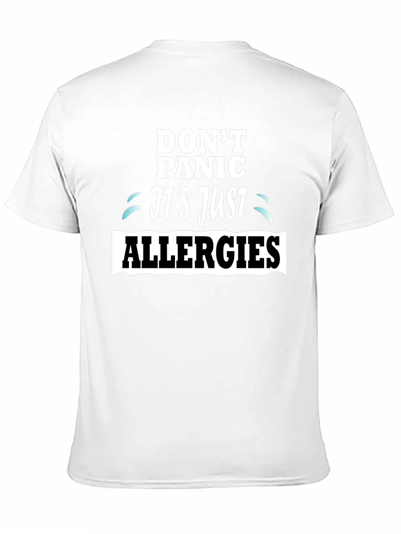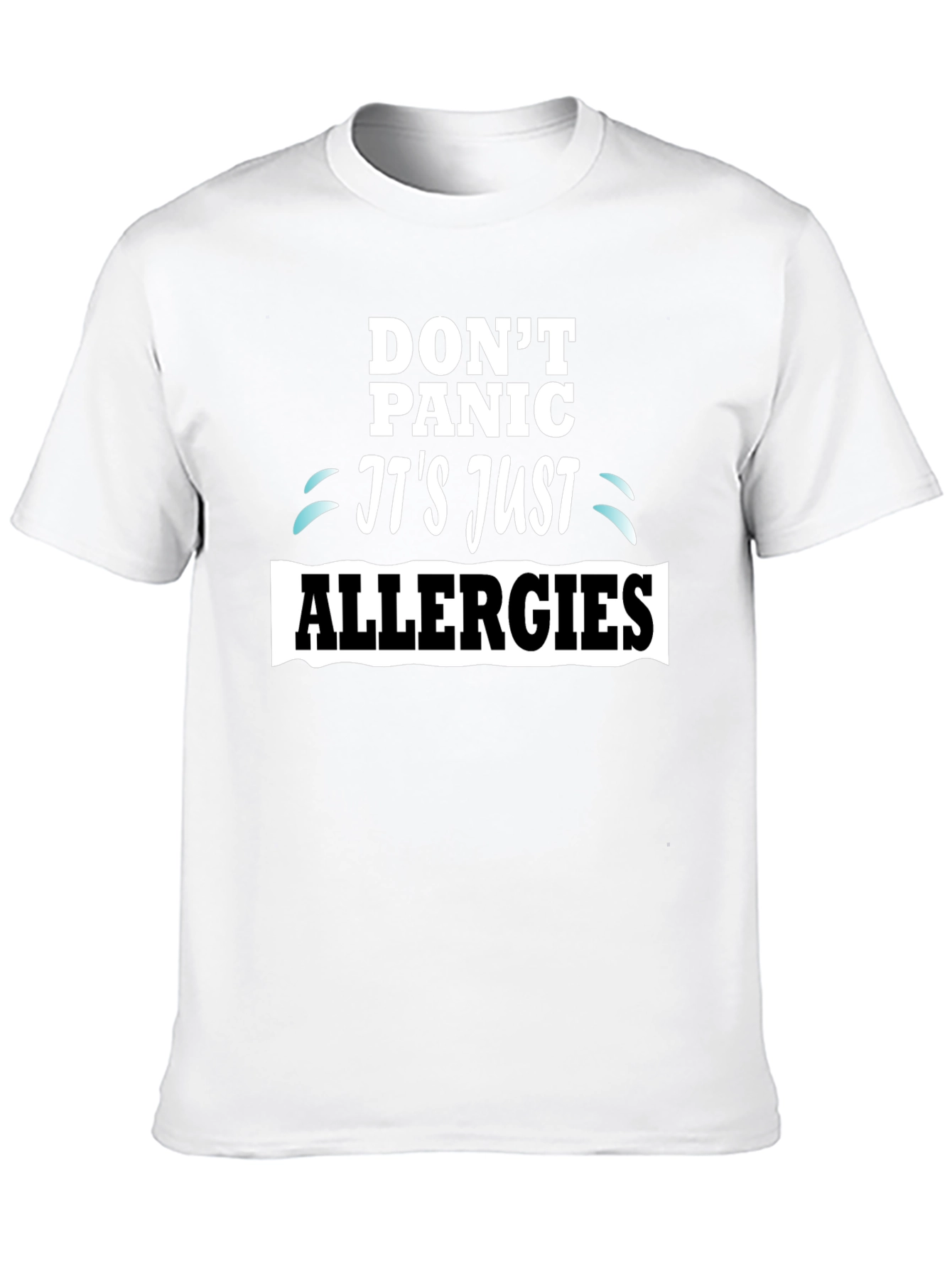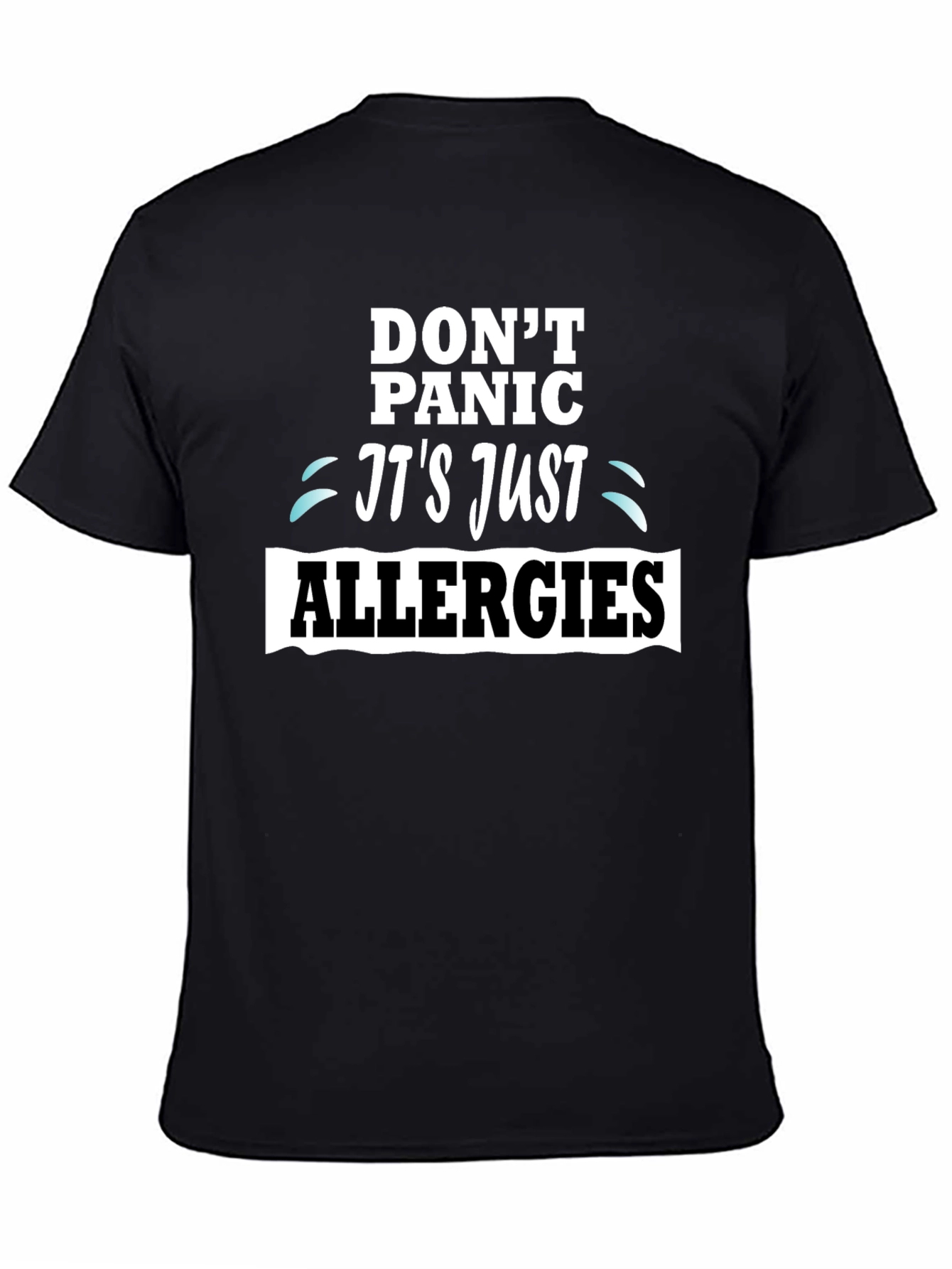 Luce esta divertida camiseta negra con el llamativo mensaje "Don't Panic It's Just Allergies" en letras blancas contrastantes. Perfecta para expresar tu sentido del humor y aliviar la tensión durante la temporada de alergias. El diseño presenta detalles originales que añaden un toque único. Confeccionada con materiales suaves y cómodos, esta camiseta es ideal para el uso diario. ¡Muestra tu personalidad y comparte una sonrisa con esta prenda original y llamativa! Ideal para usar en reuniones informales, salidas con amigos o simplemente para relajarte en casa. Esta camiseta es una forma divertida de hacer frente a las alergias.