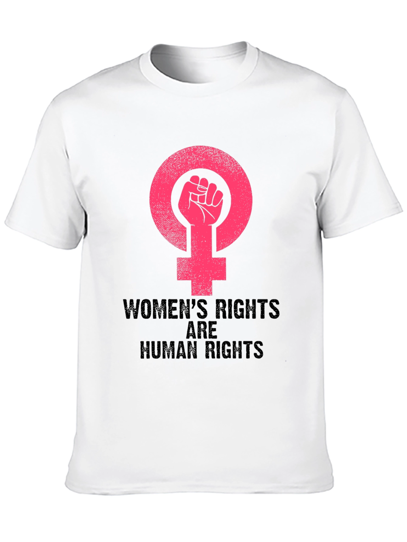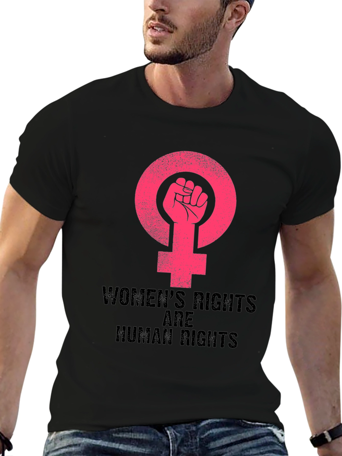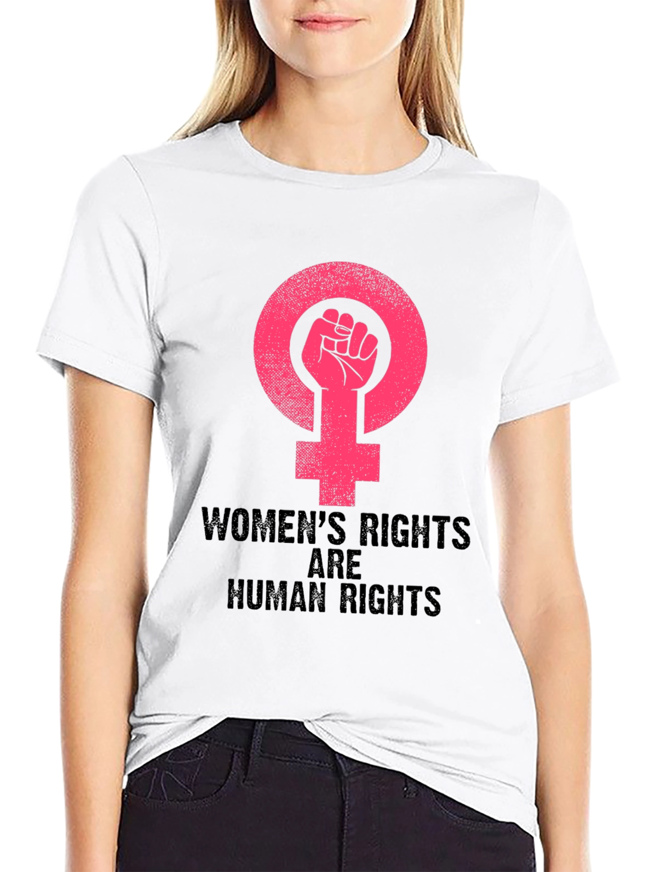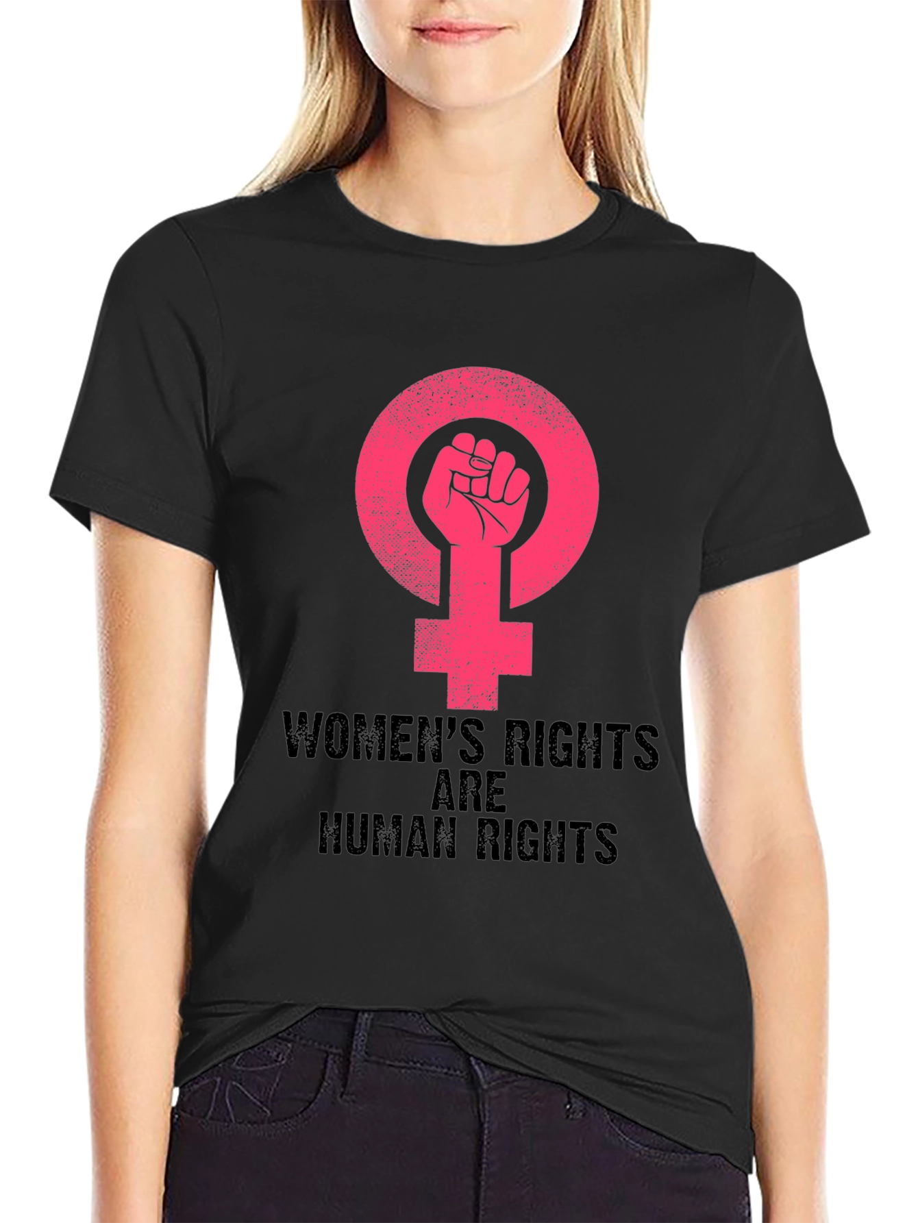Luce tu compromiso con la igualdad con esta llamativa camiseta negra. Presenta un diseño gráfico en color rosa que combina el símbolo femenino con un puño levantado, representando el poder y la solidaridad. Debajo del símbolo, se lee "WOMEN'S RIGHTS ARE HUMAN RIGHTS" (Los derechos de la mujer son derechos humanos) en letras negras de estilo desgastado. Confeccionada en un tejido de algodón suave y cómodo, esta camiseta de manga corta es perfecta para el día a día, protestas, eventos sociales o simplemente para expresar tu apoyo a la causa. ¡Vístete con conciencia y haz una declaración de principios!