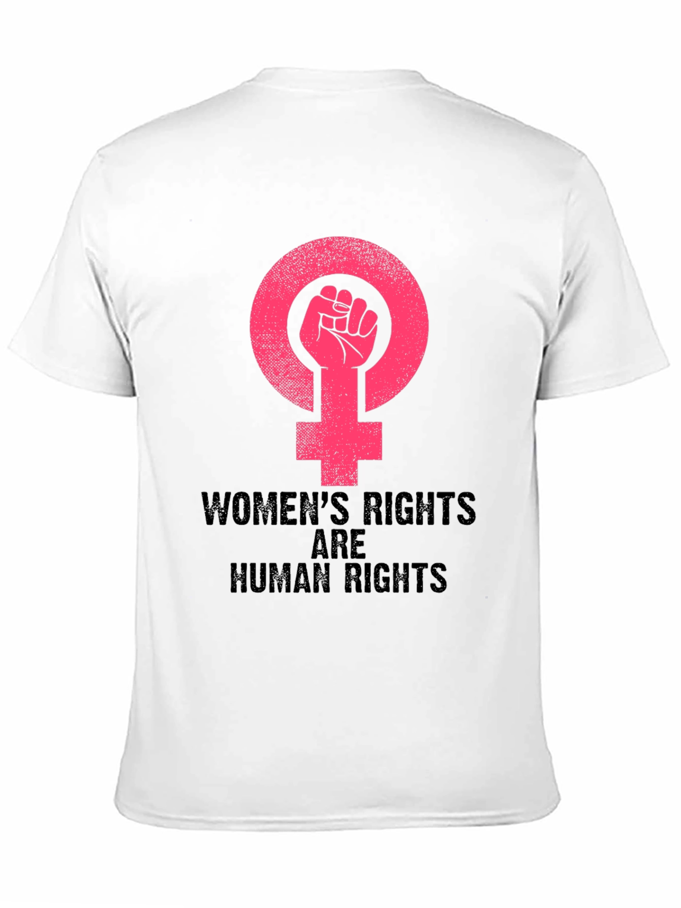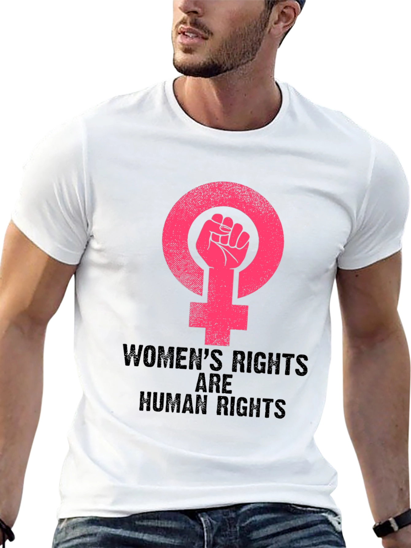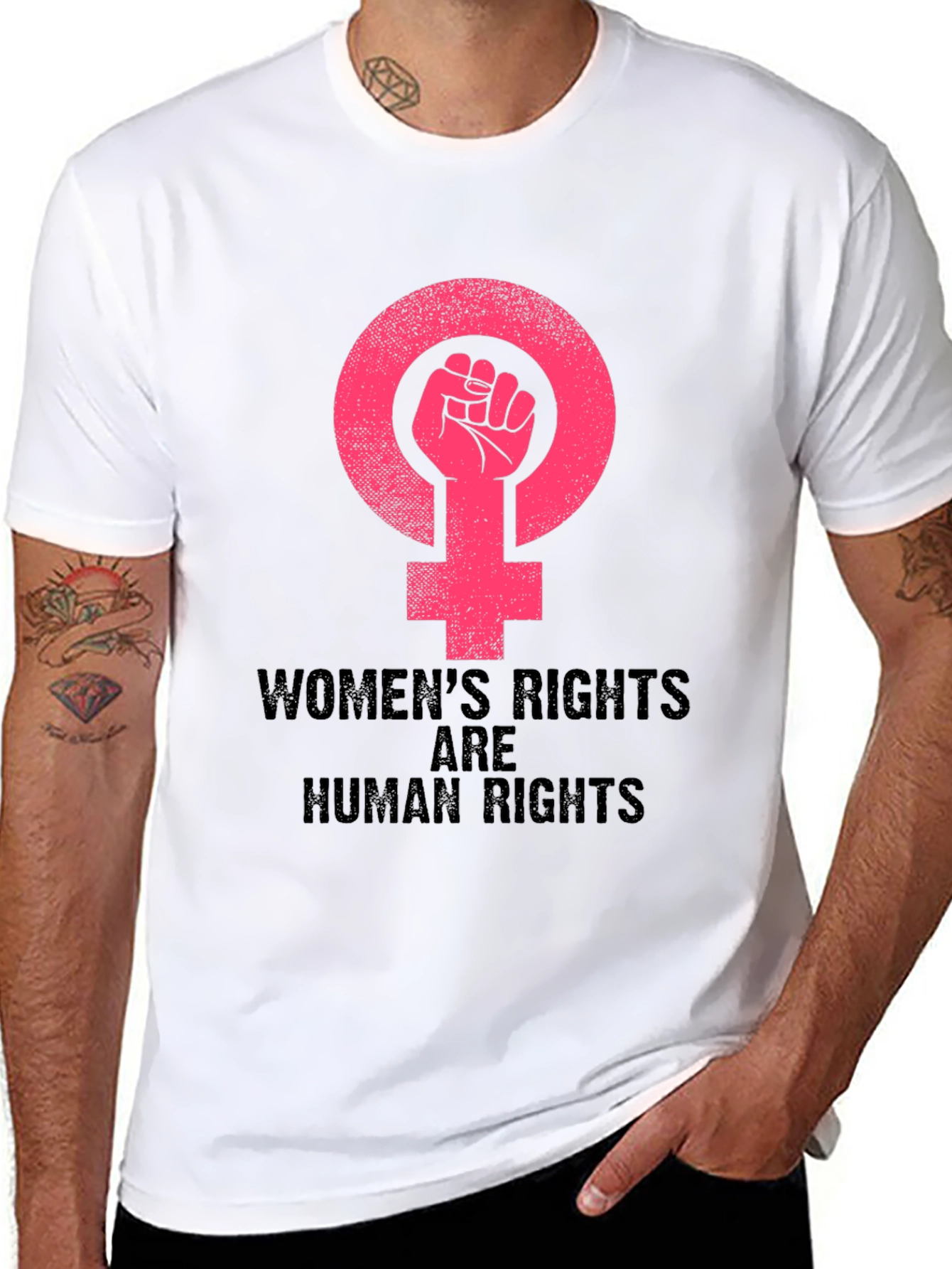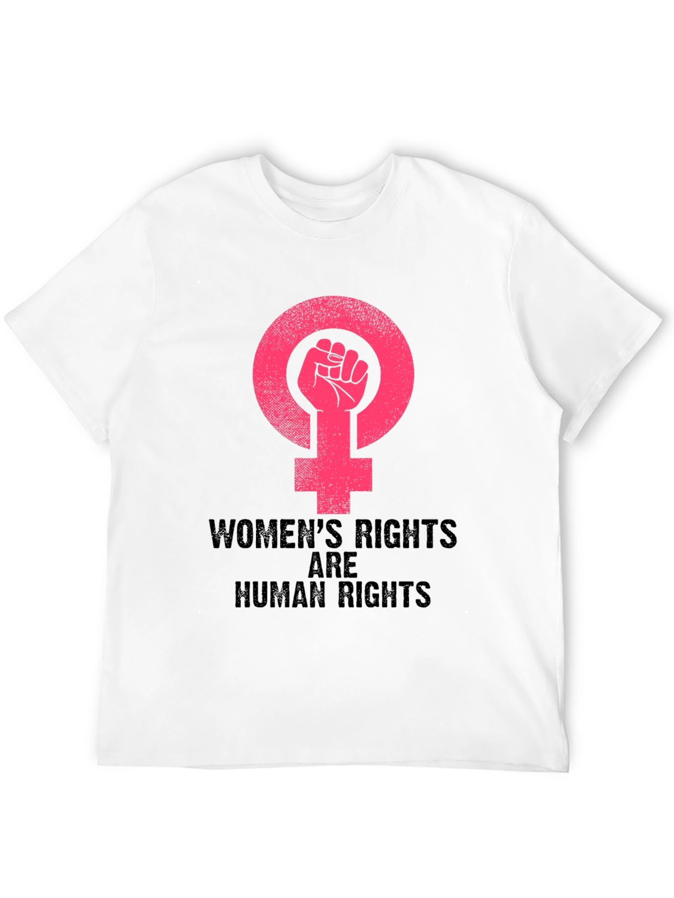 Luce tu compromiso con la igualdad con esta llamativa camiseta negra. Presenta un diseño gráfico en color rosa que combina el símbolo femenino con un puño levantado, representando el poder y la solidaridad. Debajo del símbolo, se lee "WOMEN'S RIGHTS ARE HUMAN RIGHTS" (Los derechos de la mujer son derechos humanos) en letras negras de estilo desgastado. Confeccionada en un tejido de algodón suave y cómodo, esta camiseta de manga corta es perfecta para el día a día, protestas, eventos sociales o simplemente para expresar tu apoyo a la causa. ¡Vístete con conciencia y haz una declaración de principios!