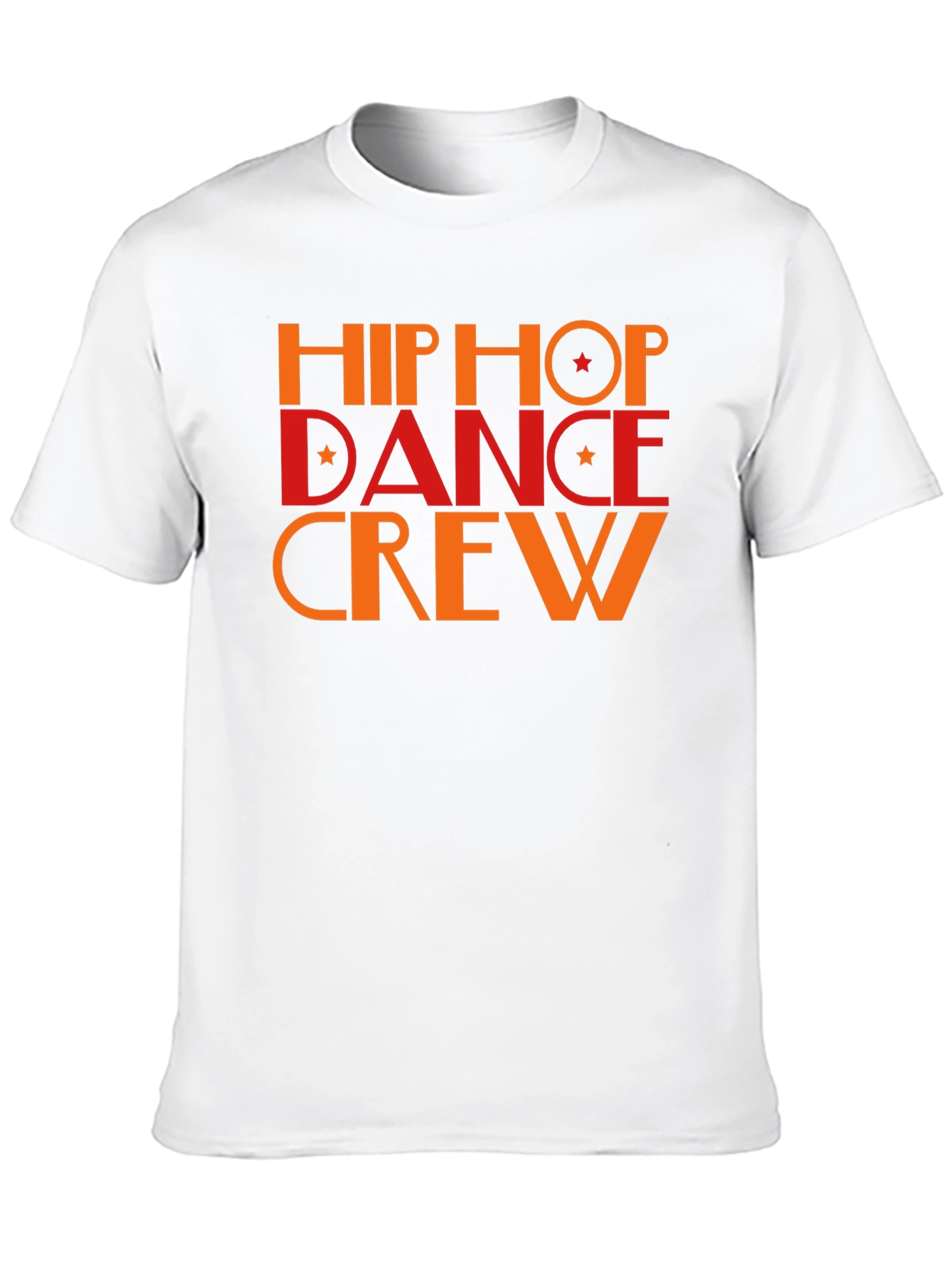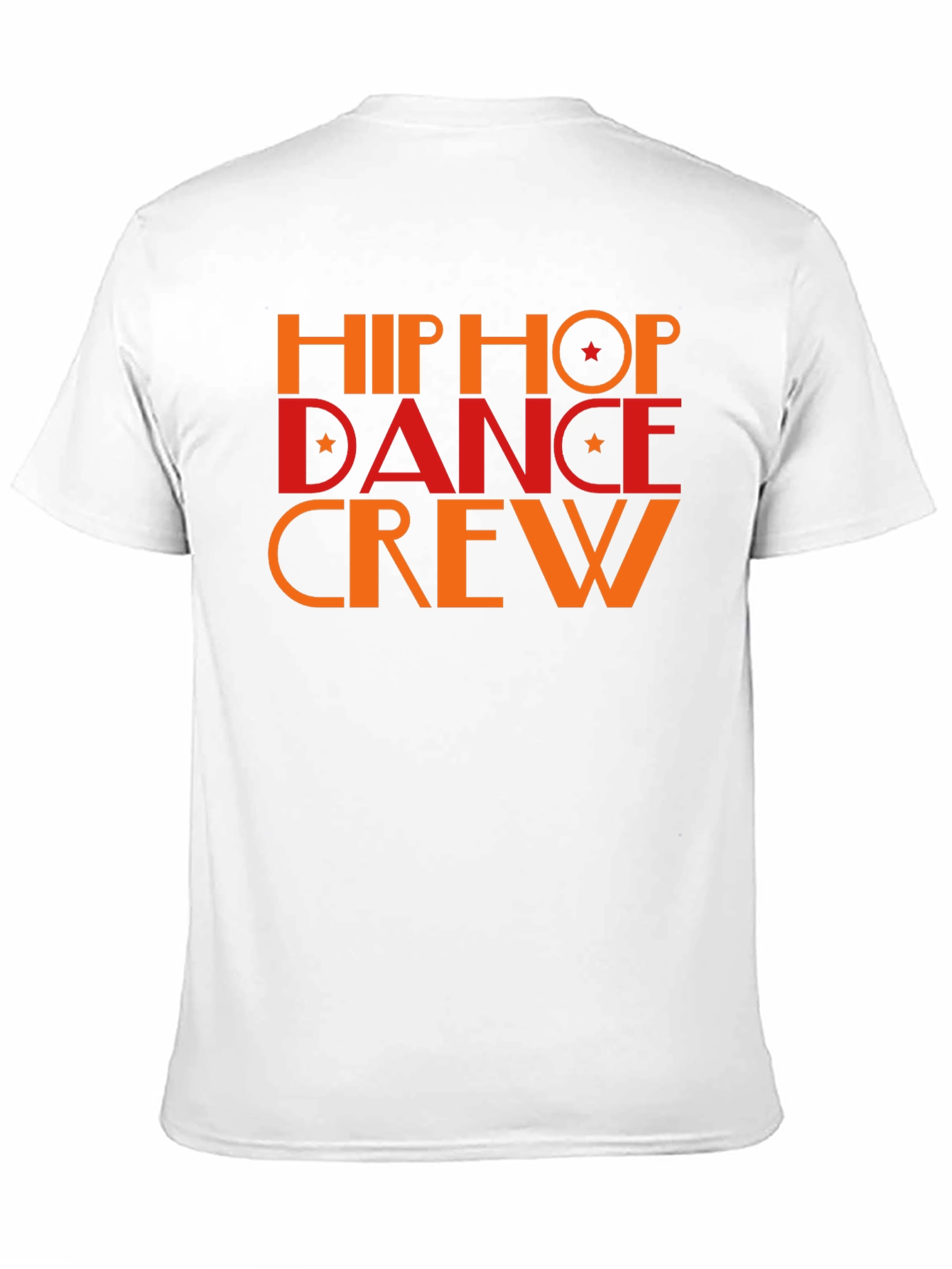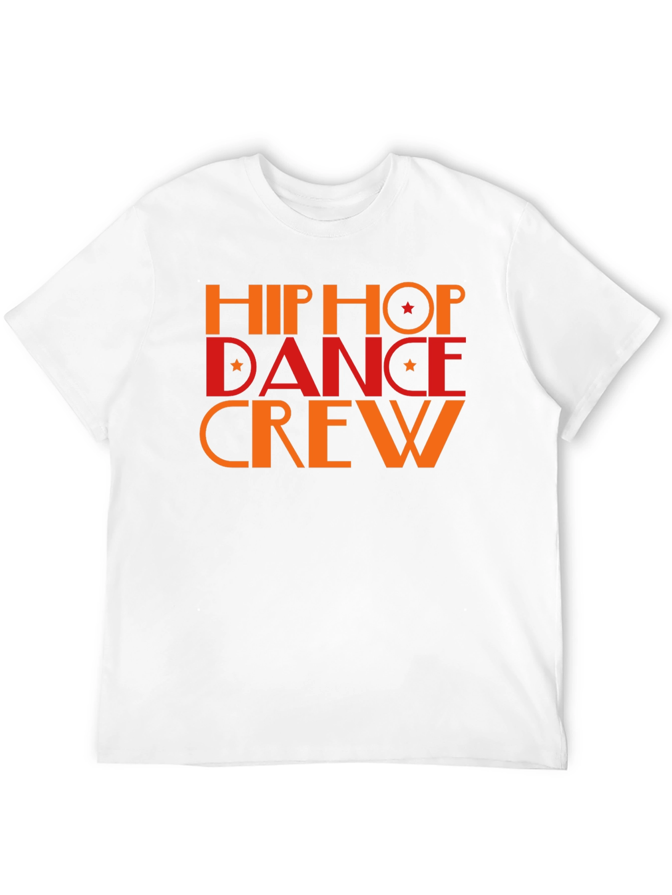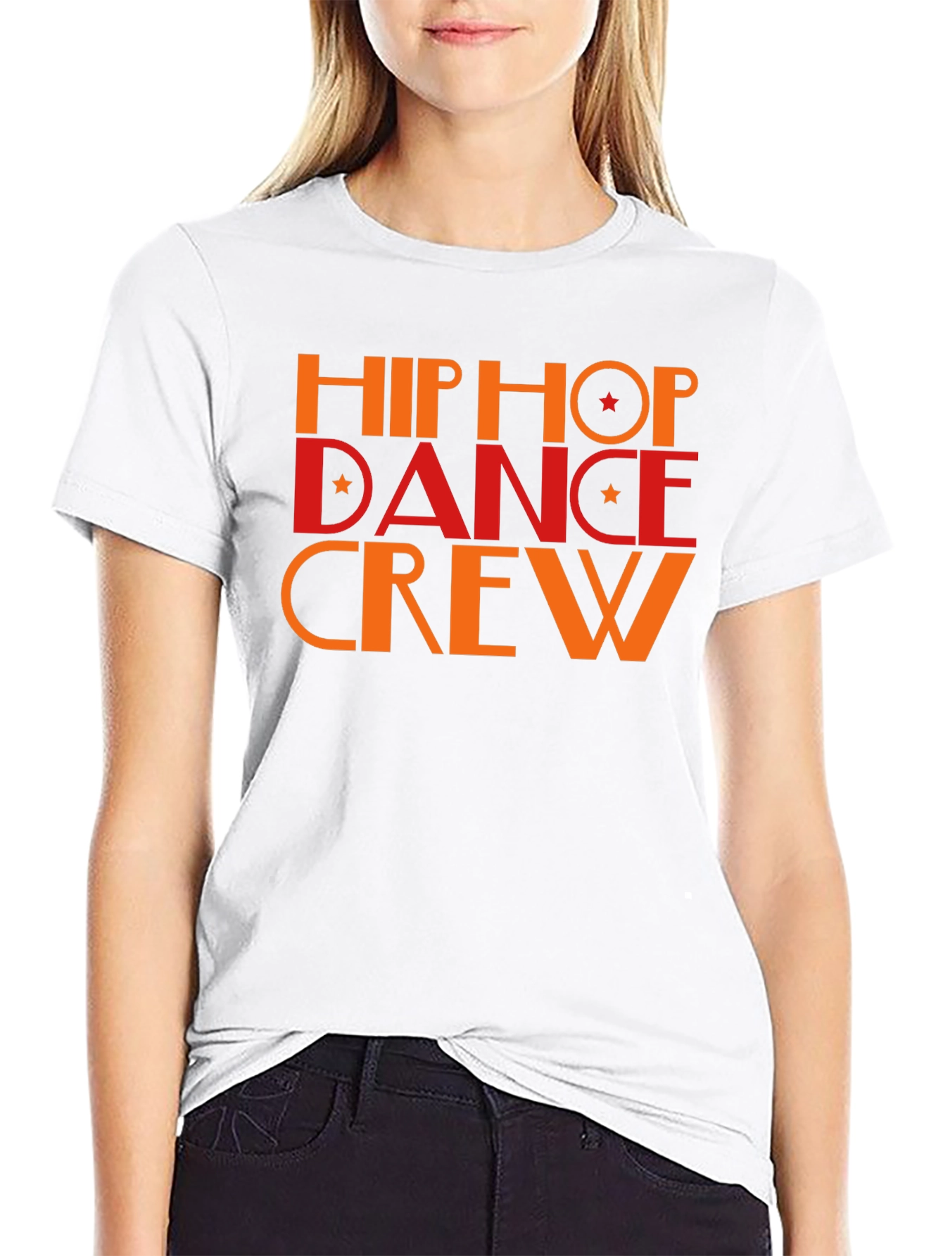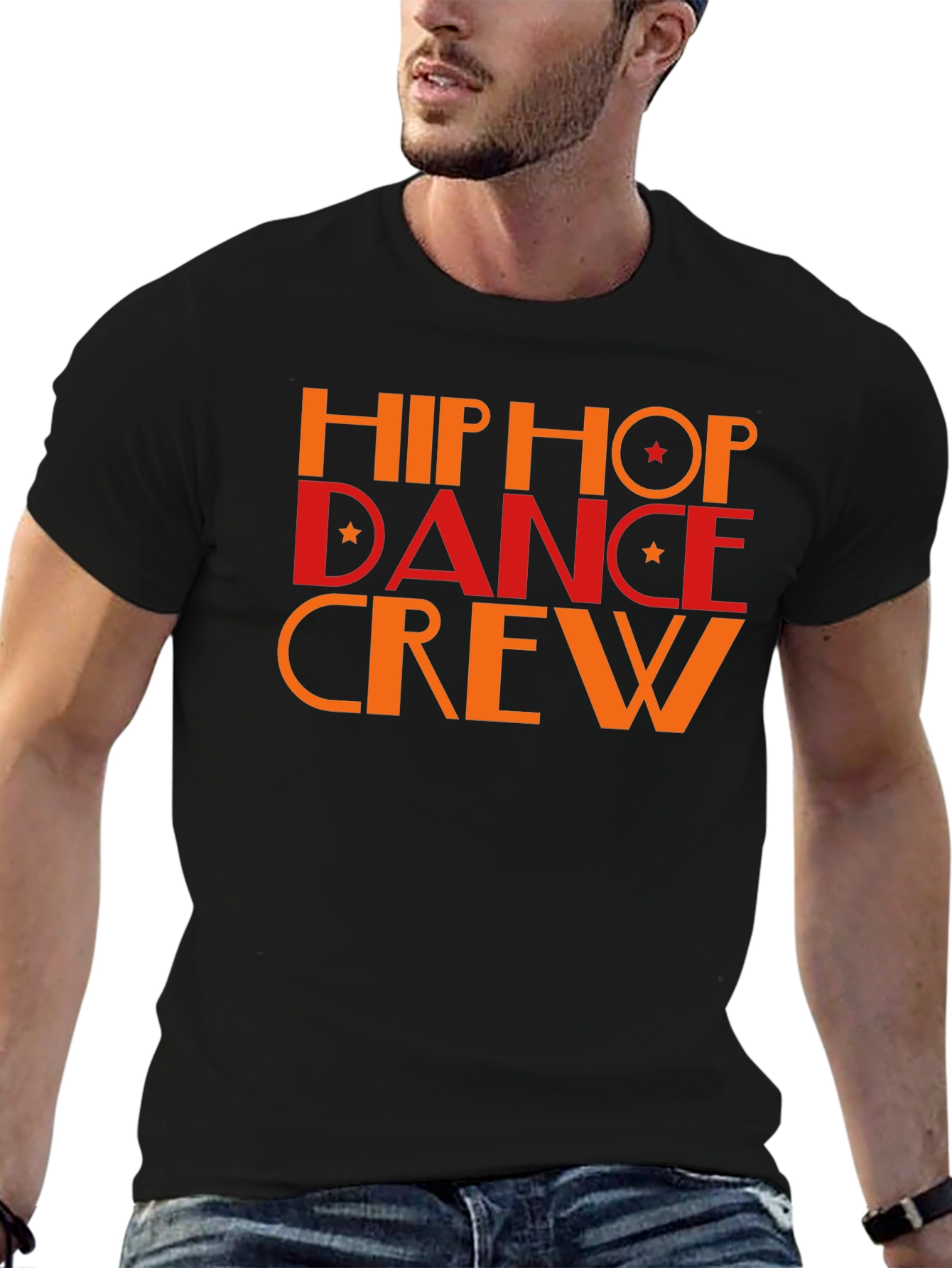 Esta camiseta negra de manga corta presenta un diseño llamativo y moderno. El texto "HIP HOP DANCE CREW" está impreso en letras grandes, con "HIP HOP" y "CREW" en color naranja, y "DANCE" en un rojo vibrante, adornado con estrellas. Ideal para amantes del baile y la cultura hip hop, esta camiseta es perfecta para expresar tu estilo urbano. El tejido parece ser de algodón, lo que garantiza comodidad y frescura. Lúcela en tus clases de baile, eventos de hip hop o simplemente para un look casual con un toque original y divertido. ¡Destaca con esta prenda única!