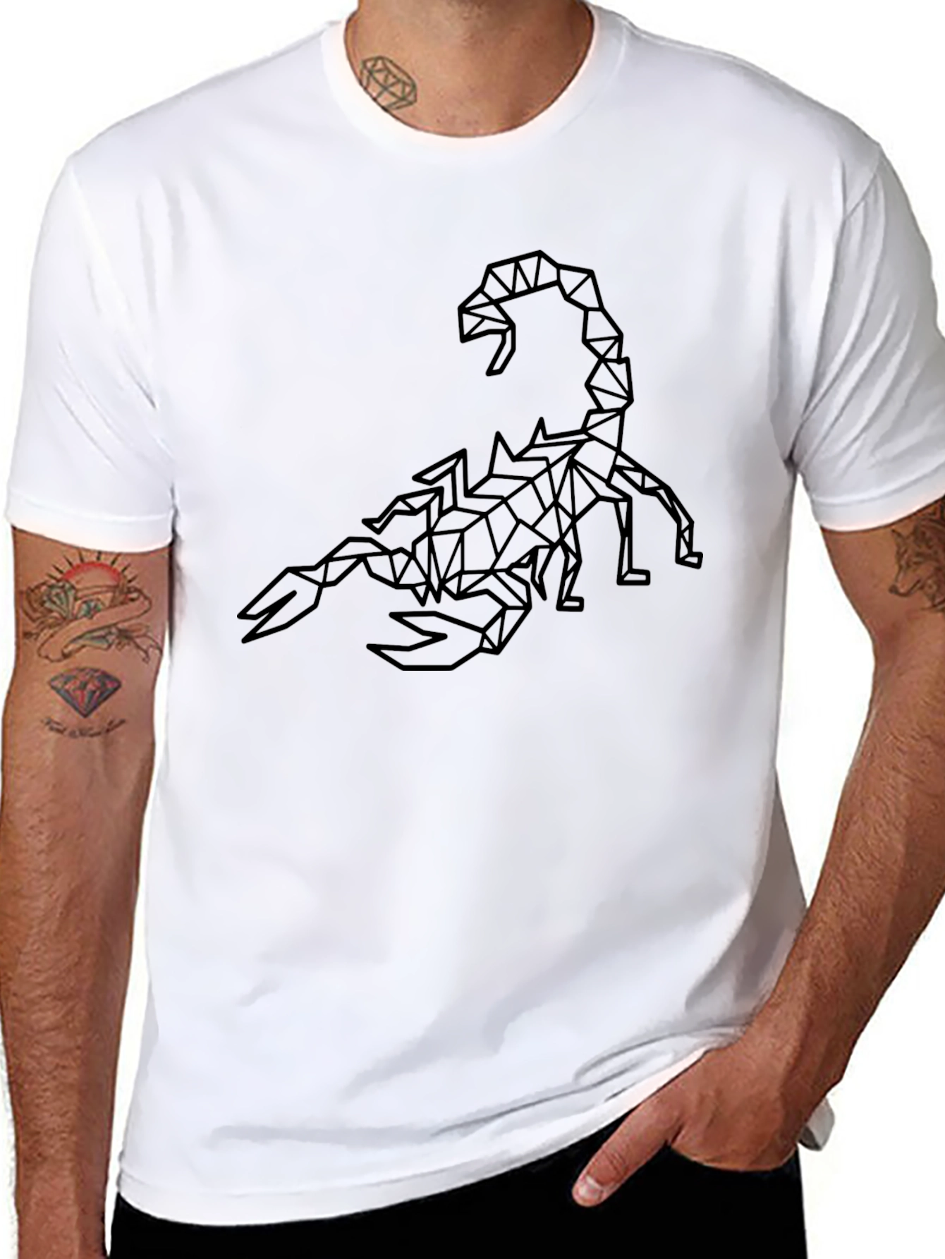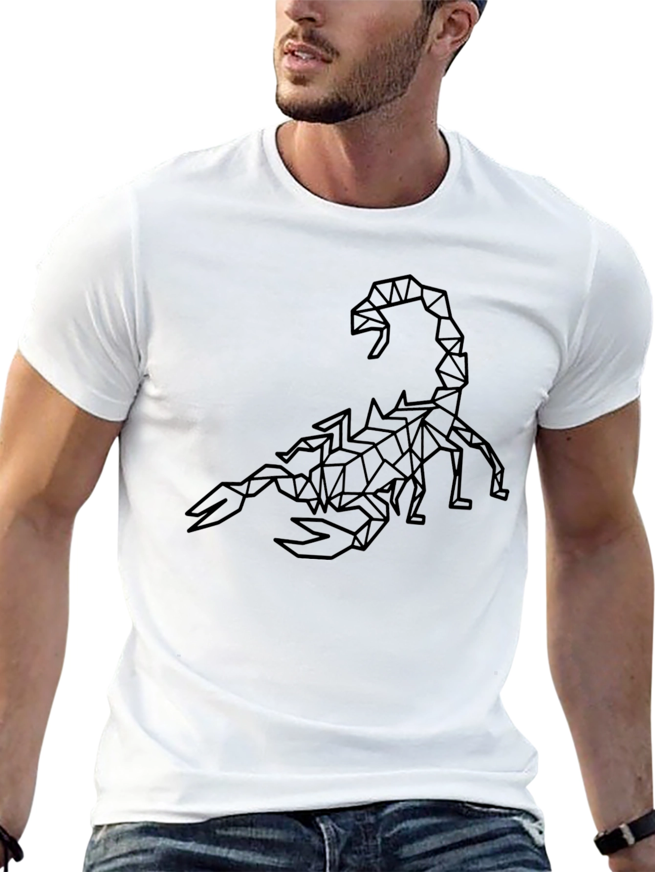 Luce un estilo audaz con esta camiseta negra para hombre. Presenta un diseño único de un escorpión geométrico en el centro, perfecto para destacar. Su corte clásico y tejido suave ofrecen comodidad y un ajuste favorecedor. Ideal para un look casual con un toque original, ya sea para salir con amigos o para el día a día. Combina fácilmente con jeans o pantalones casuales. Una prenda versátil que refleja personalidad y estilo.