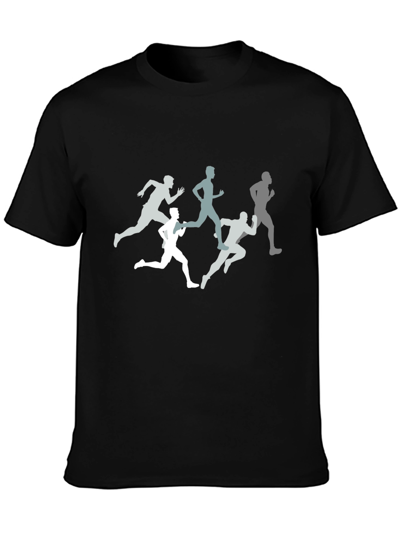 Eleva tu estilo casual con esta camiseta negra de hombre, que presenta un diseño moderno y dinámico de siluetas de corredores. Fabricada en un tejido suave y cómodo, esta camiseta es ideal para el uso diario, ya sea para salir a correr, ir al gimnasio o simplemente relajarte en casa. El estampado único añade un toque deportivo y distintivo a tu vestuario. Combínala con tus pantalones vaqueros o pantalones deportivos favoritos para un look relajado pero con estilo. ¡Una prenda imprescindible para cualquier hombre activo y moderno!