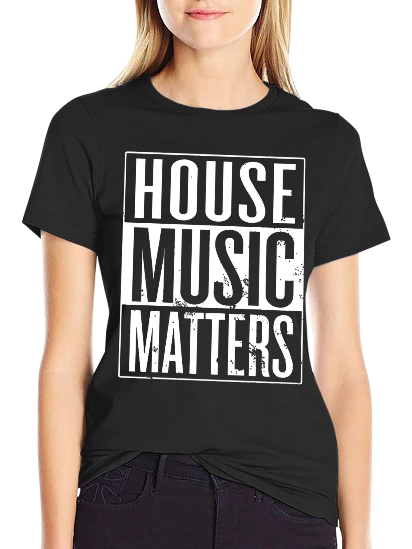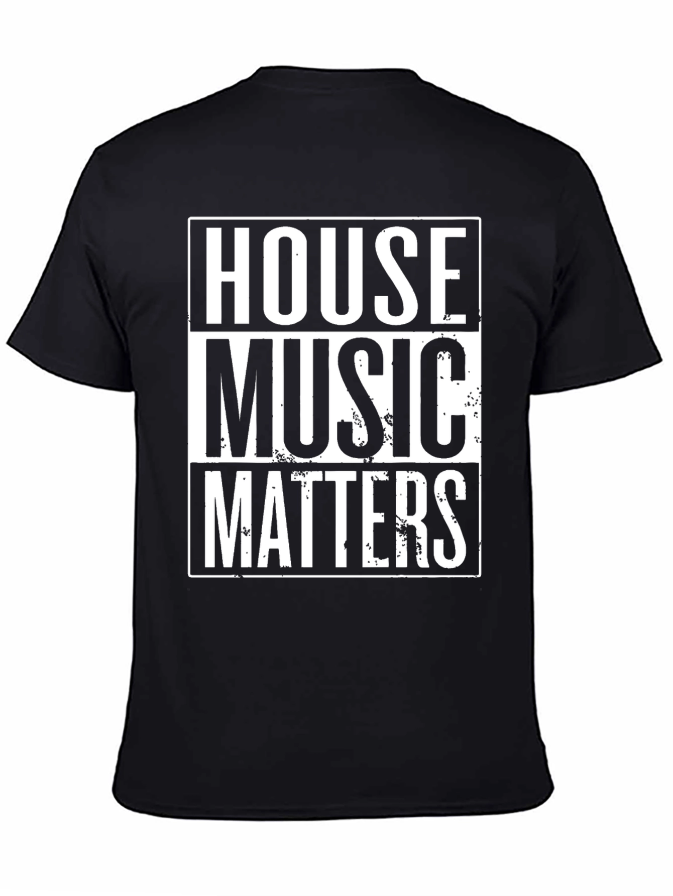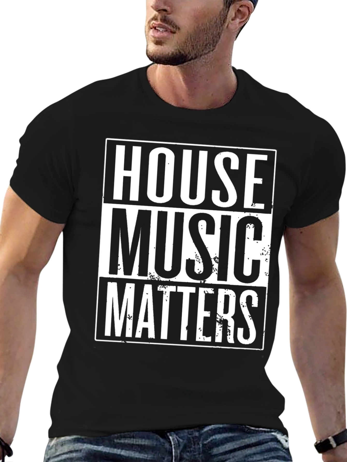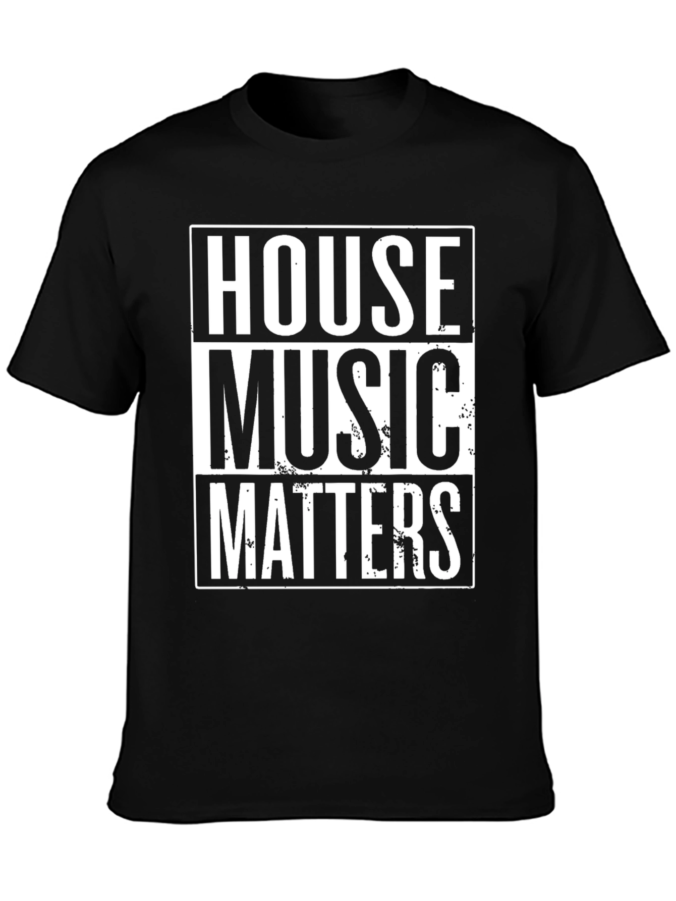 Demuestra tu amor por la música house con esta camiseta negra de diseño impactante. Fabricada en un material aparentemente suave y cómodo, esta camiseta presenta una impresión gráfica audaz con el lema "HOUSE MUSIC MATTERS" en letras blancas dentro de recuadros, dándole un toque moderno y llamativo. Ideal para llevar a festivales de música, conciertos o simplemente para expresar tu pasión por este género musical en tu día a día. Su diseño versátil permite combinarla fácilmente con jeans, pantalones cortos o faldas. Haz una declaración de estilo y apoya la música house con esta prenda única y atractiva.