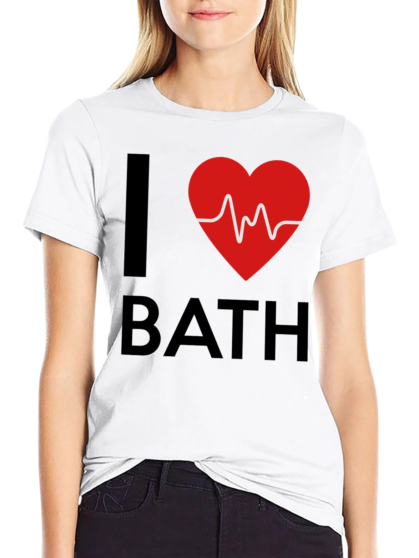 Camiseta Negra I Heart Bath con Diseño de Latido