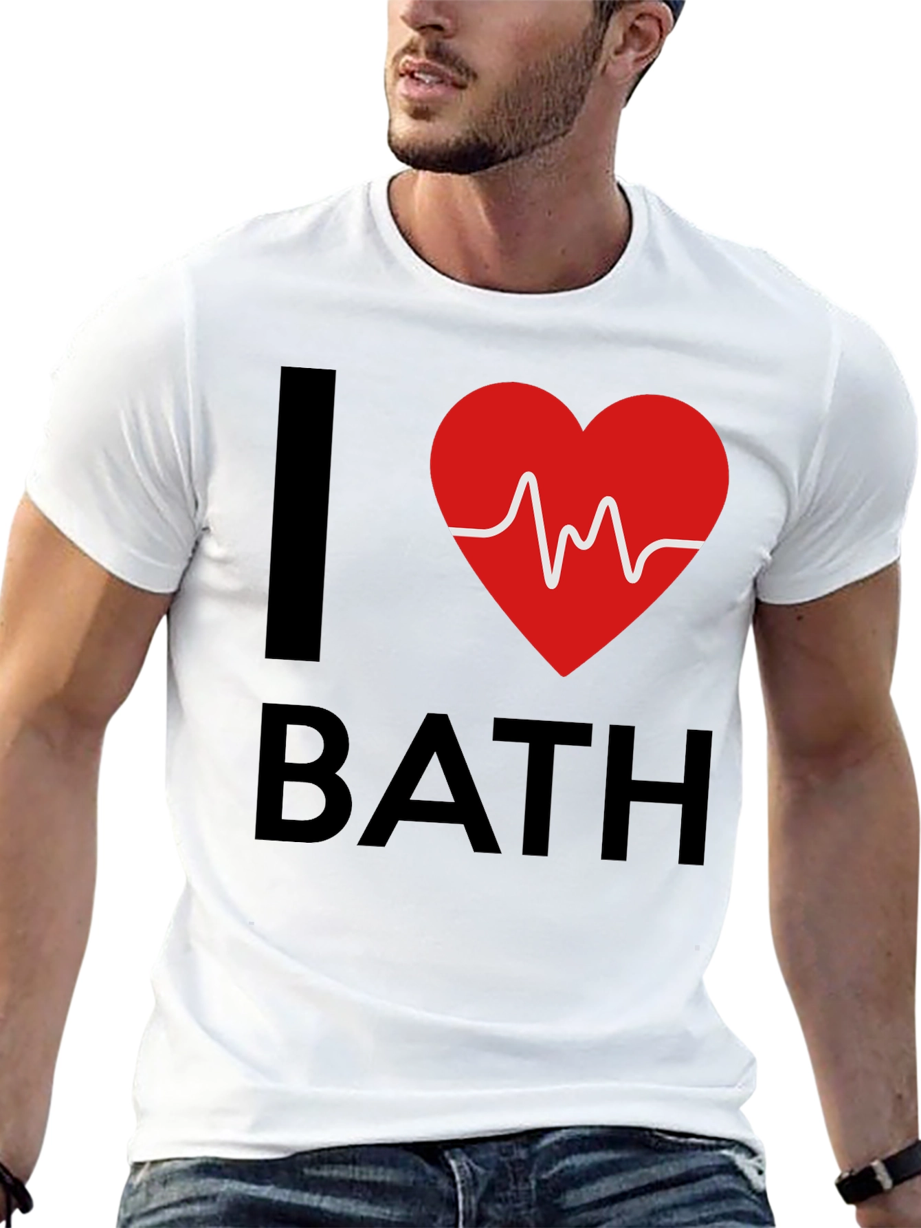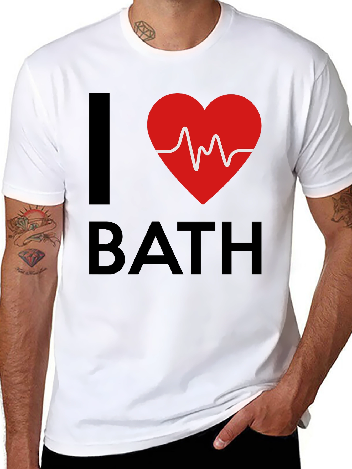 Muestra tu amor por el baño con esta moderna camiseta negra. Con un diseño llamativo que presenta una "I" grande, un corazón rojo con un latido blanco en el centro, y la palabra "BATH" debajo. Perfecta para relajarse en casa después de un largo día, o para llevarla en un ambiente casual. Esta camiseta es ideal para aquellos que disfrutan de un buen baño y quieren expresar su pasión con estilo. Fabricada con materiales suaves y cómodos, ofrece un ajuste relajado para el uso diario. Un regalo perfecto para los amantes del baño.