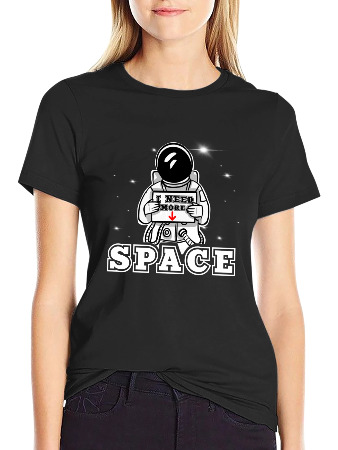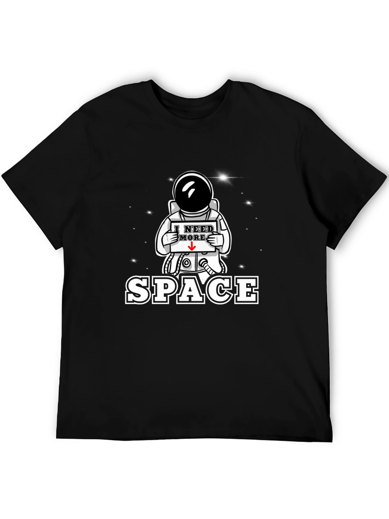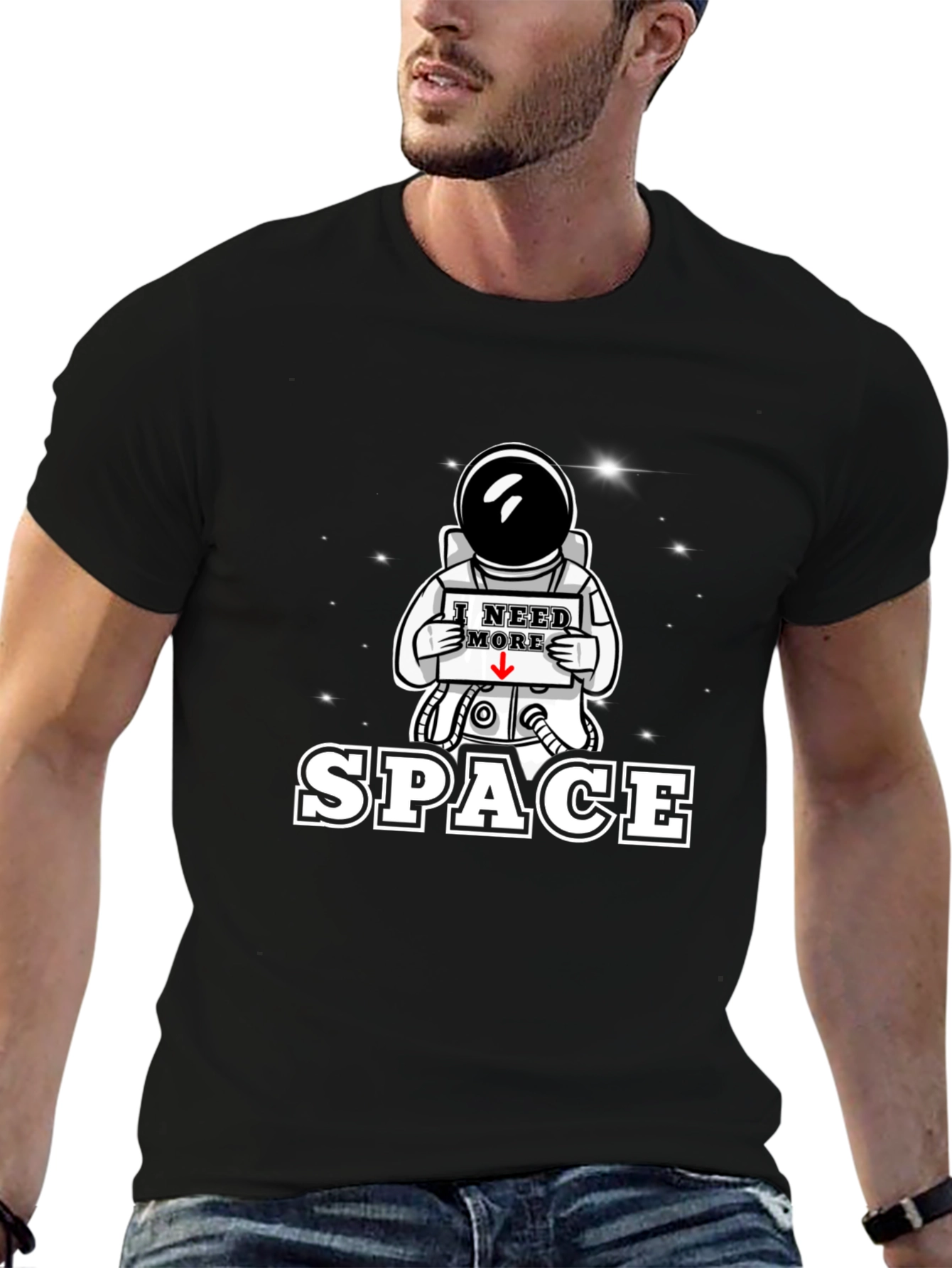 Luce un estilo único con esta camiseta negra de manga corta. Presenta un diseño divertido y original con un astronauta sosteniendo un cartel que dice "I NEED MORE SPACE". Ideal para los amantes del espacio y aquellos que disfrutan de un toque de humor en su vestimenta. Fabricada en un material suave y cómodo, perfecta para el uso diario. El diseño llamativo seguramente atraerá miradas y conversaciones. Combina esta camiseta con tus jeans o pantalones favoritos para un look casual y moderno. ¡Expresa tu personalidad con esta prenda única!