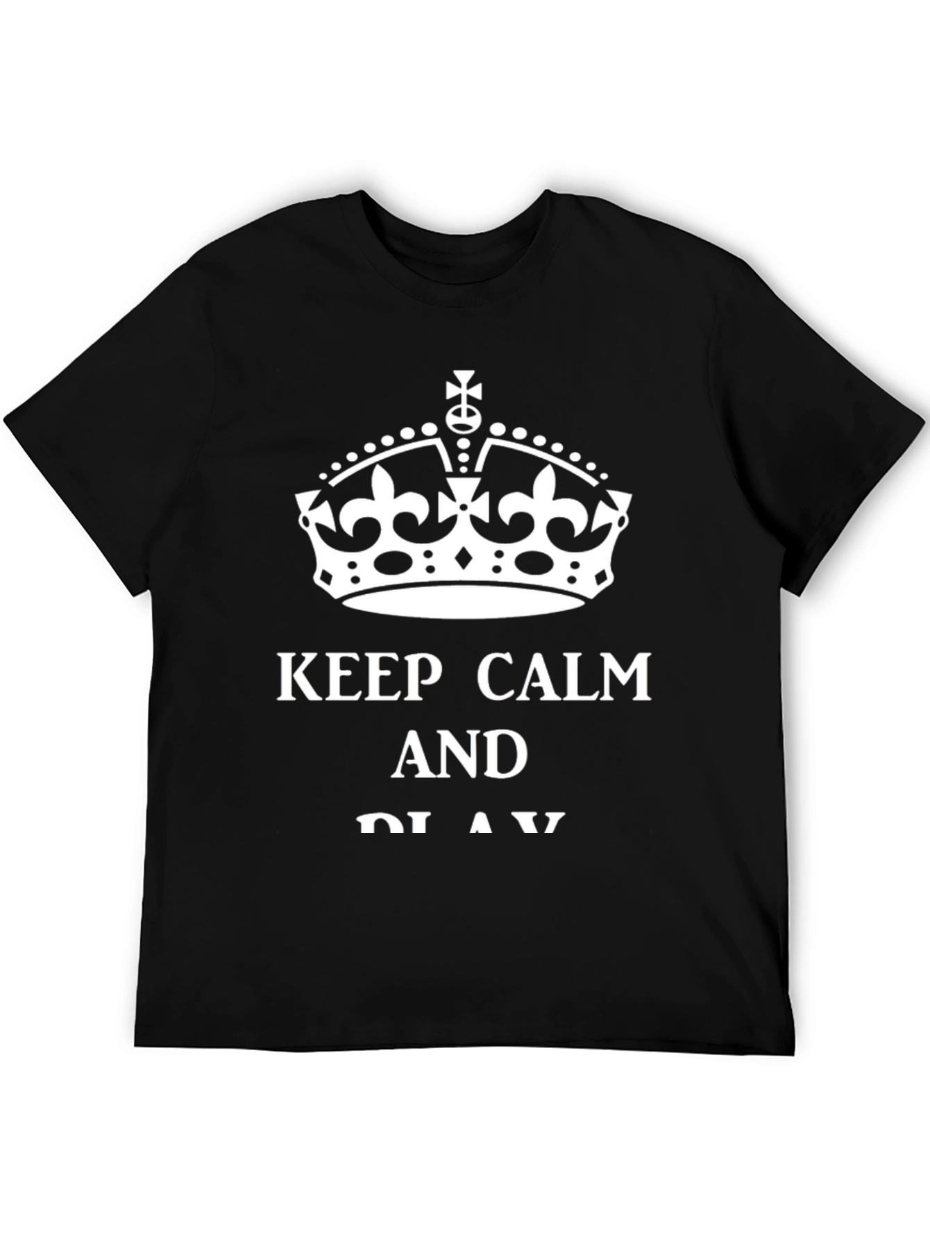 Luce un estilo relajado y con actitud con esta camiseta negra de manga corta. El diseño presenta un estampado en color blanco que incluye una corona estilizada sobre la frase "Keep Calm and Play", transmitiendo un mensaje de tranquilidad y diversión. Perfecta para llevar en un ambiente casual, ya sea para salir con amigos, relajarte en casa o disfrutar de actividades al aire libre. La camiseta está confeccionada en un tejido suave y cómodo, ideal para uso diario. Su corte clásico se adapta a diferentes estilos, permitiéndote combinarla fácilmente con jeans, pantalones cortos o bermudas. Añade un toque divertido y relajado a tu vestuario con esta original camiseta.