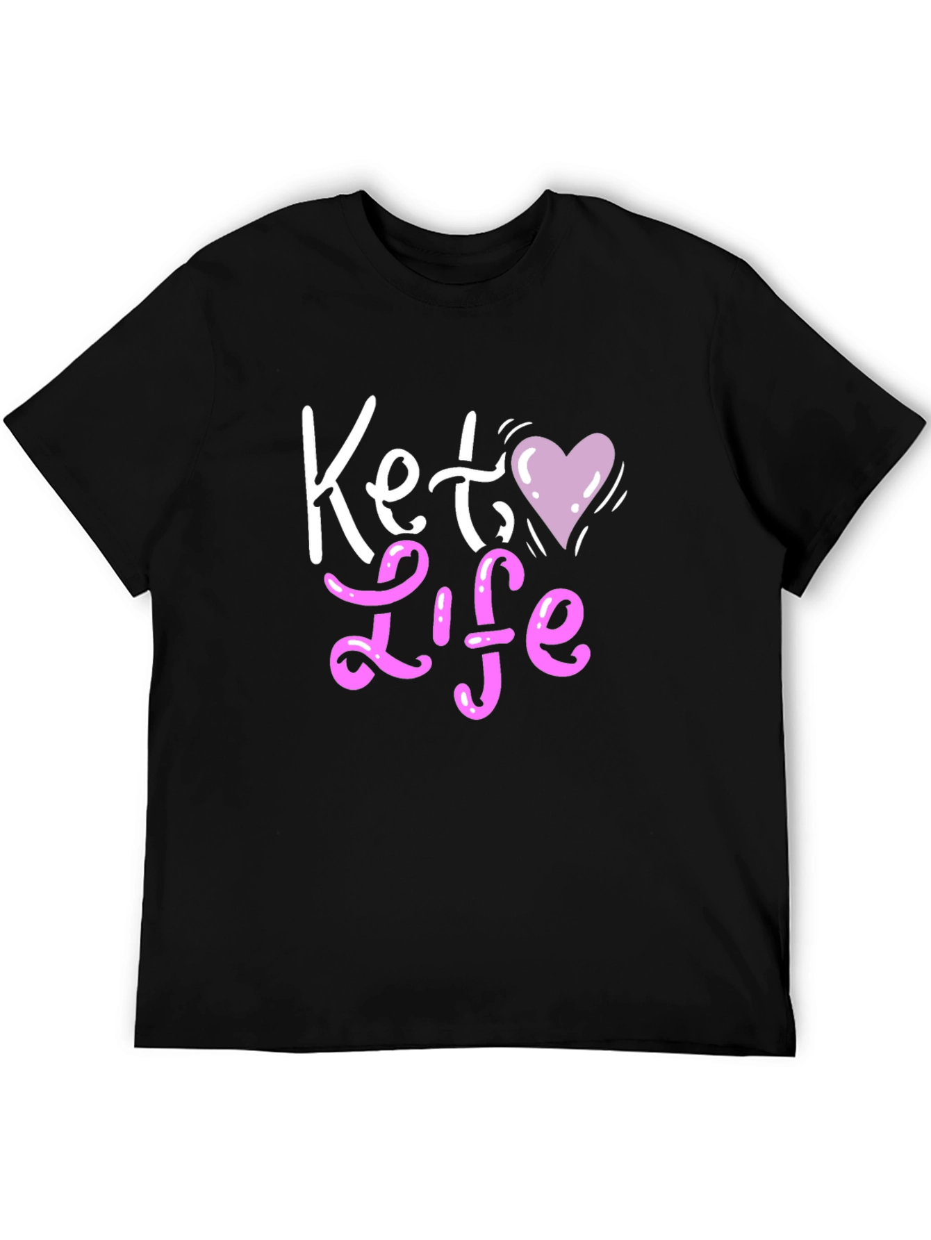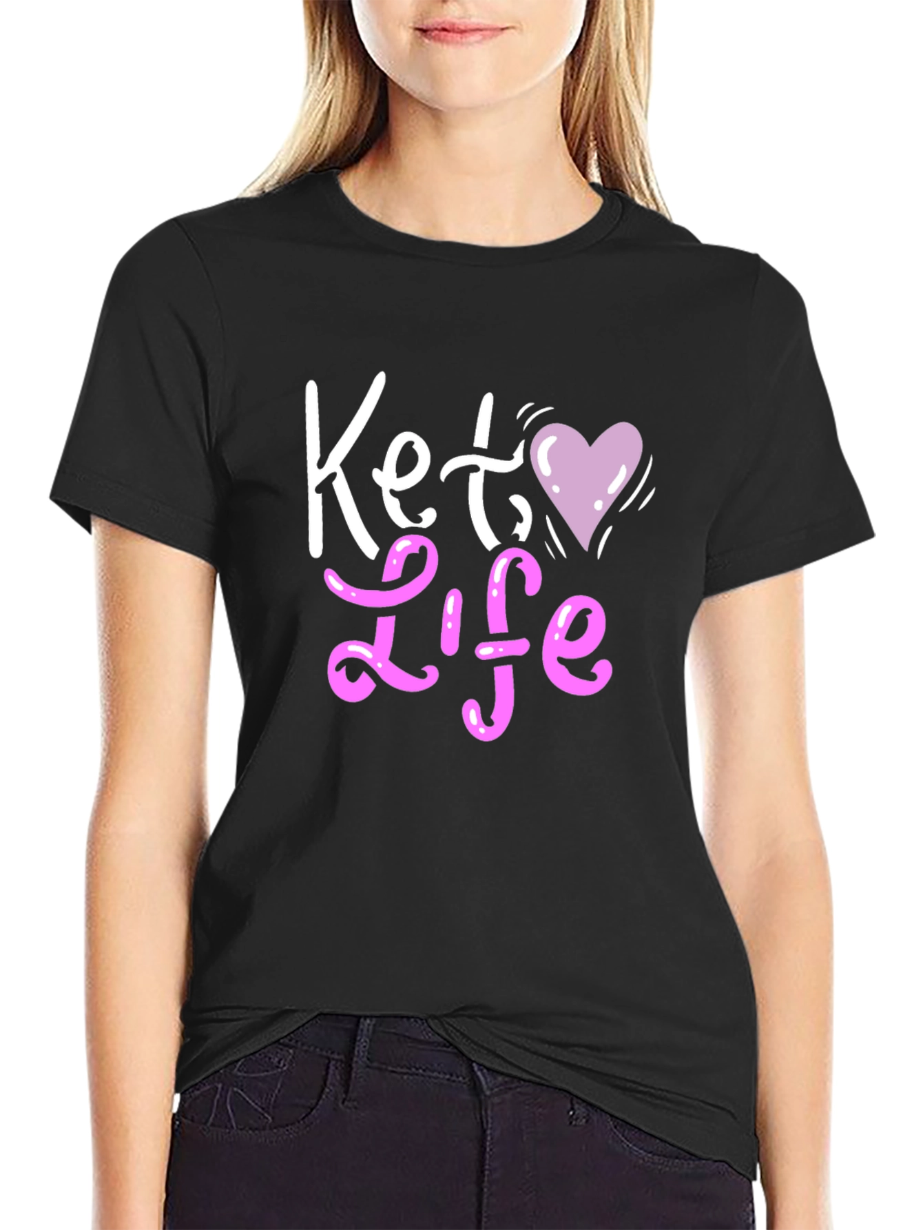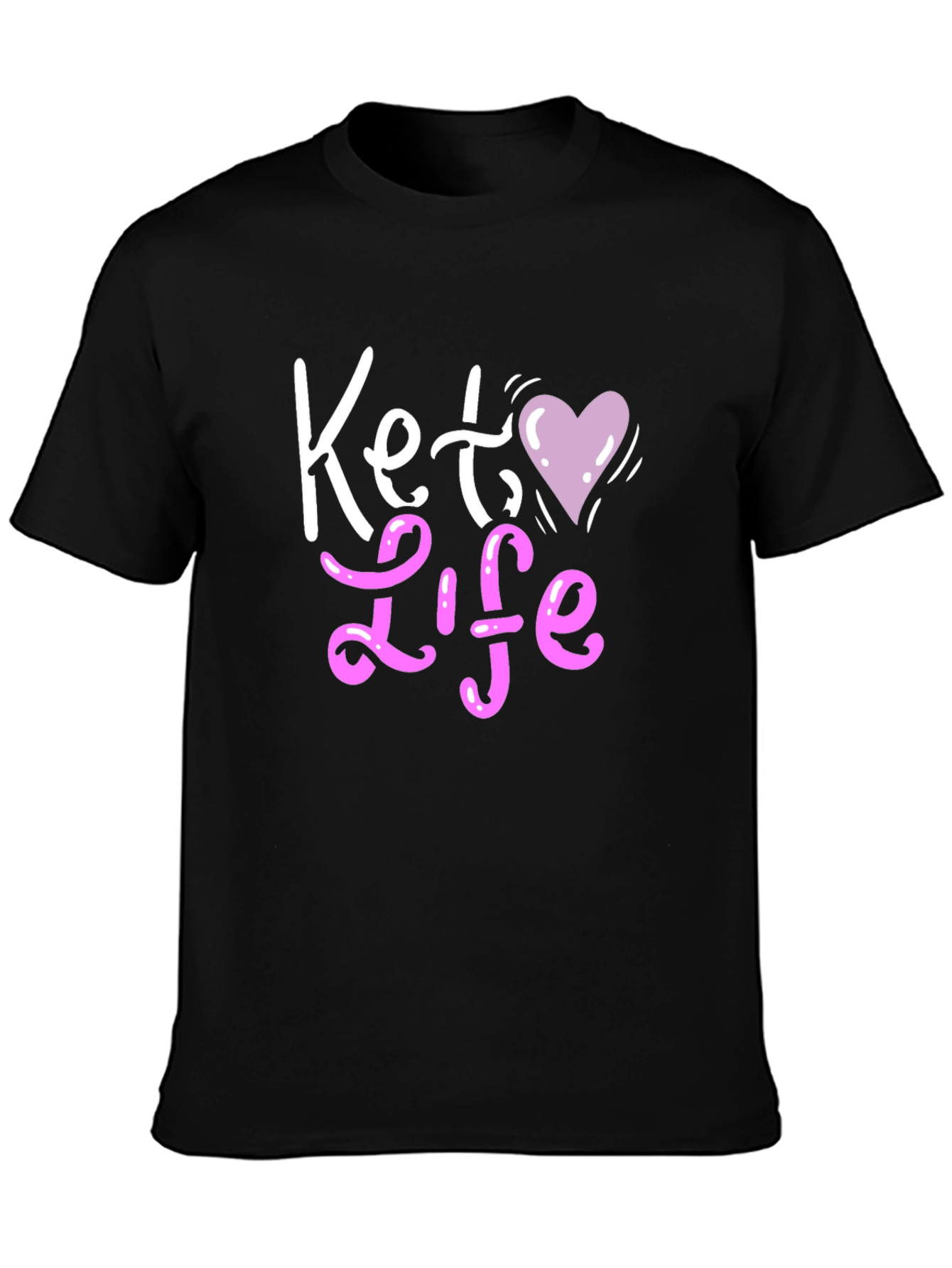 Luce esta moderna camiseta negra con un divertido diseño de "Keto Life" en letras blancas y rosas. El diseño incluye un adorable corazón que añade un toque especial. Perfecta para aquellos que siguen una dieta cetogénica y quieren mostrar su estilo de vida de una forma original y llamativa. Fabricada con materiales suaves y cómodos, ideal para usar en el gimnasio, durante tus actividades diarias o simplemente para relajarte en casa. Un regalo perfecto para amigos y familiares que aman la vida keto. ¡Añade un toque de humor y motivación a tu armario con esta camiseta única!