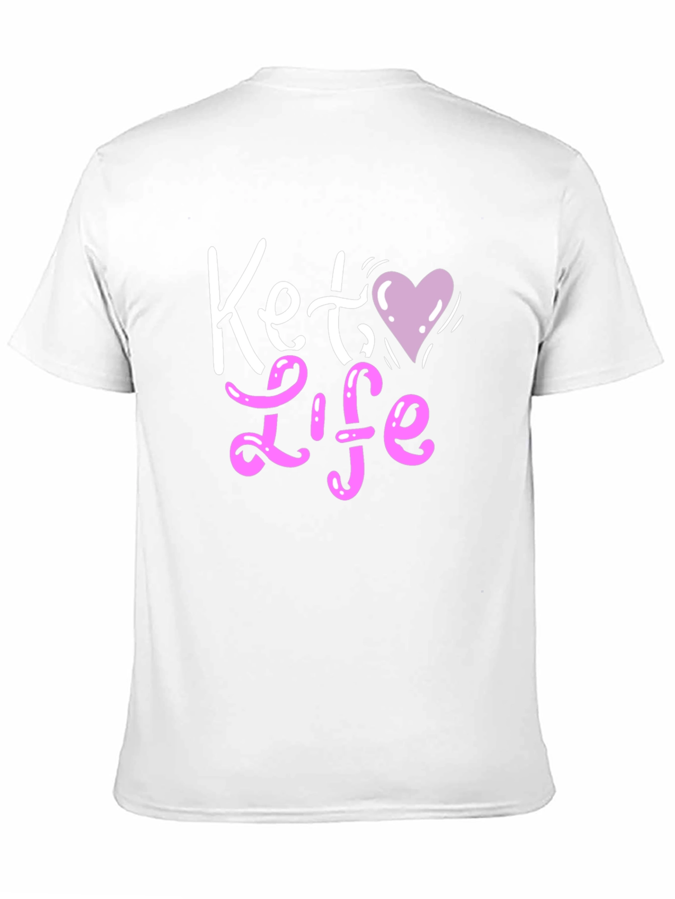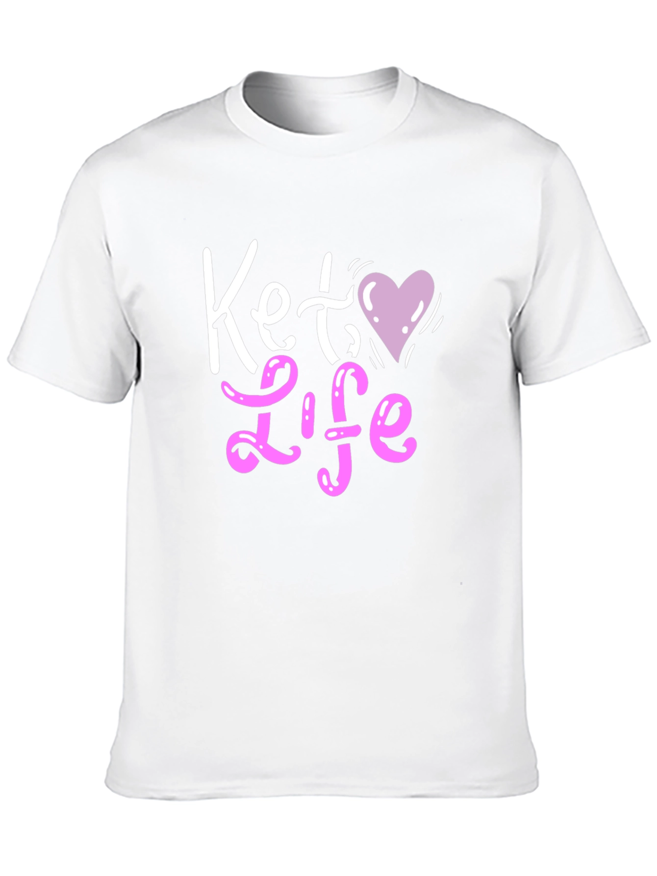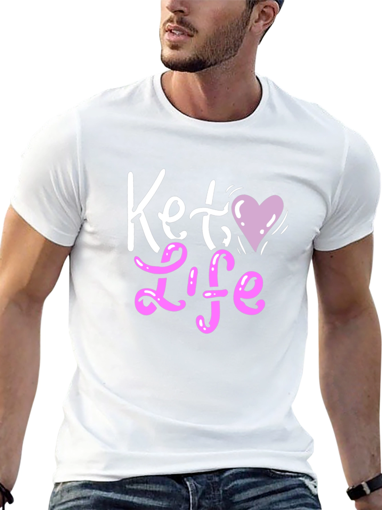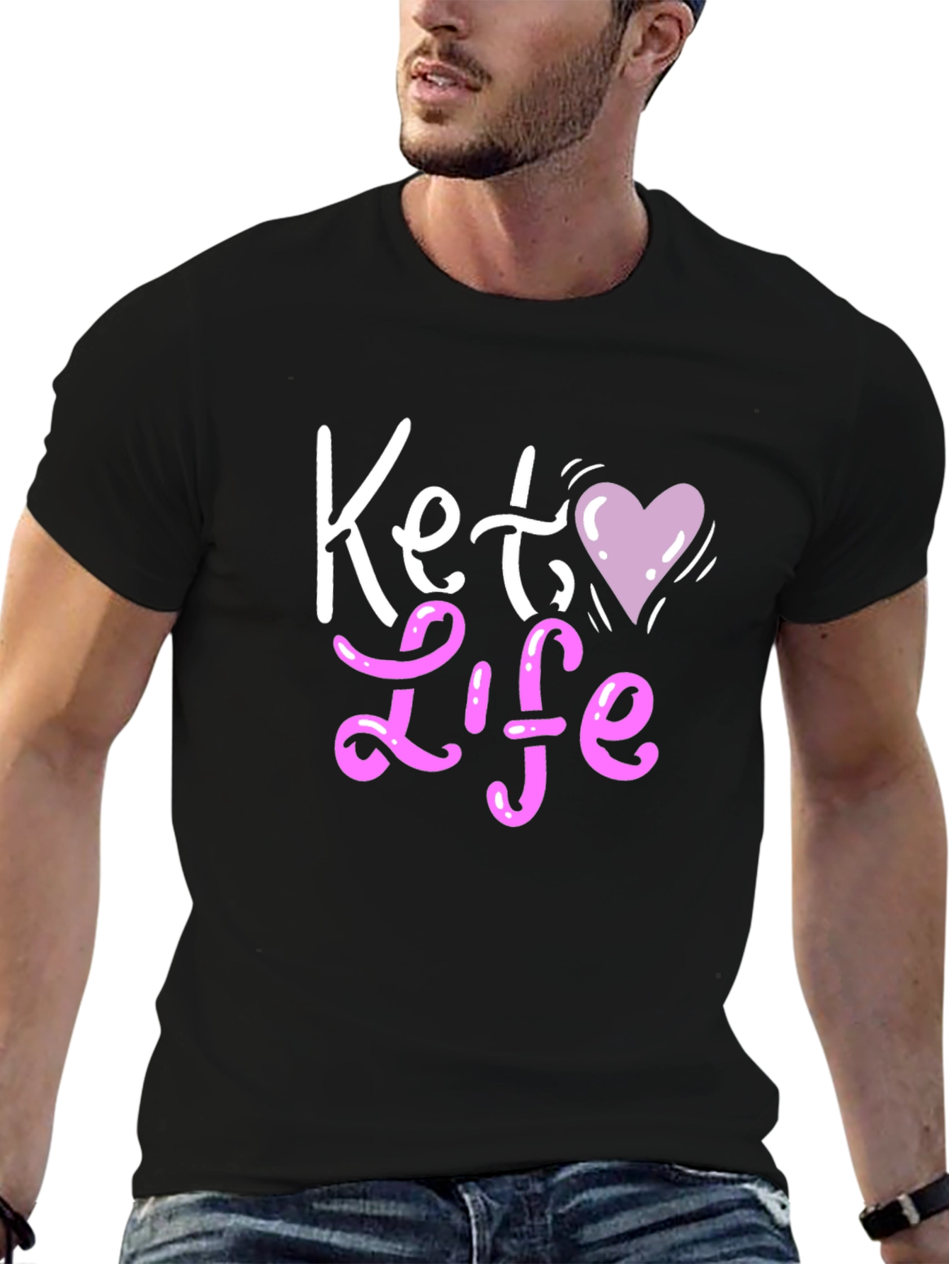 Luce esta moderna camiseta negra con un divertido diseño de "Keto Life" en letras blancas y rosas. El diseño incluye un adorable corazón que añade un toque especial. Perfecta para aquellos que siguen una dieta cetogénica y quieren mostrar su estilo de vida de una forma original y llamativa. Fabricada con materiales suaves y cómodos, ideal para usar en el gimnasio, durante tus actividades diarias o simplemente para relajarte en casa. Un regalo perfecto para amigos y familiares que aman la vida keto. ¡Añade un toque de humor y motivación a tu armario con esta camiseta única!