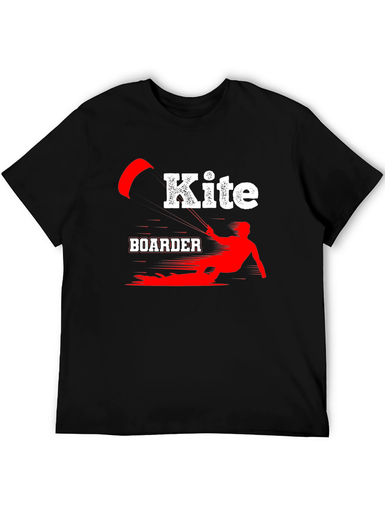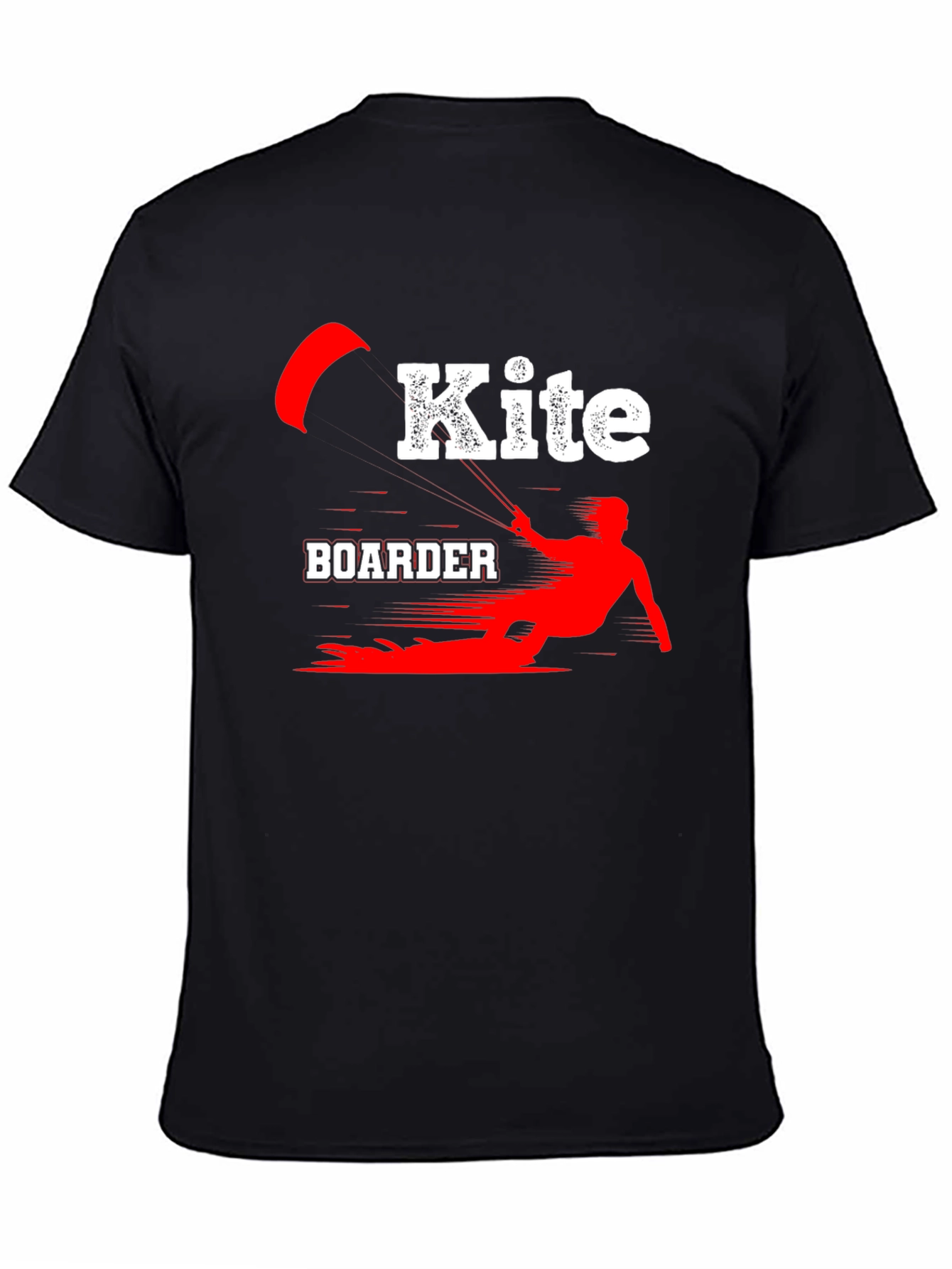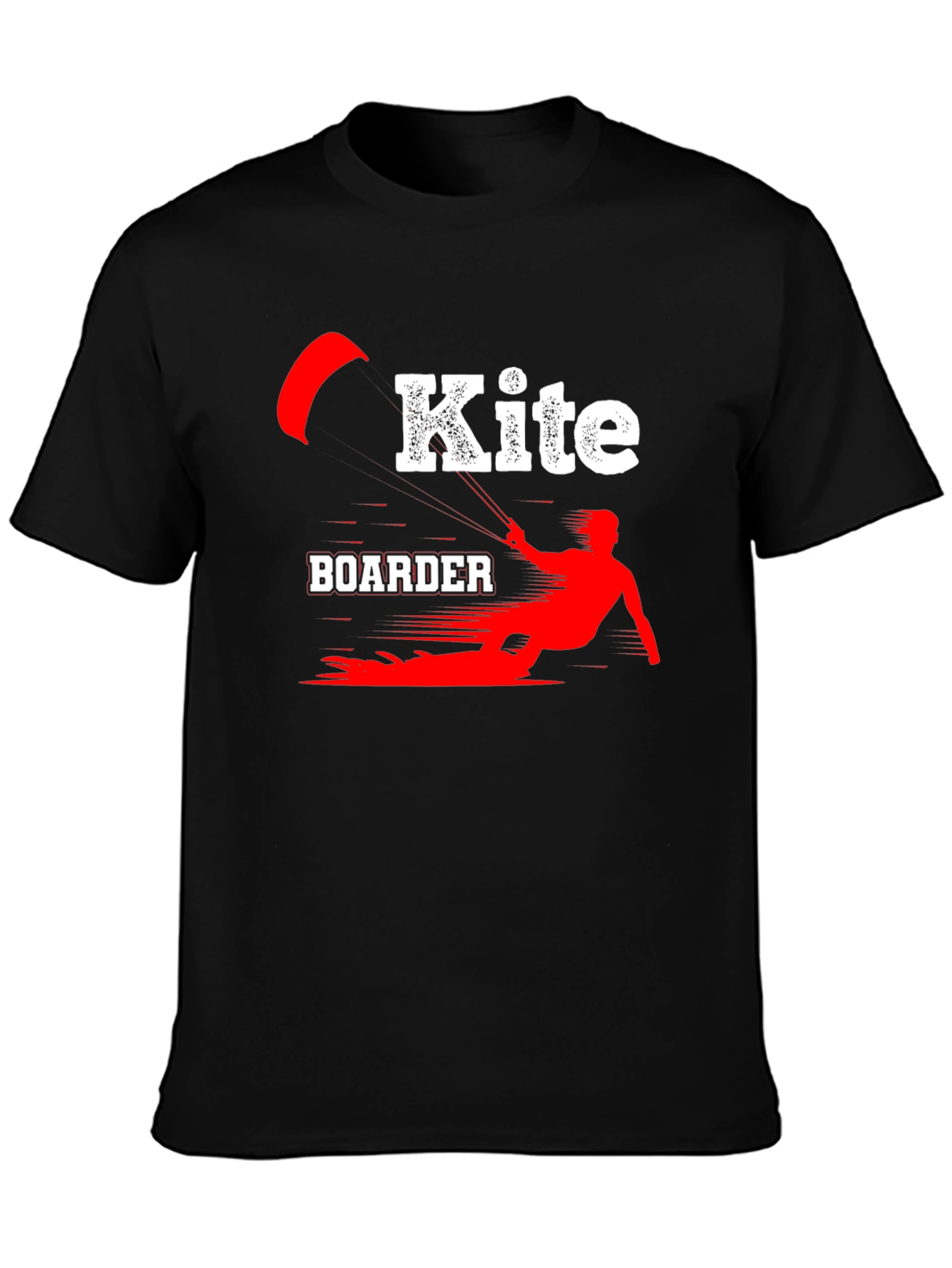 Luce tu pasión por el kiteboarding con esta camiseta negra de algodón. El diseño presenta una llamativa ilustración en rojo y blanco de un kiteboarder en acción, con la palabra "Kite" en un estilo moderno y audaz. Perfecta para llevar en tus aventuras acuáticas o para mostrar tu estilo deportivo en cualquier ocasión. Su tejido suave y cómodo te brindará una sensación agradable durante todo el día. Ideal para regalar a amantes del kiteboarding y deportes acuáticos. ¡Consigue la tuya y marca la diferencia!
