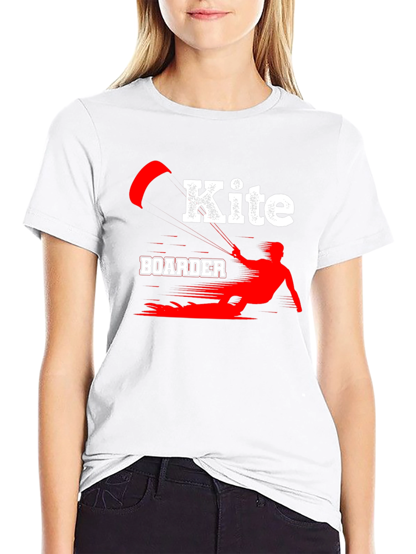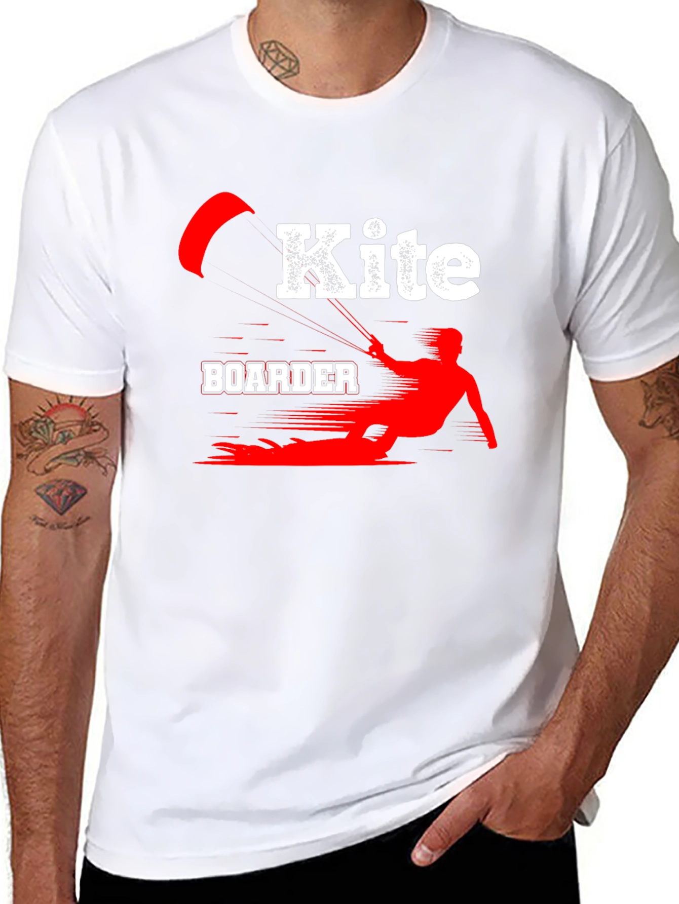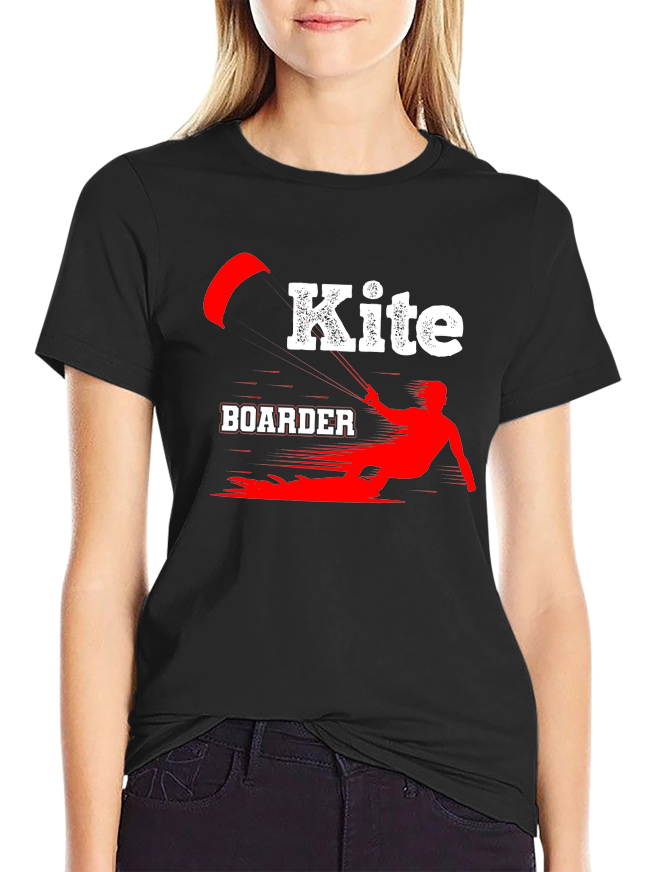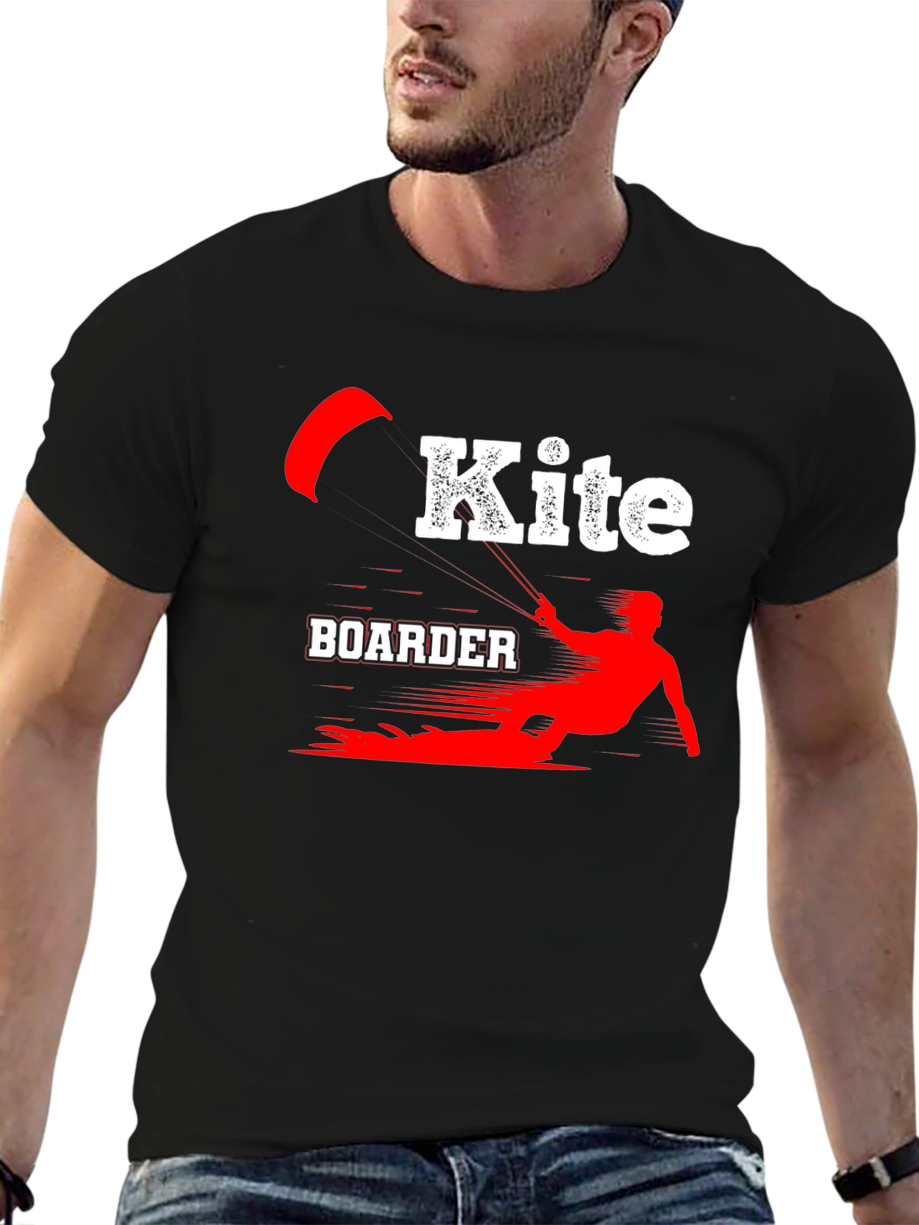 Luce tu pasión por el kiteboarding con esta camiseta negra de algodón. El diseño presenta una llamativa ilustración en rojo y blanco de un kiteboarder en acción, con la palabra "Kite" en un estilo moderno y audaz. Perfecta para llevar en tus aventuras acuáticas o para mostrar tu estilo deportivo en cualquier ocasión. Su tejido suave y cómodo te brindará una sensación agradable durante todo el día. Ideal para regalar a amantes del kiteboarding y deportes acuáticos. ¡Consigue la tuya y marca la diferencia!