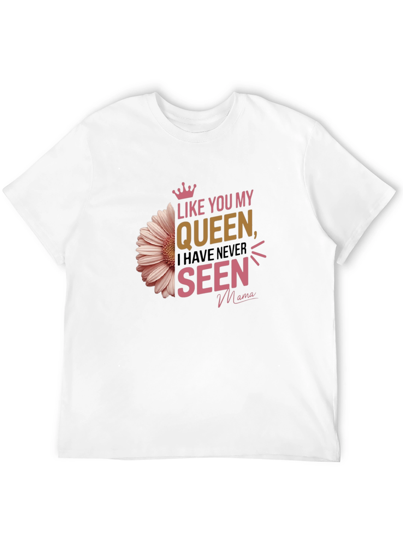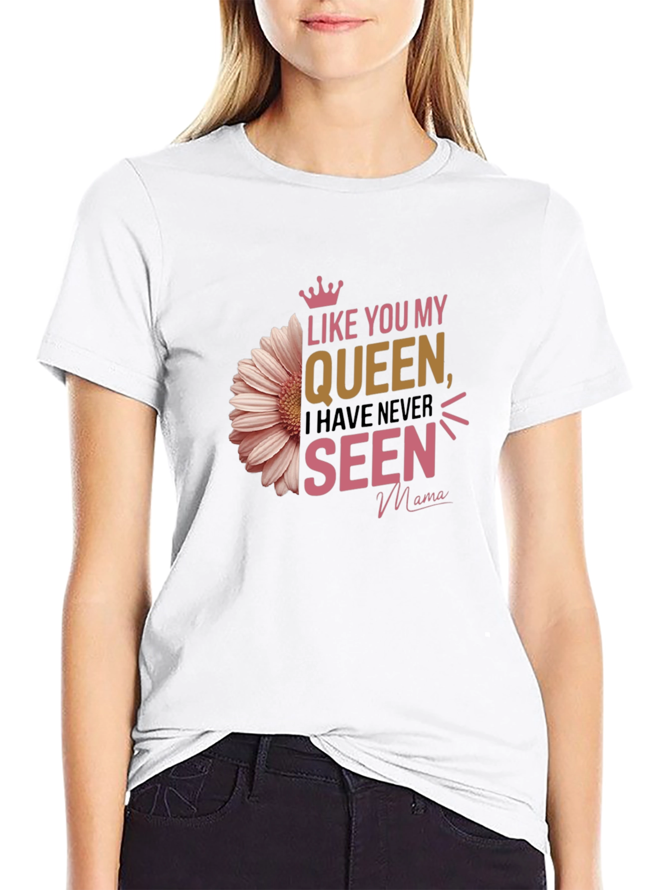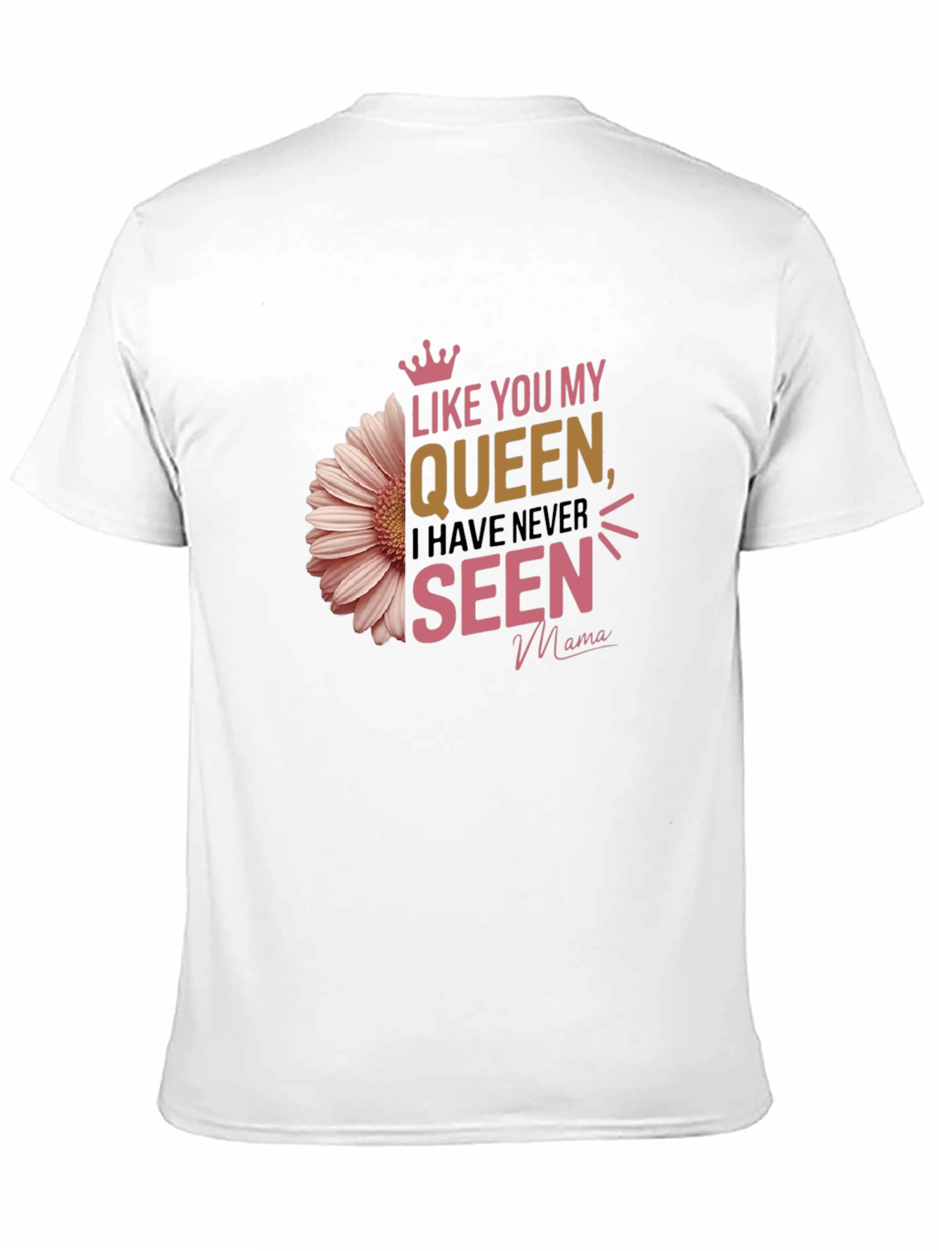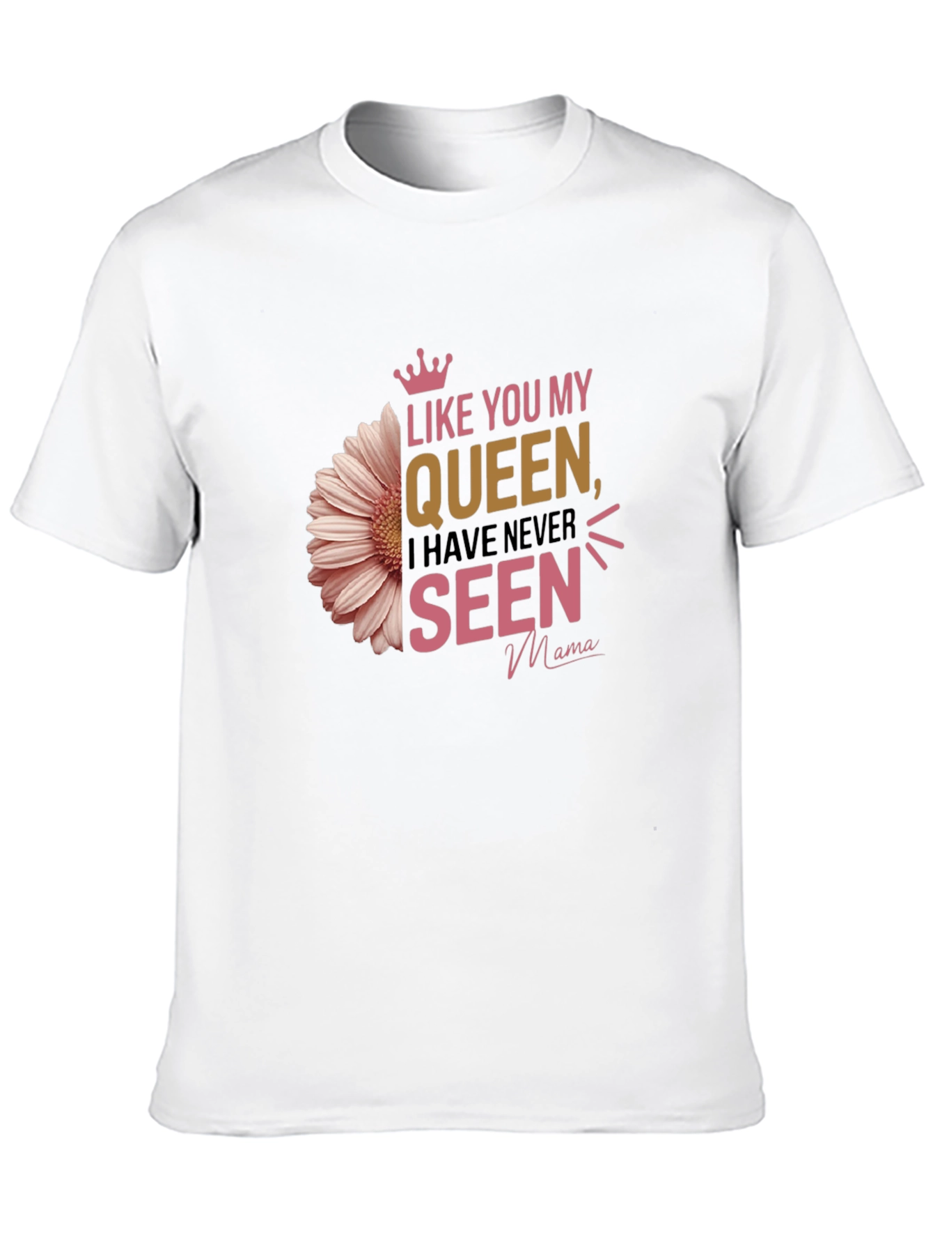 Celebra a mamá con esta elegante camiseta negra. Presenta un diseño floral delicado junto con la frase "Like You My Queen, I Have Never Seen, Mama". Ideal para el uso diario, esta camiseta combina comodidad y estilo, perfecta para regalar a esa reina en tu vida. Su diseño único la convierte en una prenda llamativa que seguramente generará cumplidos. Fabricada con materiales suaves y cómodos, esta camiseta es una excelente opción para cualquier ocasión casual. Demuestra tu amor y aprecio con esta prenda especial que captura la esencia del amor maternal.