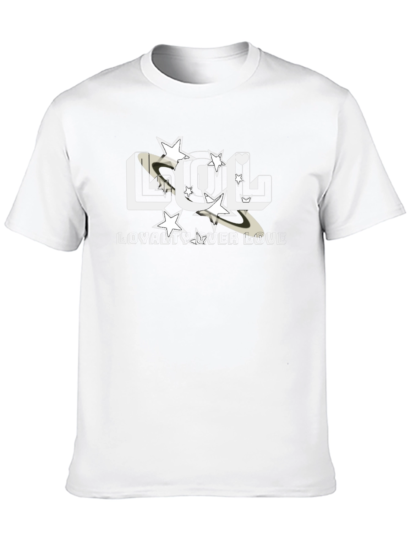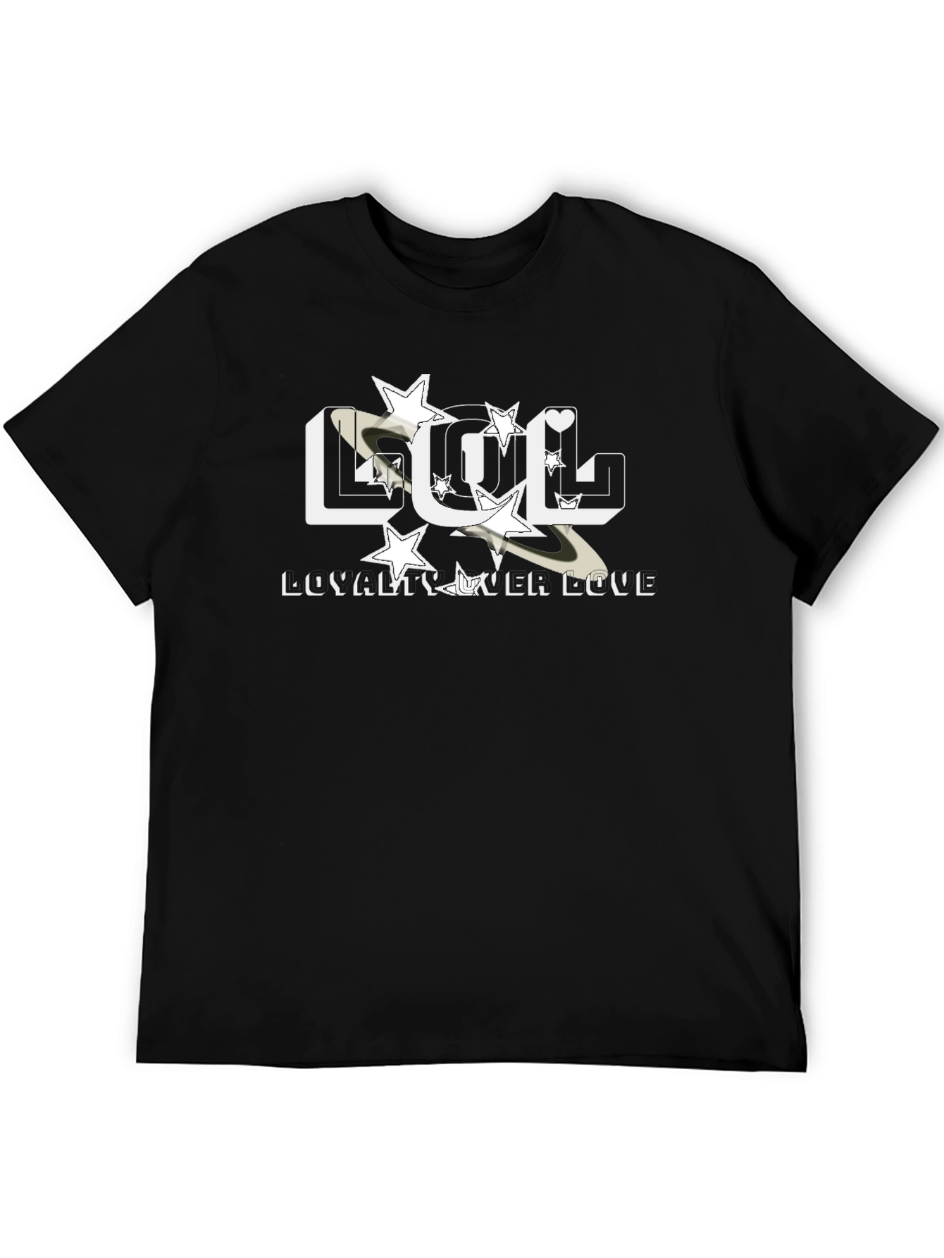 Luce esta moderna camiseta negra con un diseño llamativo. Presenta las letras "LOL" con estrellas y un detalle de anillo planetario que le da un toque único. Debajo, la frase "LEALTAD SOBRE AMOR" completa el diseño. Perfecta para expresar tu estilo y actitud, esta camiseta es ideal para uso casual, salidas con amigos o para destacar en cualquier ocasión. Confeccionada en un material suave y cómodo, garantiza confort durante todo el día. ¡Añade un toque de originalidad a tu guardarropa con esta prenda imprescindible!