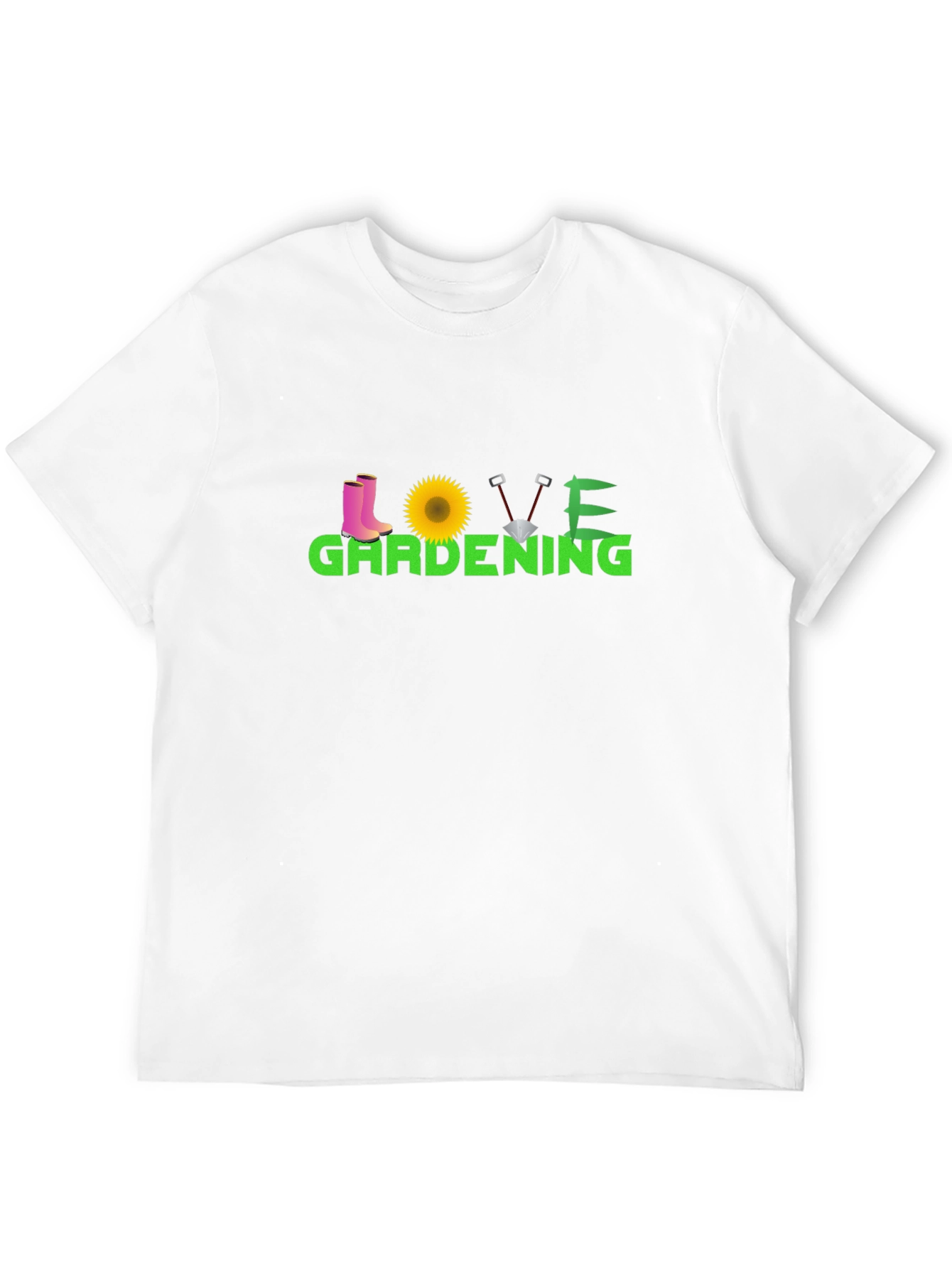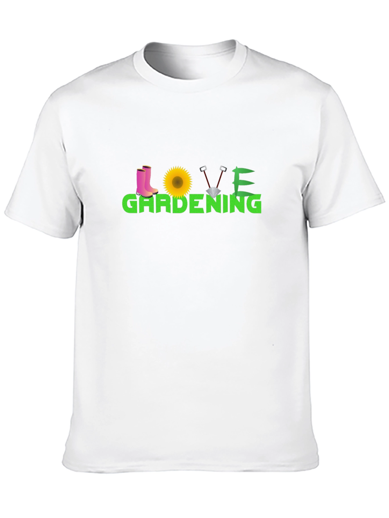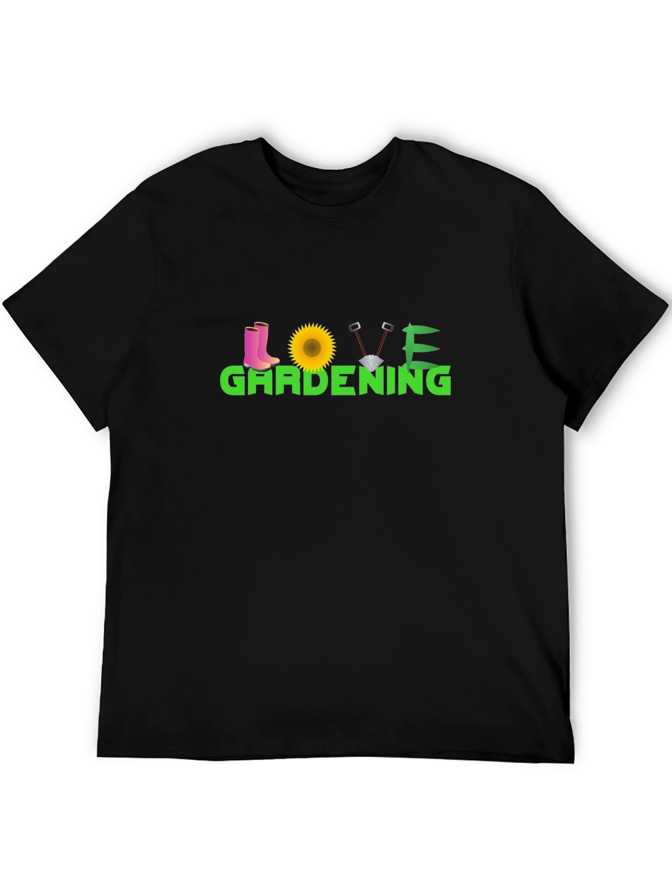 Esta camiseta negra de manga corta presenta un diseño llamativo con la frase "Love Gardening". En lugar de letras, la palabra "LOVE" está representada por unas botas de jardinería rosas, un girasol amarillo brillante y herramientas de jardinería. La palabra "GARDENING" aparece en letras verdes vibrantes debajo, creando un contraste visual atractivo y alegre. Ideal para los amantes de la jardinería que quieren expresar su pasión con estilo. Perfecta para usar en el jardín, paseos informales o como un regalo original y divertido. Muestra tu amor por la jardinería con esta prenda única y cómoda.