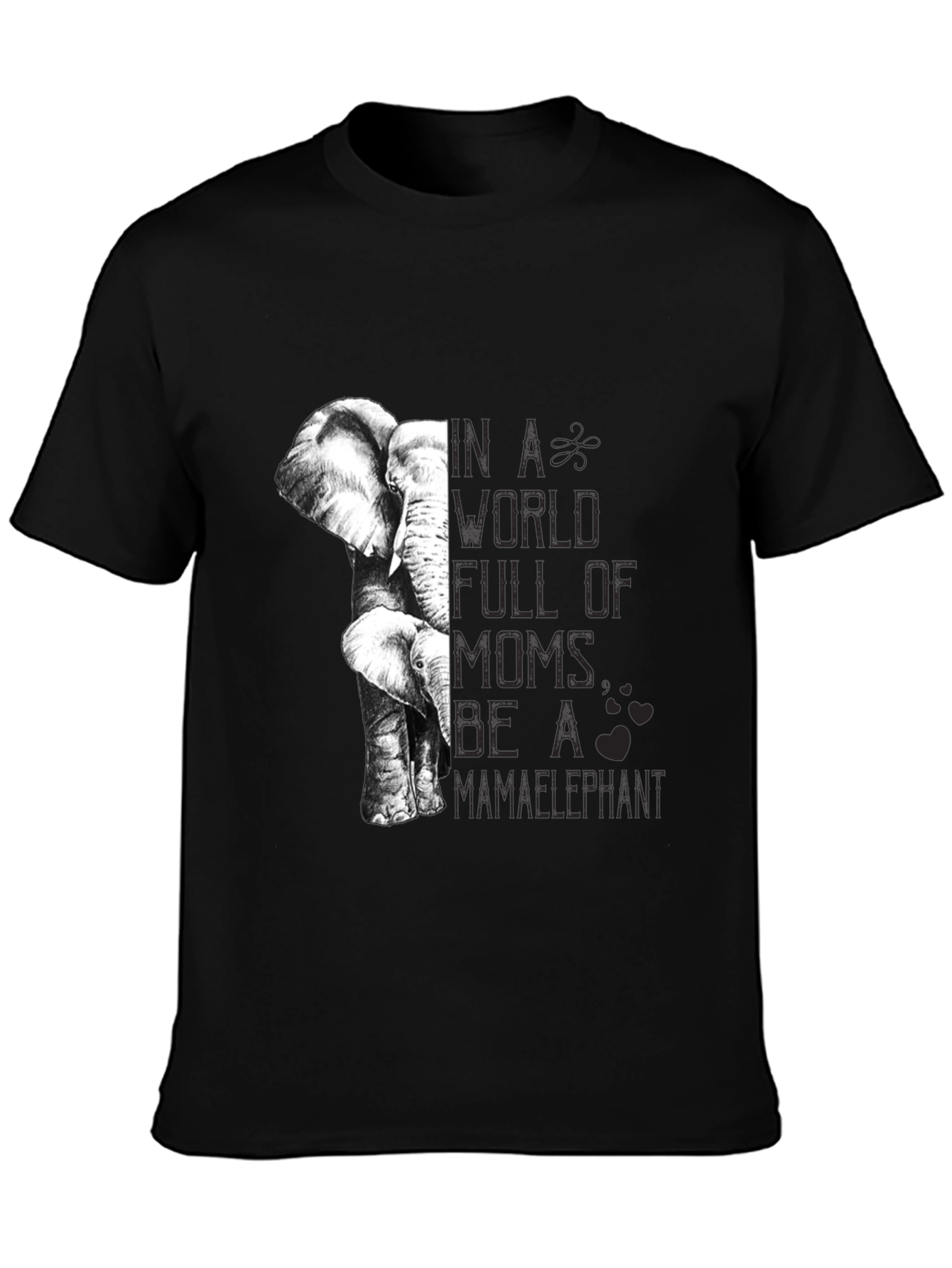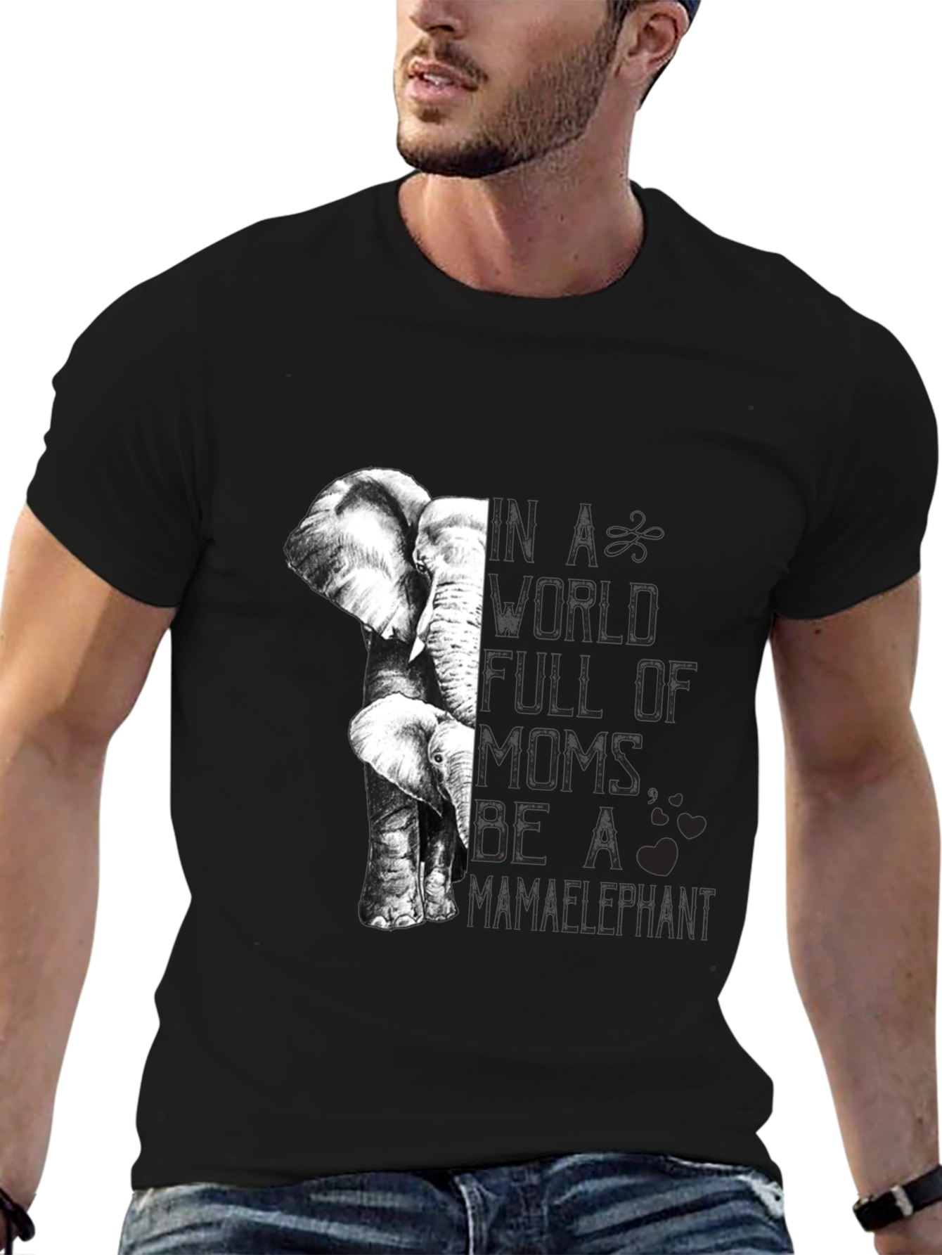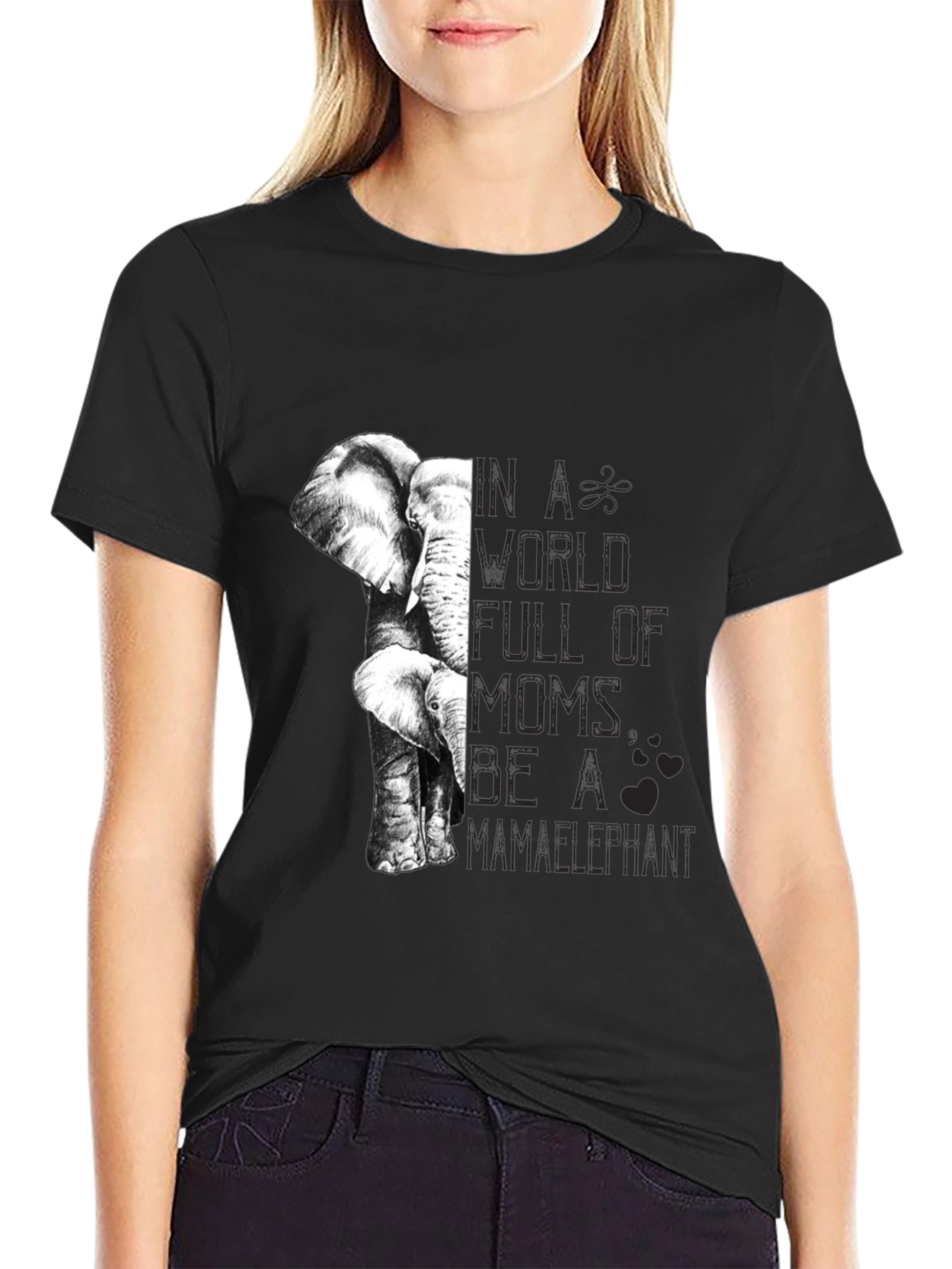 Luce esta elegante camiseta negra con un diseño único. Presenta una ilustración de una mamá elefante con su cría, acompañada de la frase "In a world full of moms, be a mama elephant". Ideal para madres orgullosas y amantes de los animales. Perfecta para un look casual, salidas informales o simplemente para expresar tu amor por la naturaleza. Fabricada con materiales suaves y cómodos para garantizar su durabilidad y confort. ¡Un regalo original y significativo para mamá en su día!