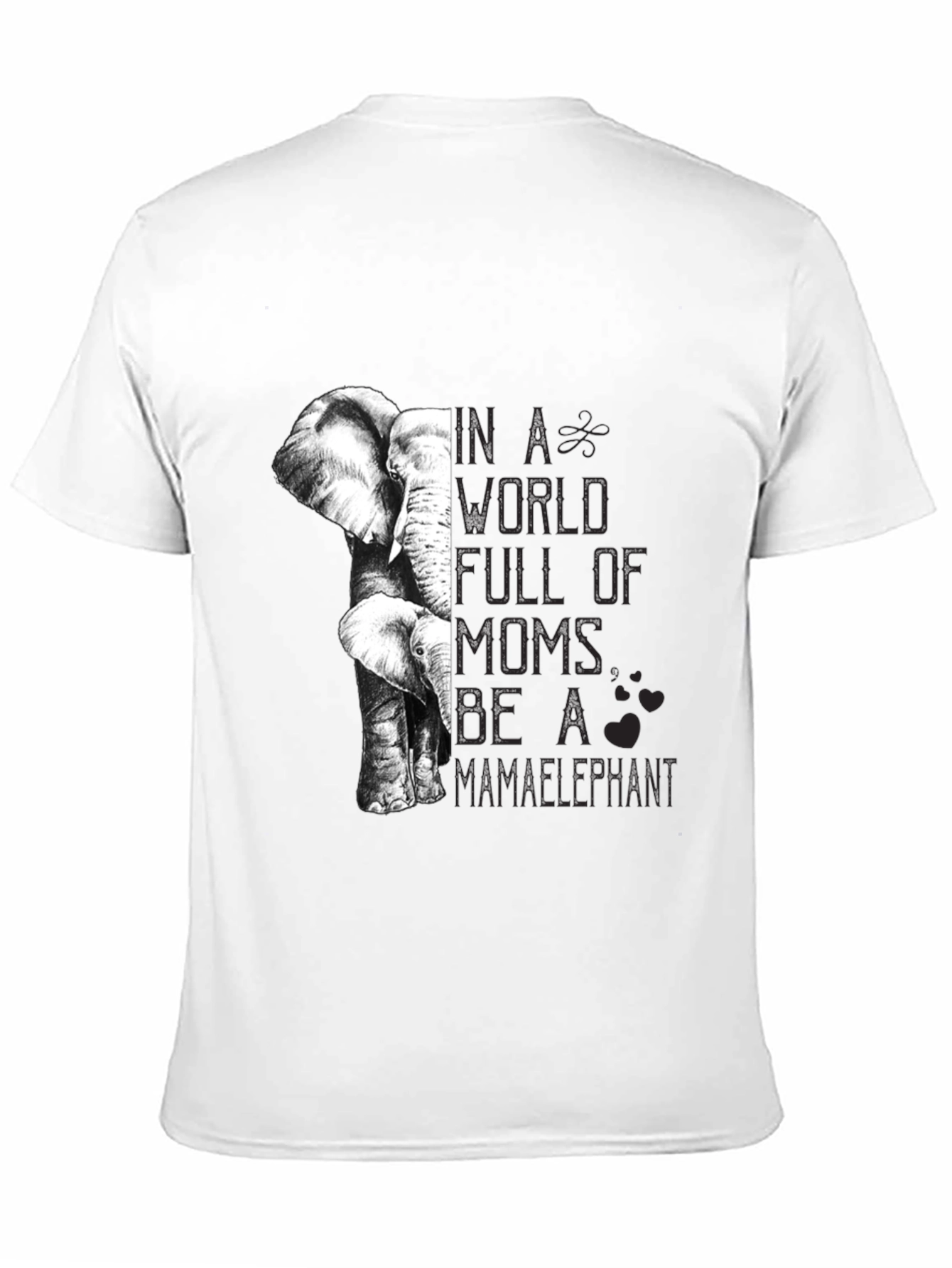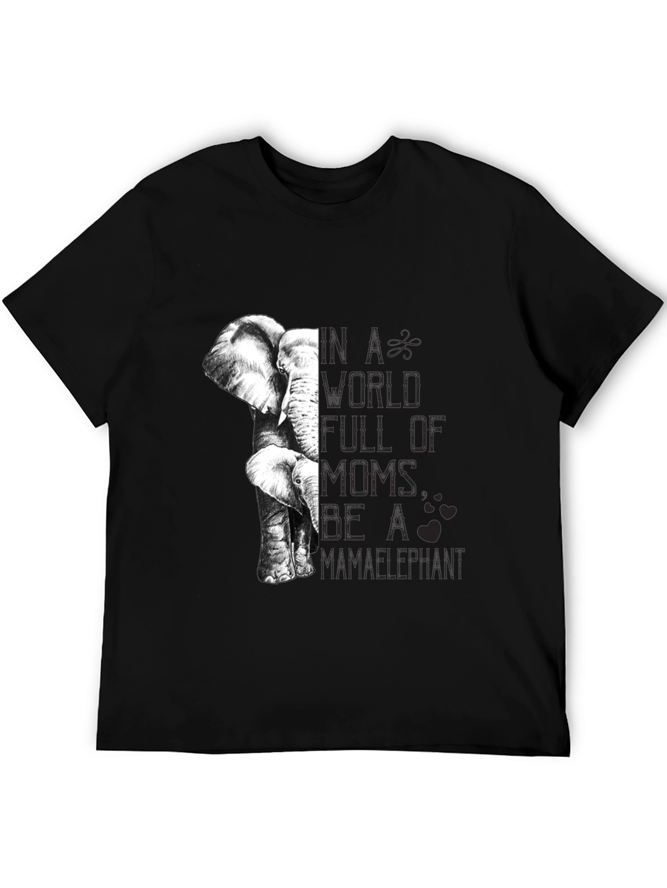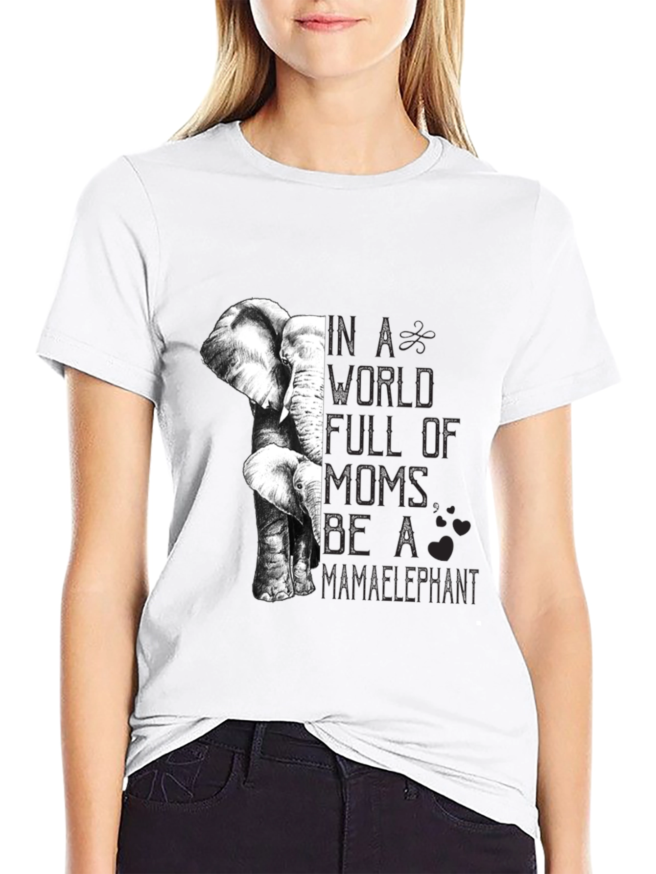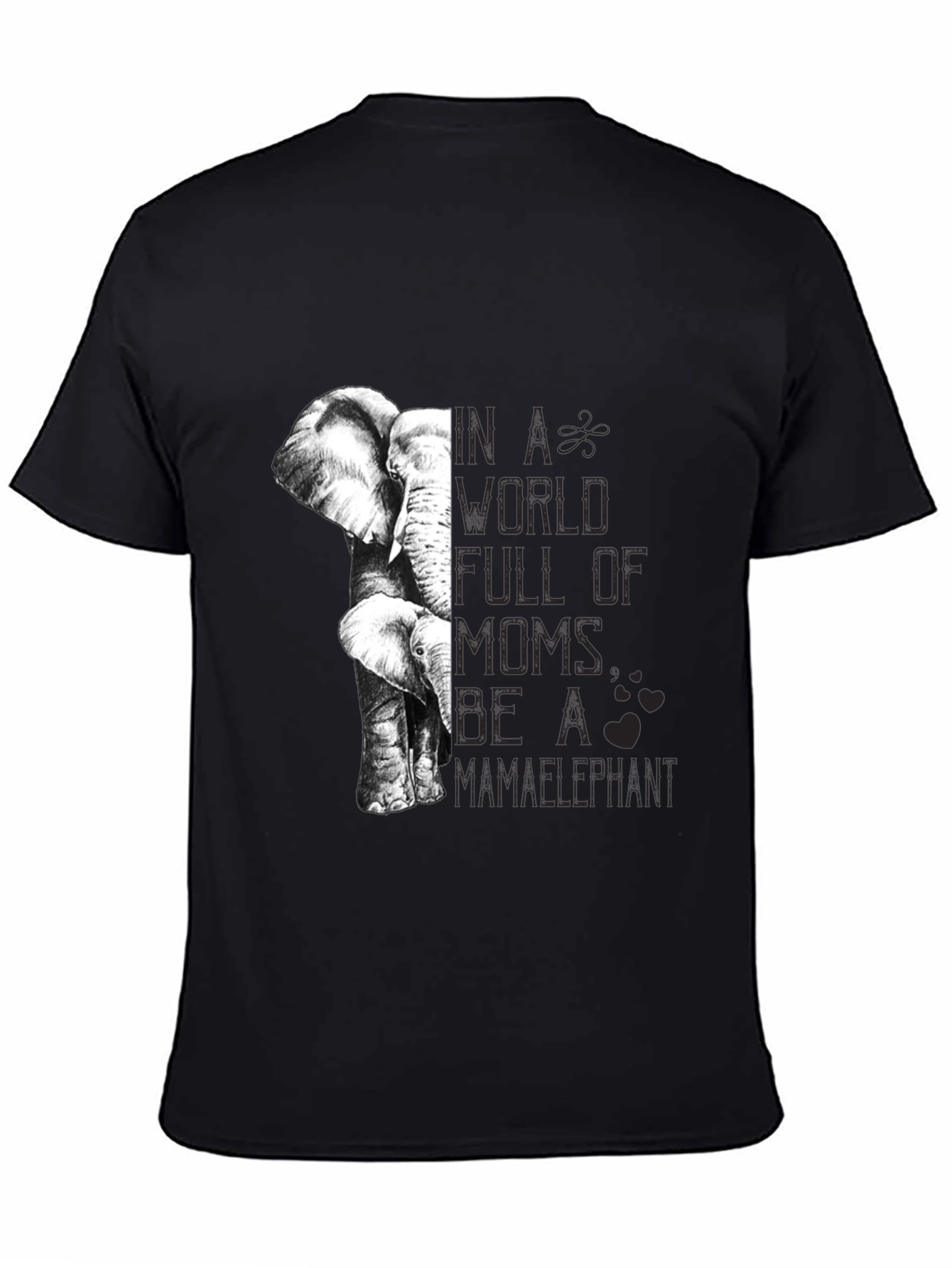 Luce esta elegante camiseta negra con un diseño único. Presenta una ilustración de una mamá elefante con su cría, acompañada de la frase "In a world full of moms, be a mama elephant". Ideal para madres orgullosas y amantes de los animales. Perfecta para un look casual, salidas informales o simplemente para expresar tu amor por la naturaleza. Fabricada con materiales suaves y cómodos para garantizar su durabilidad y confort. ¡Un regalo original y significativo para mamá en su día!