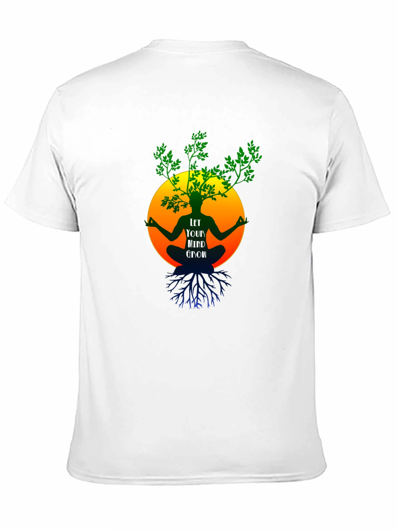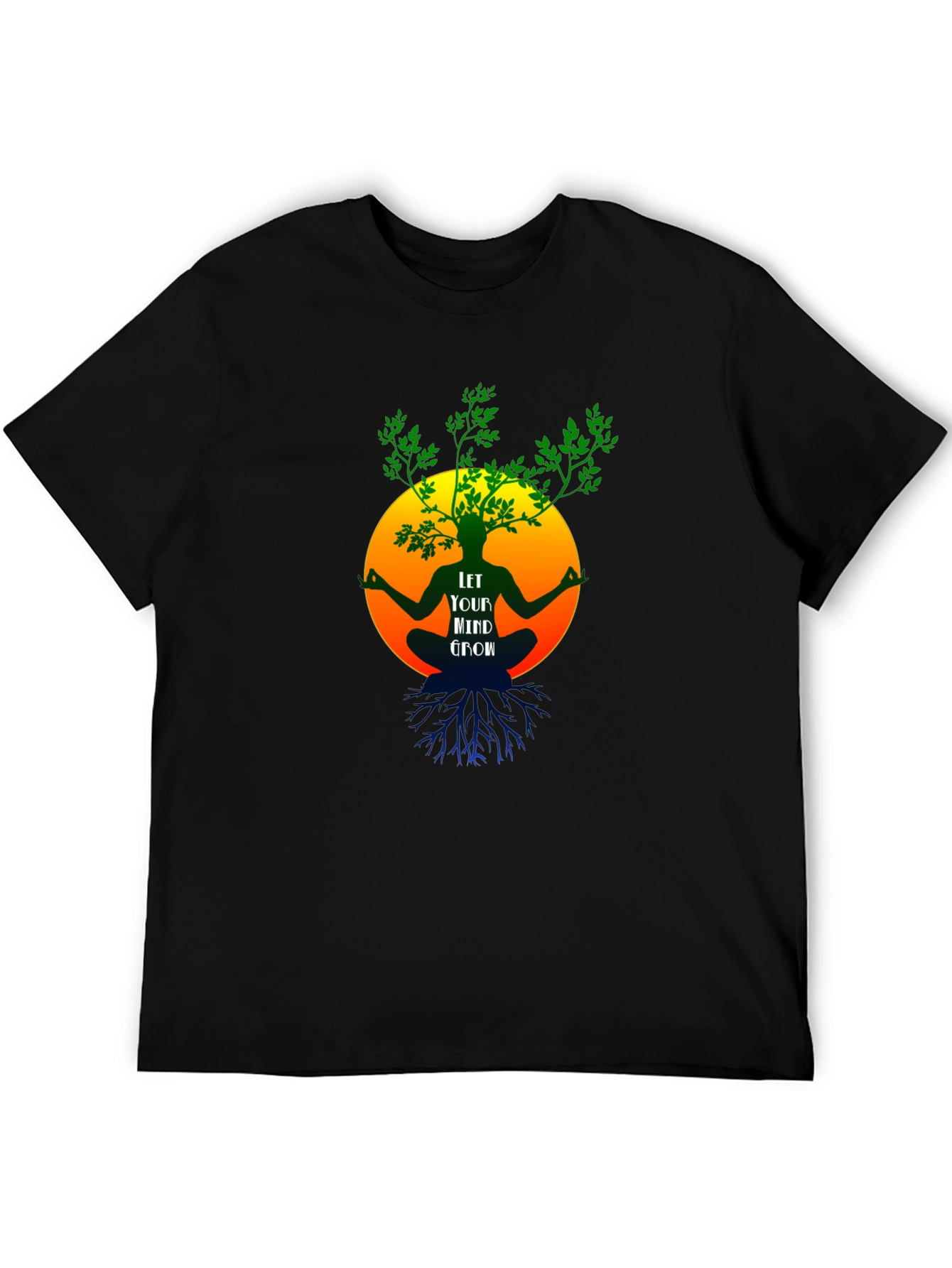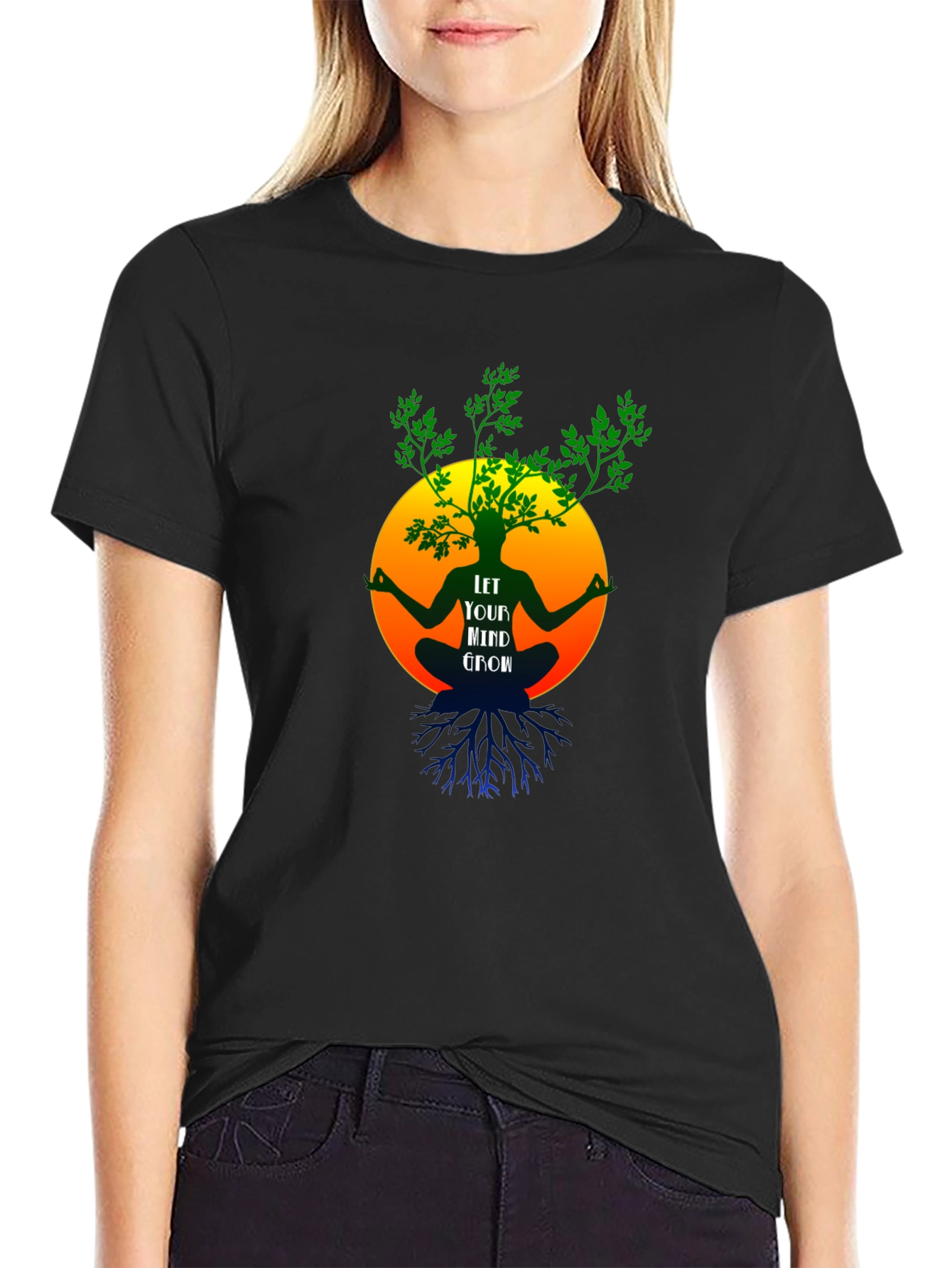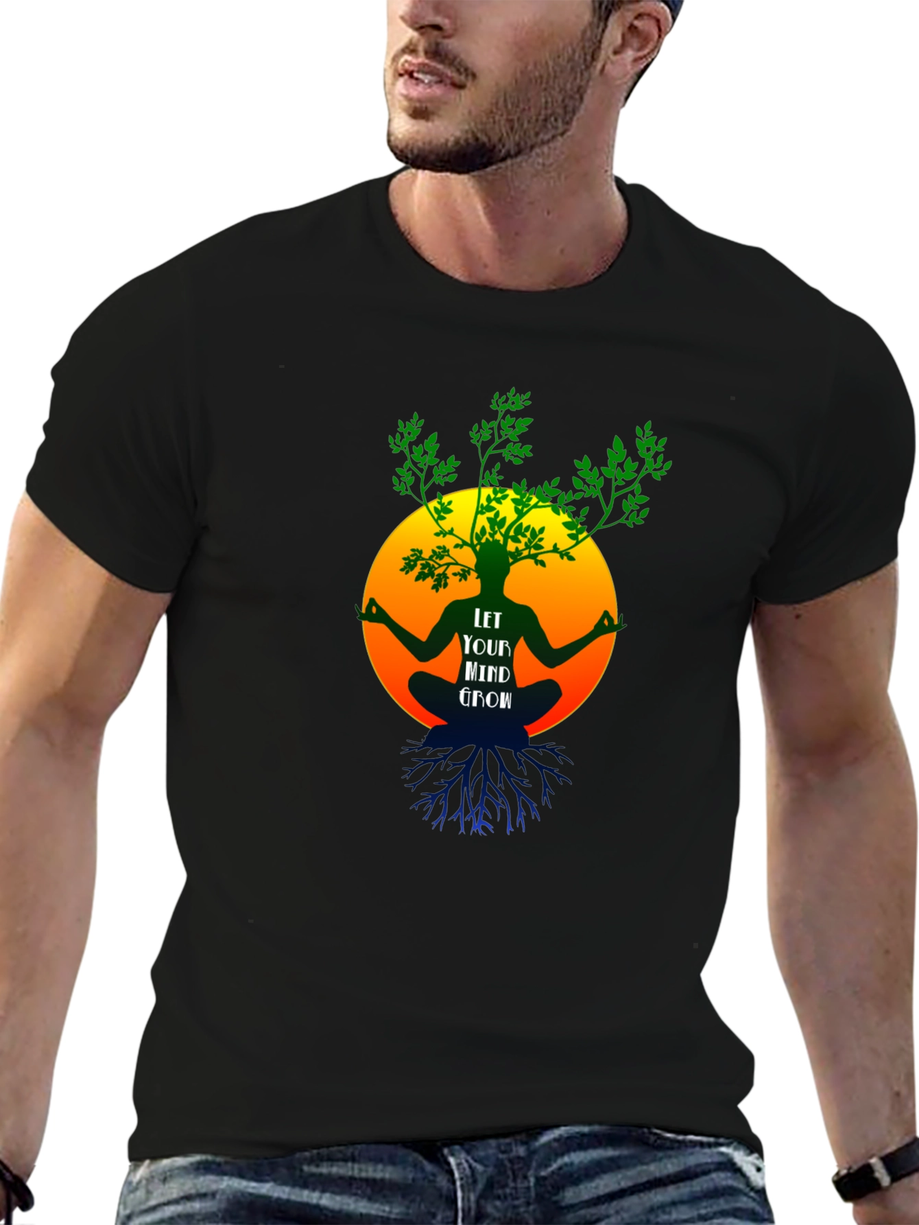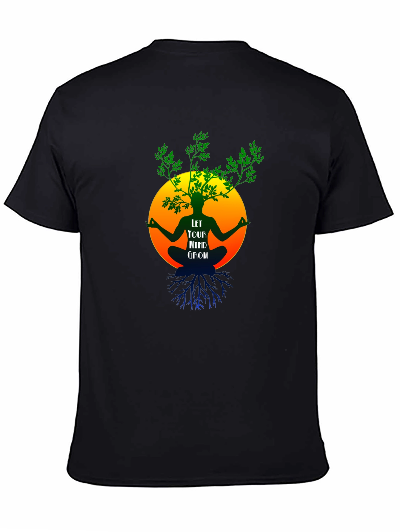 Expresa tu bienestar con esta camiseta negra única. Presenta un diseño llamativo de una figura meditando que simboliza el crecimiento personal. Los colores vibrantes y el detalle del árbol con raíces representan la conexión con la naturaleza y la expansión mental. Fabricada con materiales suaves y cómodos, esta camiseta es perfecta para usarla en tus sesiones de yoga, meditación o simplemente para lucir un estilo relajado y consciente en tu día a día. Deja que esta camiseta te recuerde nutrir tu mente y espíritu.