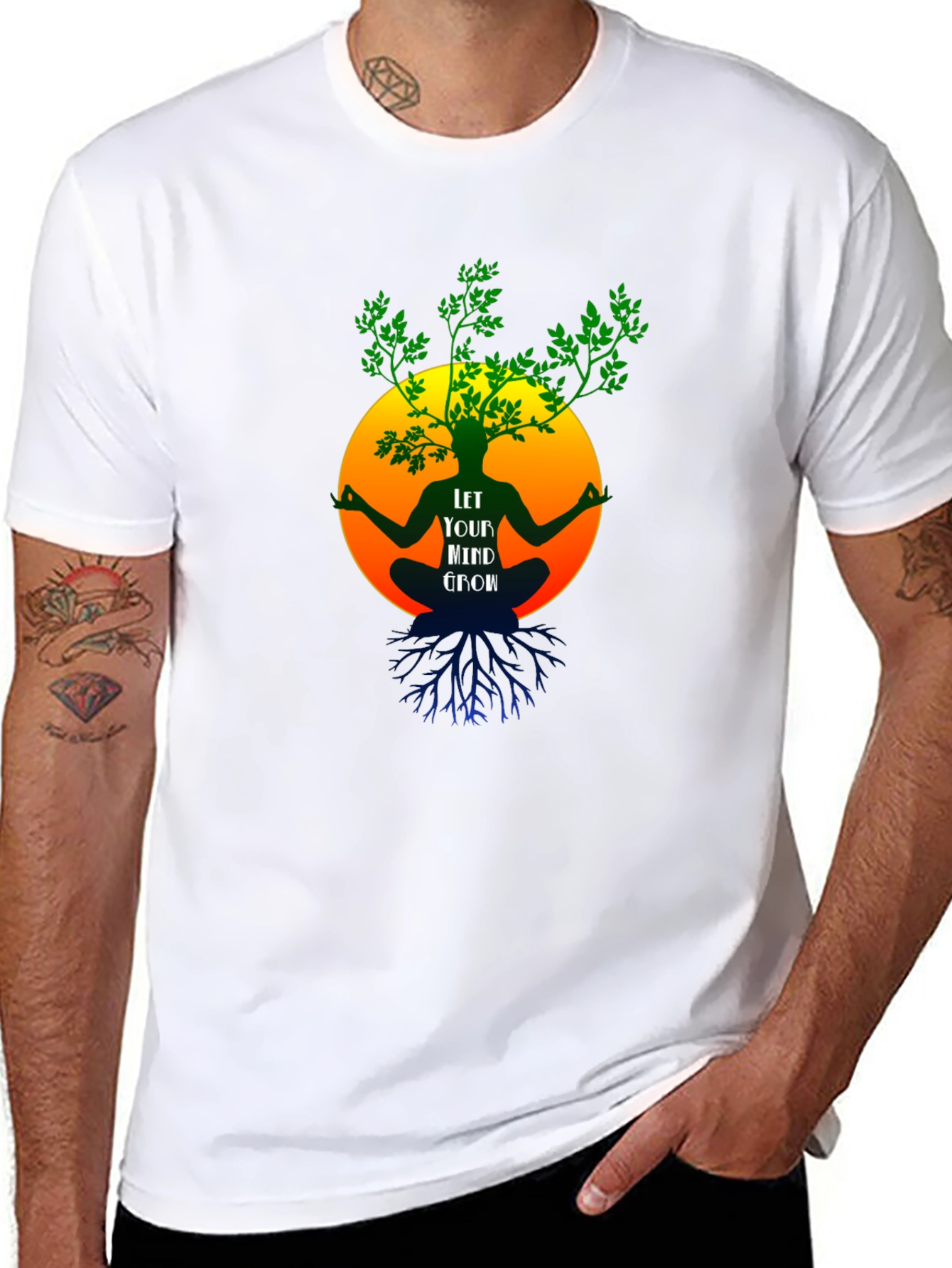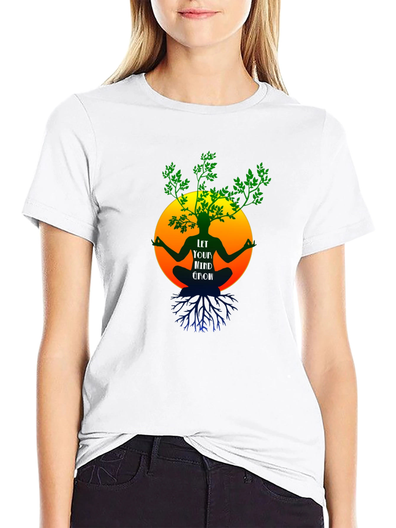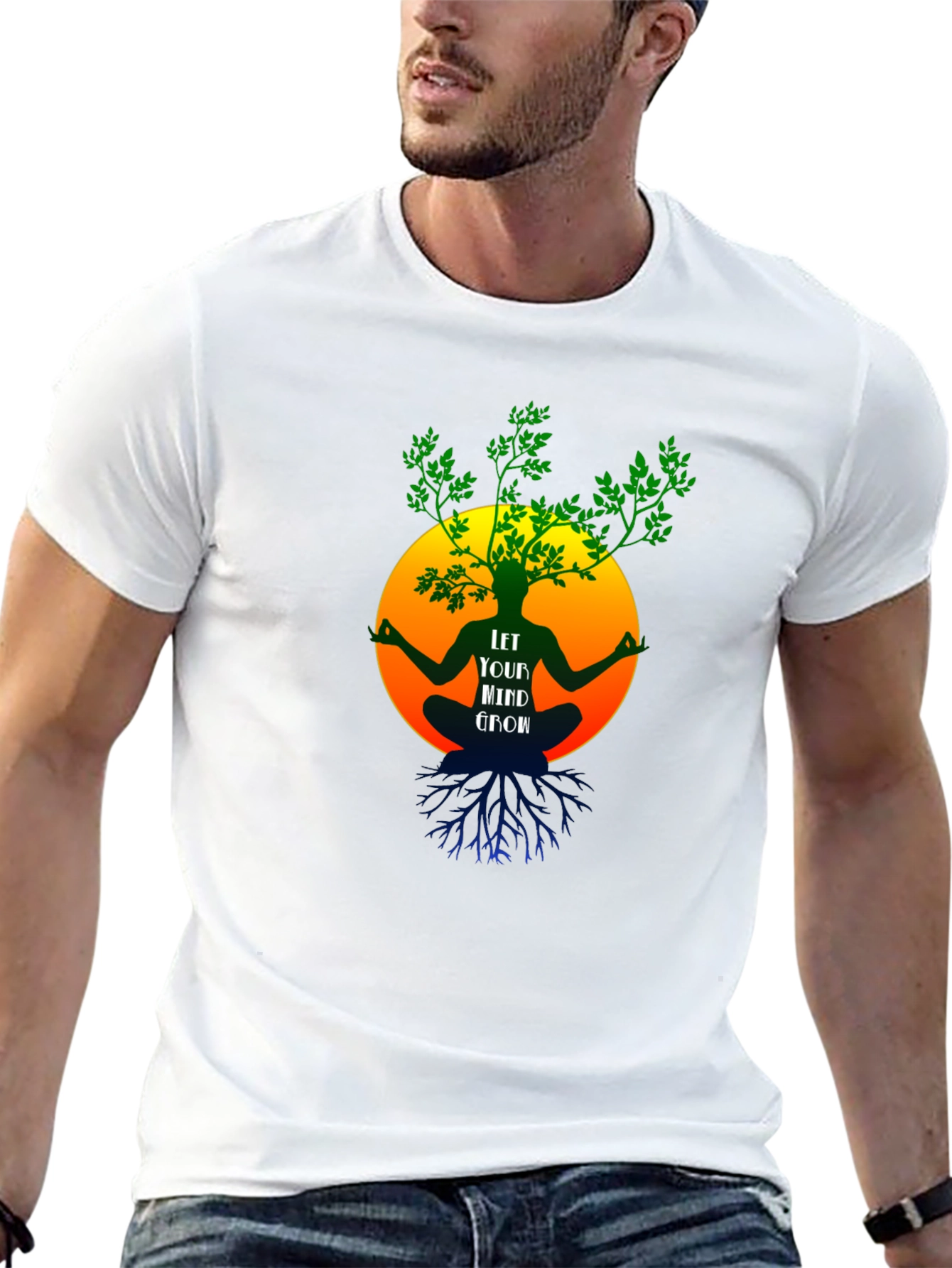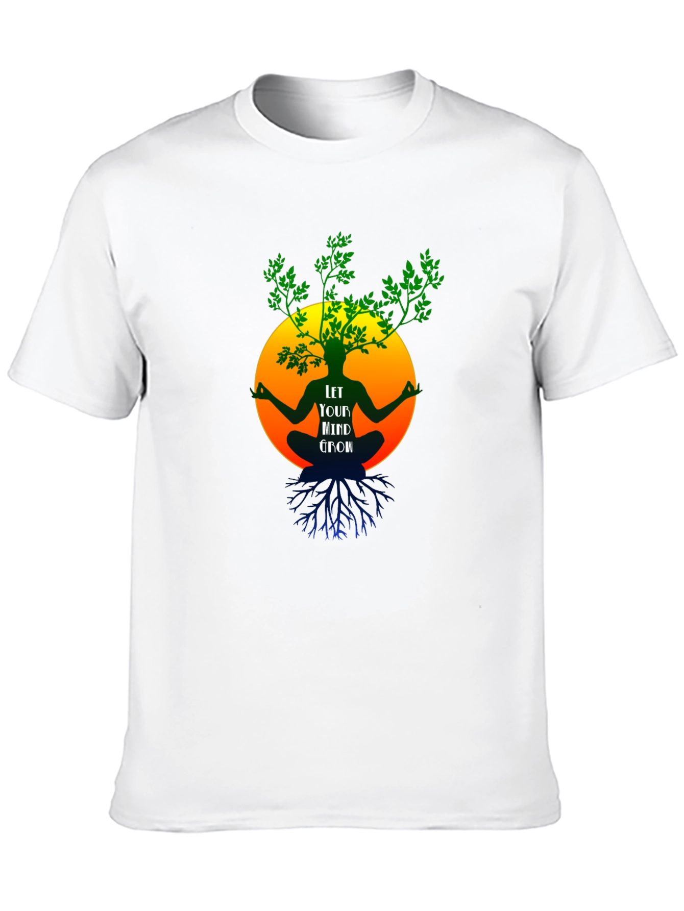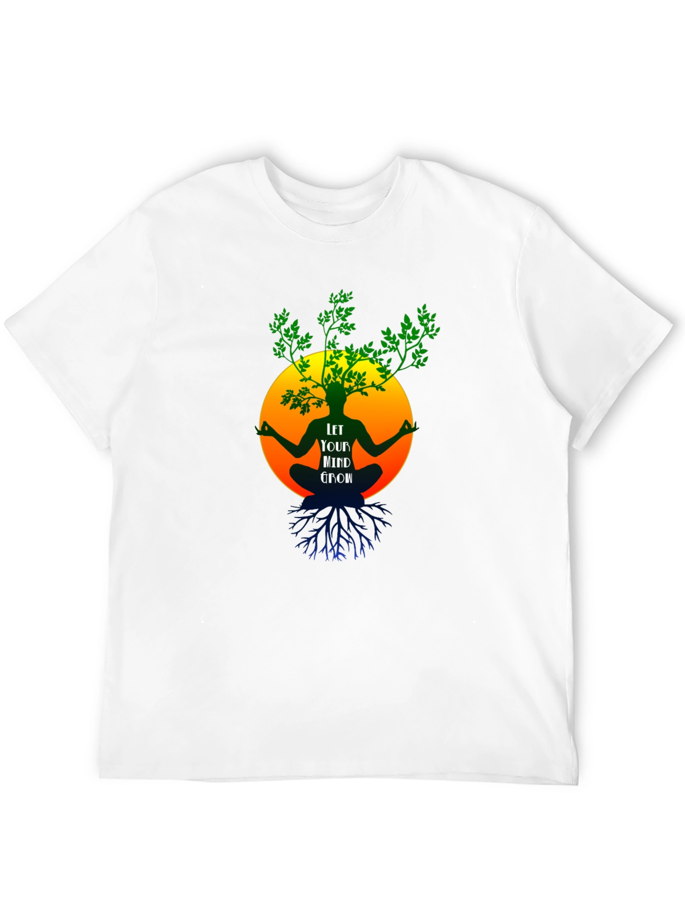 Expresa tu bienestar con esta camiseta negra única. Presenta un diseño llamativo de una figura meditando que simboliza el crecimiento personal. Los colores vibrantes y el detalle del árbol con raíces representan la conexión con la naturaleza y la expansión mental. Fabricada con materiales suaves y cómodos, esta camiseta es perfecta para usarla en tus sesiones de yoga, meditación o simplemente para lucir un estilo relajado y consciente en tu día a día. Deja que esta camiseta te recuerde nutrir tu mente y espíritu.