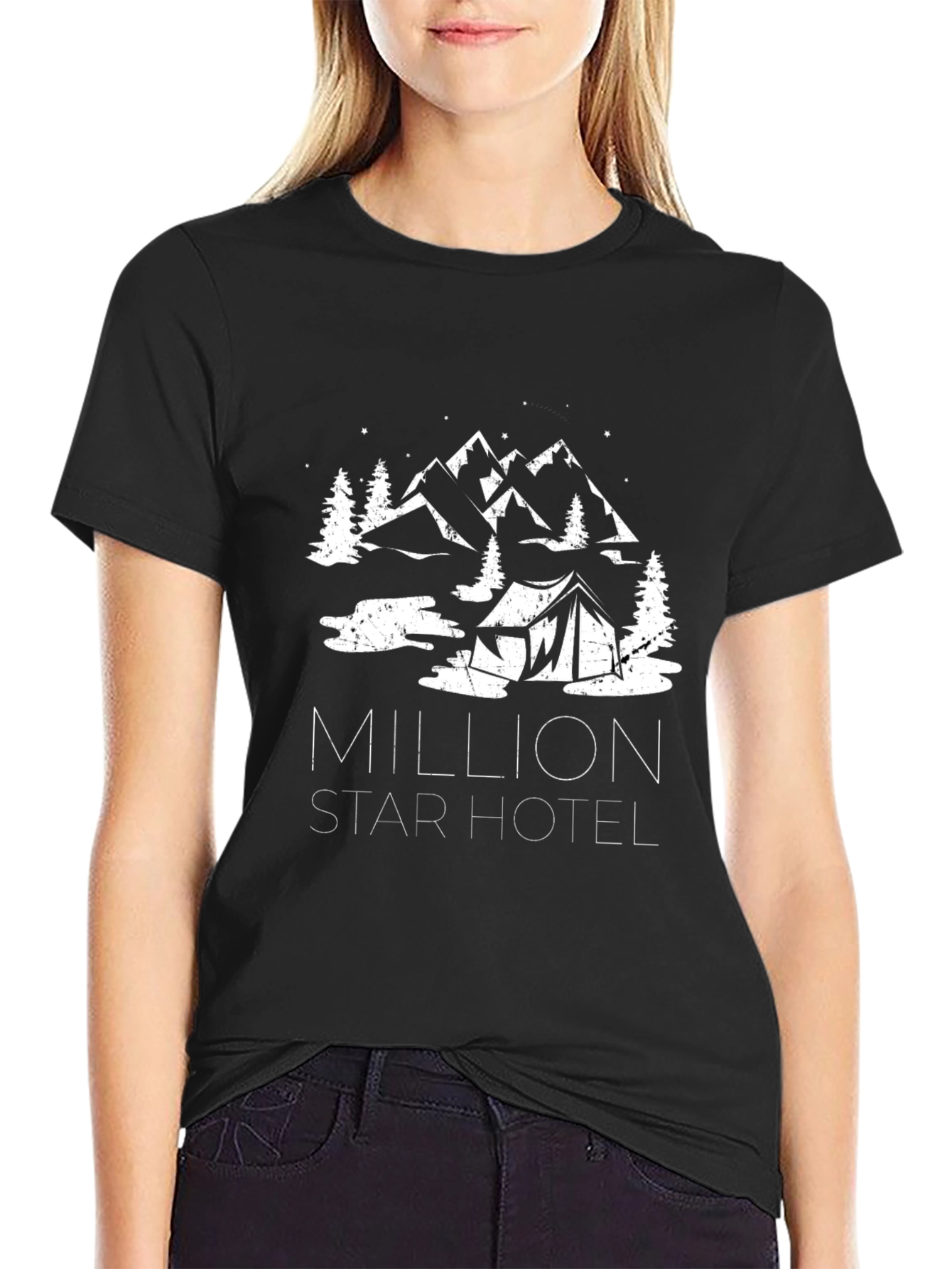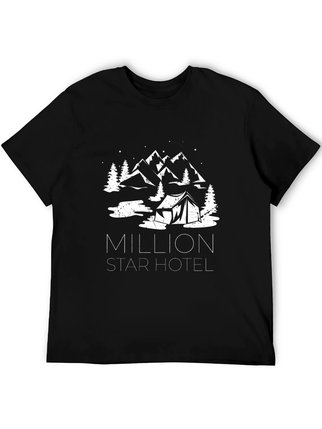 Descubre la camiseta negra 'Million Star Hotel', ideal para los amantes de la naturaleza y las aventuras al aire libre. Con un diseño original que evoca la tranquilidad de acampar bajo las estrellas, esta camiseta destaca por su estampado en blanco de alta calidad, mostrando montañas, árboles y una tienda de campaña, creando una atmósfera de escape y aventura. Fabricada con un tejido suave y cómodo, es perfecta para llevar en tus excursiones, escapadas de fin de semana o simplemente para el día a día. Su diseño único te hará destacar entre la multitud, mostrando tu pasión por la vida al aire libre con estilo y originalidad. ¡Prepárate para vivir experiencias inolvidables con esta camiseta que celebra la belleza de la naturaleza!