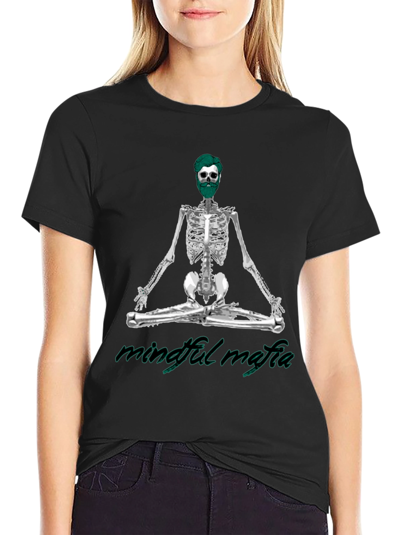 Camiseta Negra Mindfulness Mafia - Diseño Esqueleto
