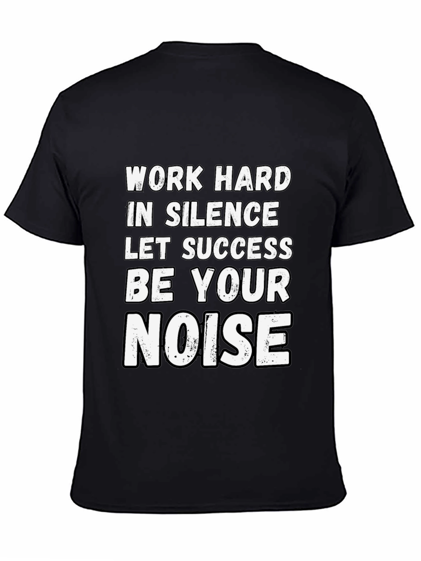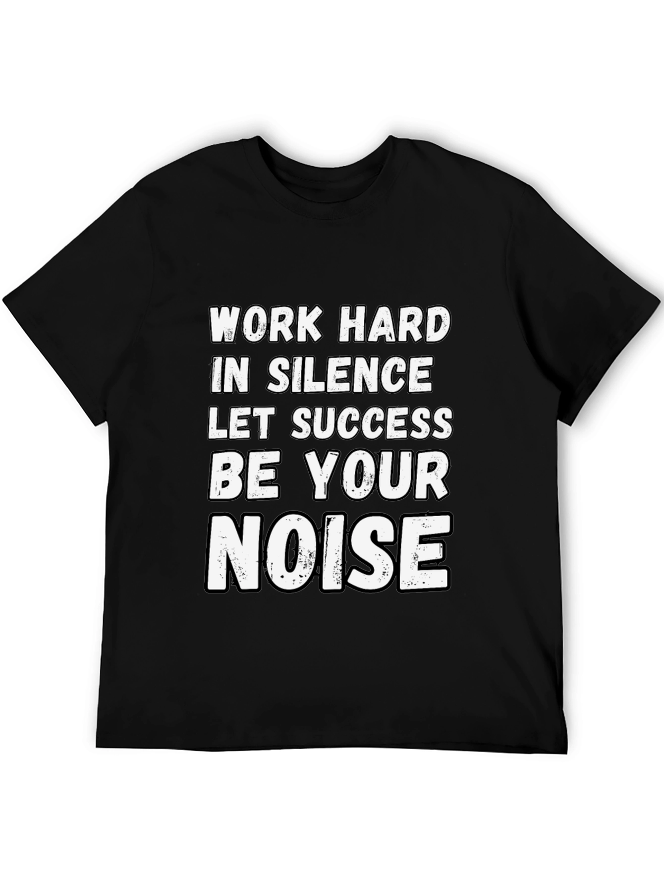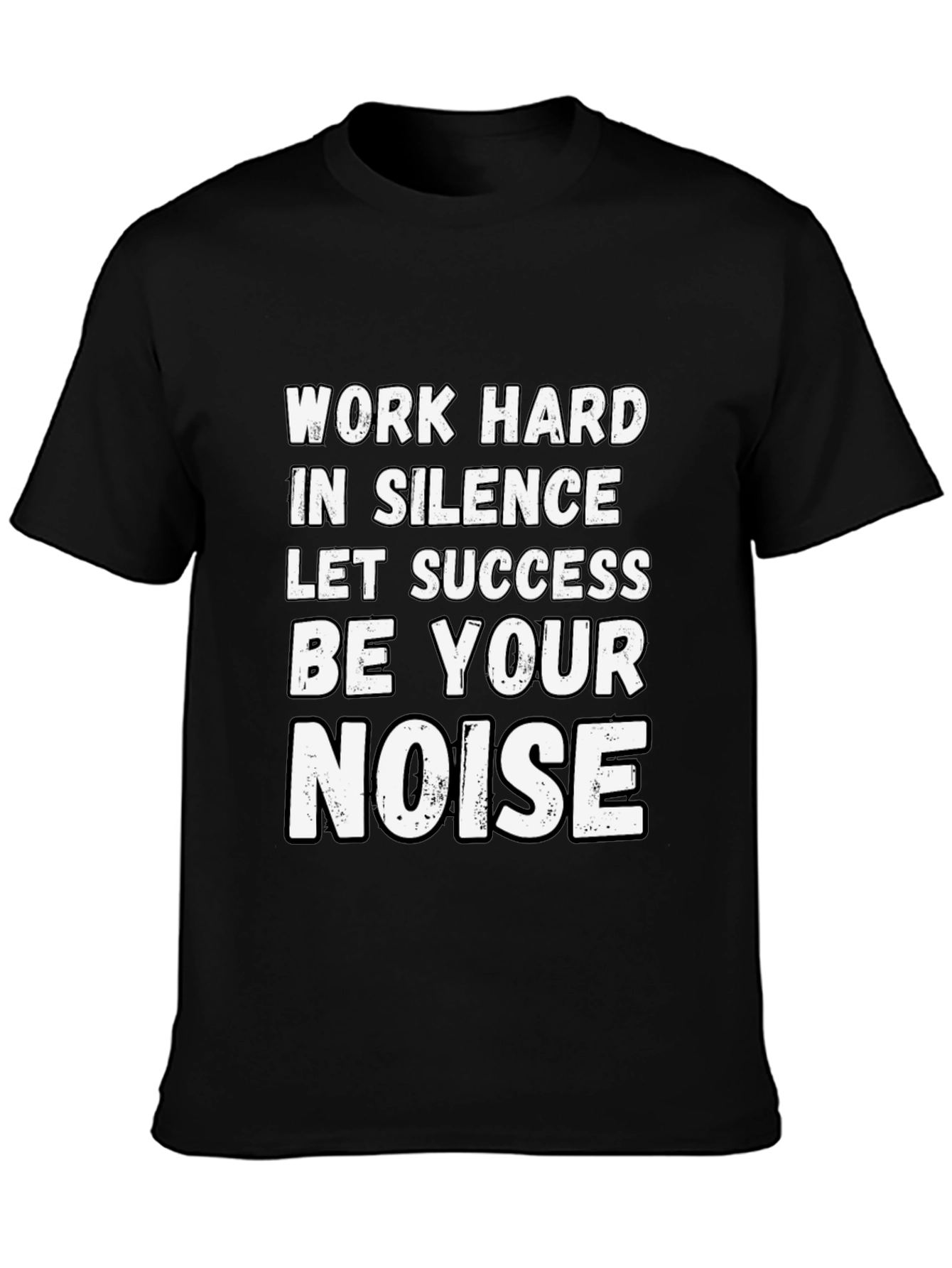 Luce esta elegante camiseta negra que irradia motivación y estilo. Con un diseño impactante en letras blancas contrastantes, la frase "WORK HARD IN SILENCE LET SUCCESS BE YOUR NOISE" captura la esencia del esfuerzo discreto y el éxito resonante. Fabricada con un material suave al tacto, esta camiseta de manga corta ofrece comodidad y libertad de movimiento, ideal para el día a día o para esos momentos de inspiración en el gimnasio. Perfecta para hombres que buscan proyectar una imagen de determinación y ambición. Combínala con tus jeans o pantalones favoritos para un look casual y lleno de energía. ¡Deja que tu éxito hable por ti!