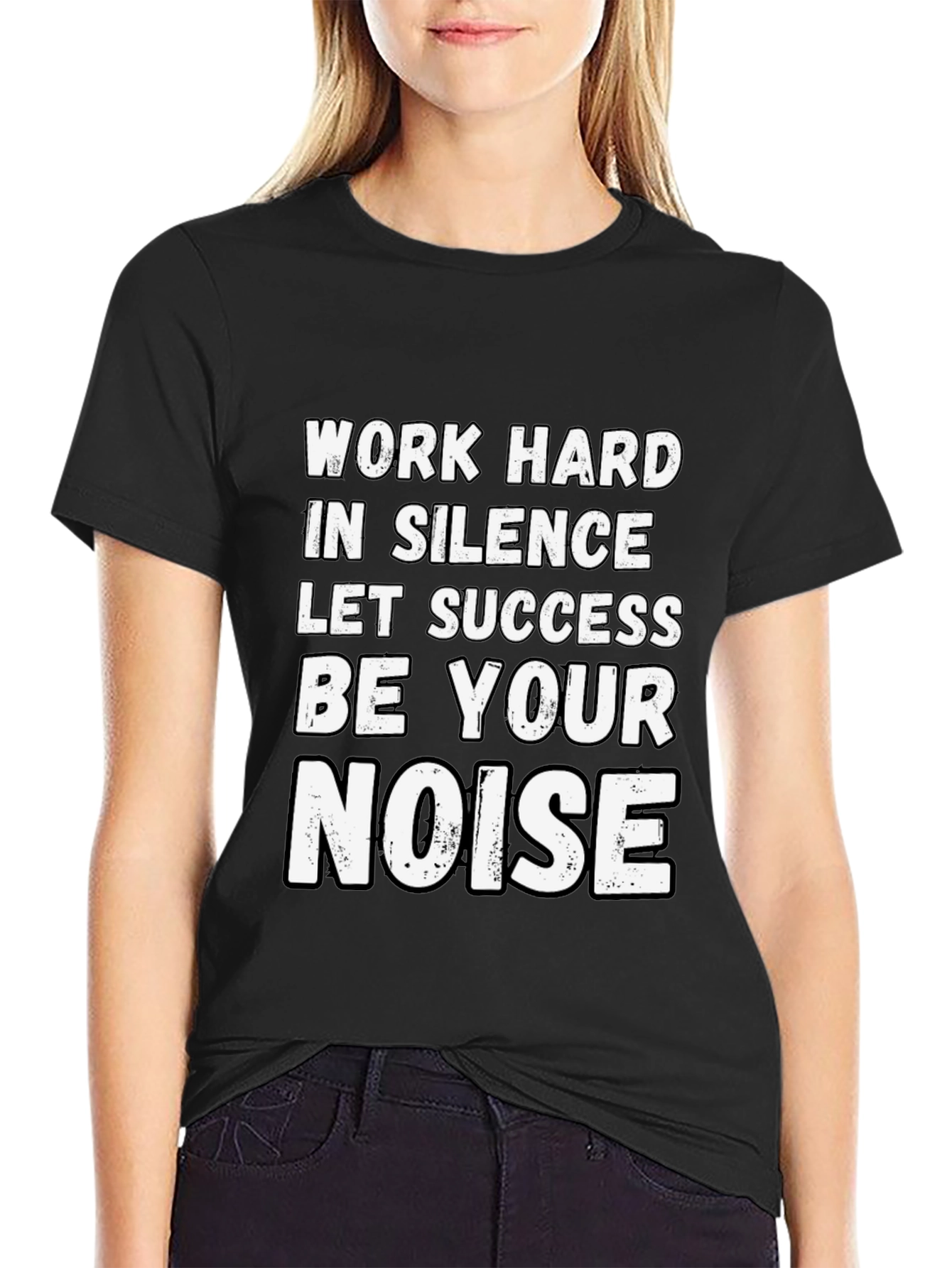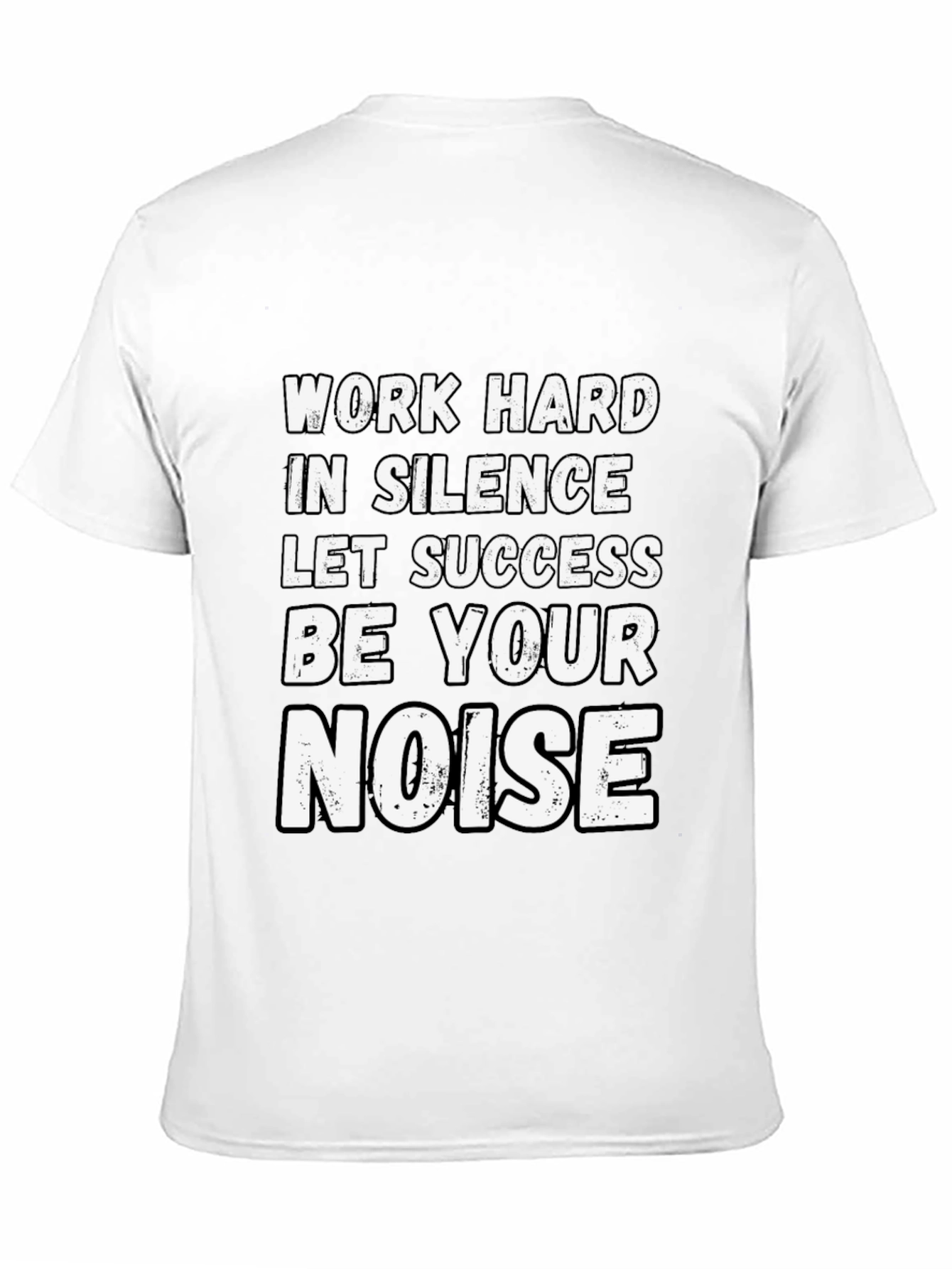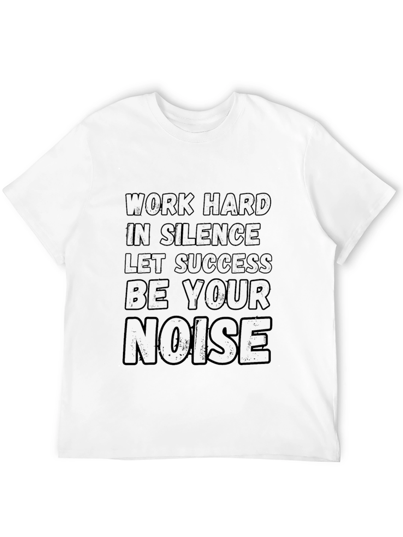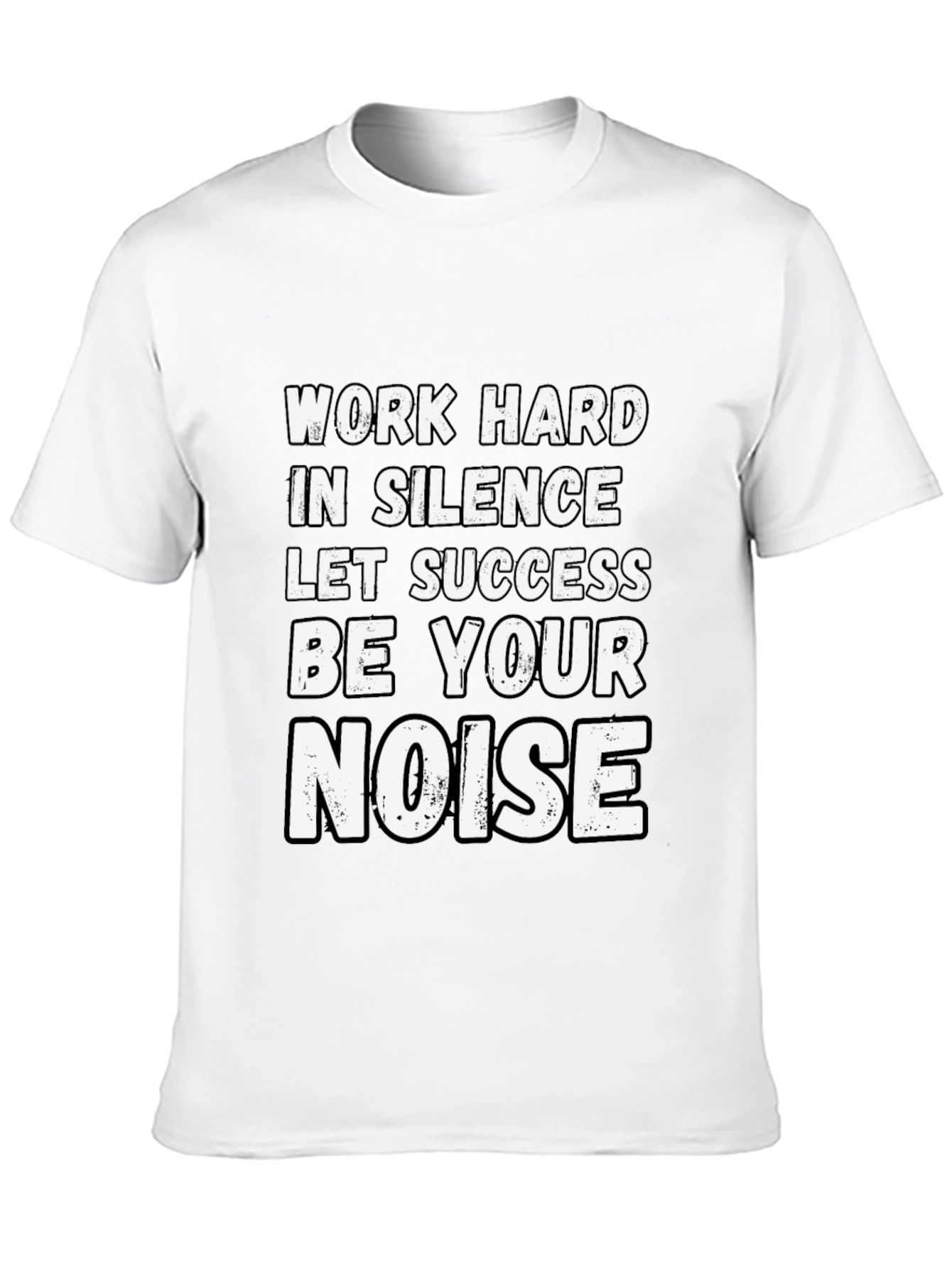 Luce esta elegante camiseta negra que irradia motivación y estilo. Con un diseño impactante en letras blancas contrastantes, la frase "WORK HARD IN SILENCE LET SUCCESS BE YOUR NOISE" captura la esencia del esfuerzo discreto y el éxito resonante. Fabricada con un material suave al tacto, esta camiseta de manga corta ofrece comodidad y libertad de movimiento, ideal para el día a día o para esos momentos de inspiración en el gimnasio. Perfecta para hombres que buscan proyectar una imagen de determinación y ambición. Combínala con tus jeans o pantalones favoritos para un look casual y lleno de energía. ¡Deja que tu éxito hable por ti!