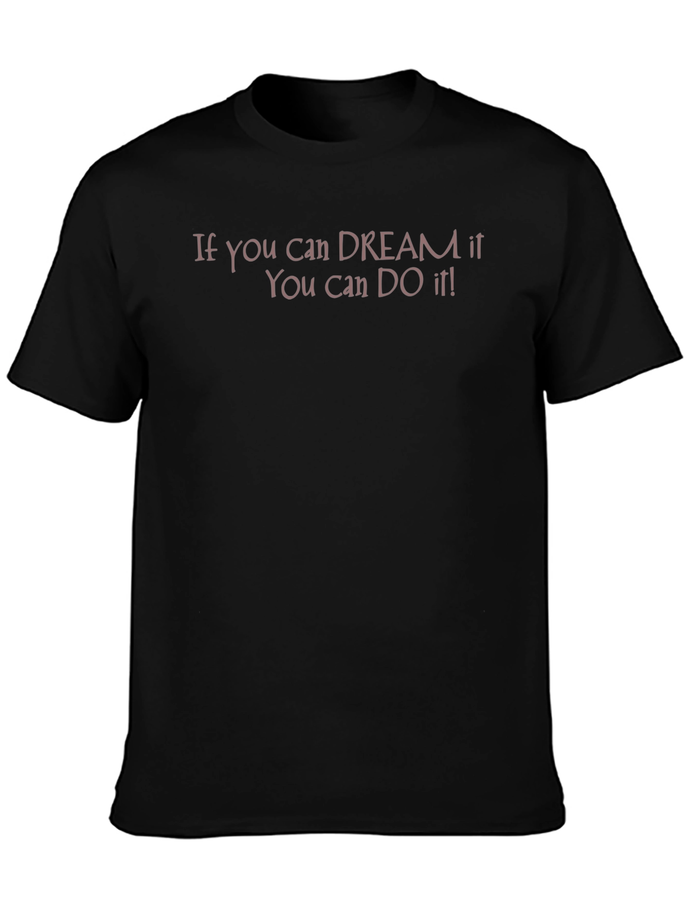 Luce esta camiseta negra con un mensaje inspirador: "Si puedes soñarlo, puedes hacerlo". Fabricada con un tejido suave y cómodo, esta camiseta de manga corta es perfecta para el uso diario. El texto, en un tono sutil pero legible, añade un toque de motivación a tu vestuario. Su diseño versátil permite combinarla fácilmente con vaqueros, pantalones cortos o faldas. Ideal para llevar al gimnasio, en salidas informales o simplemente para relajarse en casa. Un recordatorio constante de que puedes lograr tus metas. ¡Inspira a otros con este mensaje positivo!