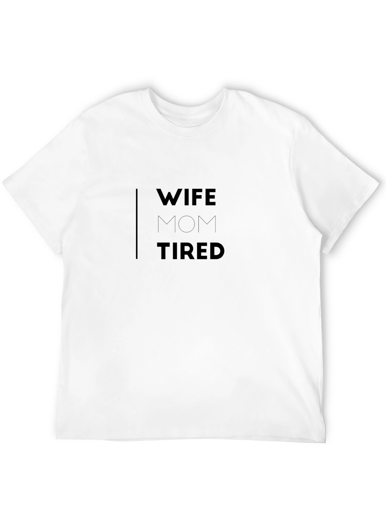 Esta camiseta negra de manga corta, ideal para el día a día, presenta un diseño divertido y auténtico. Con la inscripción "WIFE MOM TIRED" en letras mayúsculas, esta prenda captura el espíritu de la mujer moderna que equilibra múltiples roles. Perfecta para llevar con jeans, leggings o faldas, esta camiseta te permitirá expresar tu personalidad con estilo y comodidad. Confeccionada con materiales suaves y transpirables, esta camiseta te mantendrá fresca y cómoda durante todo el día. ¡Una prenda esencial para cualquier armario femenino!