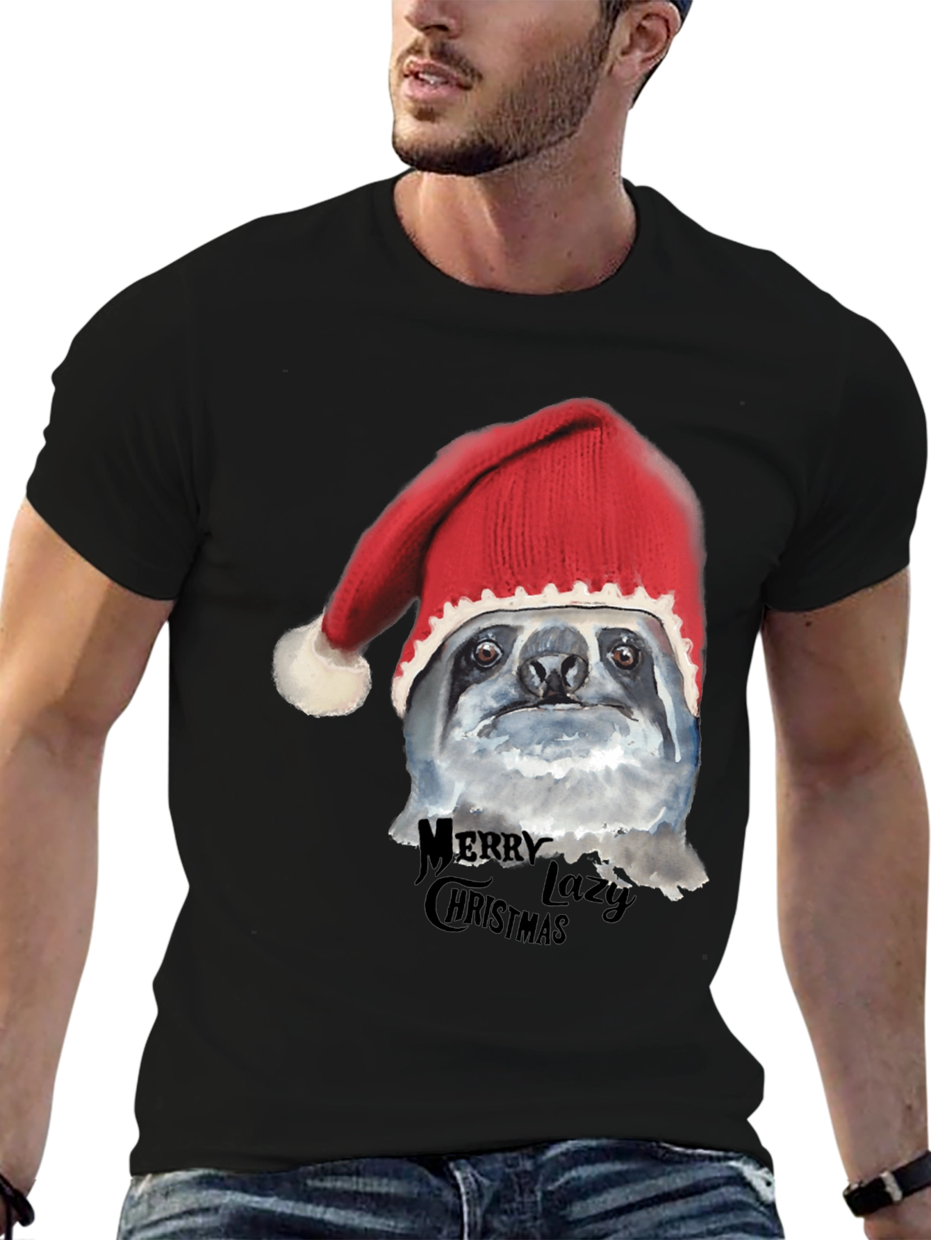 Celebra las fiestas con esta divertida camiseta negra. Presenta un adorable diseño de un perezoso con un gorro de Papá Noel, perfecto para contagiar el espíritu navideño con un toque de humor. La camiseta está confeccionada con un material suave y cómodo, ideal para usar durante todo el día. Su diseño único "Merry Lazy Christmas" la convierte en una excelente opción para fiestas, reuniones familiares o simplemente para expresar tu amor por la Navidad y los perezosos. ¡Consigue la tuya y disfruta de unas fiestas relajadas y llenas de alegría!