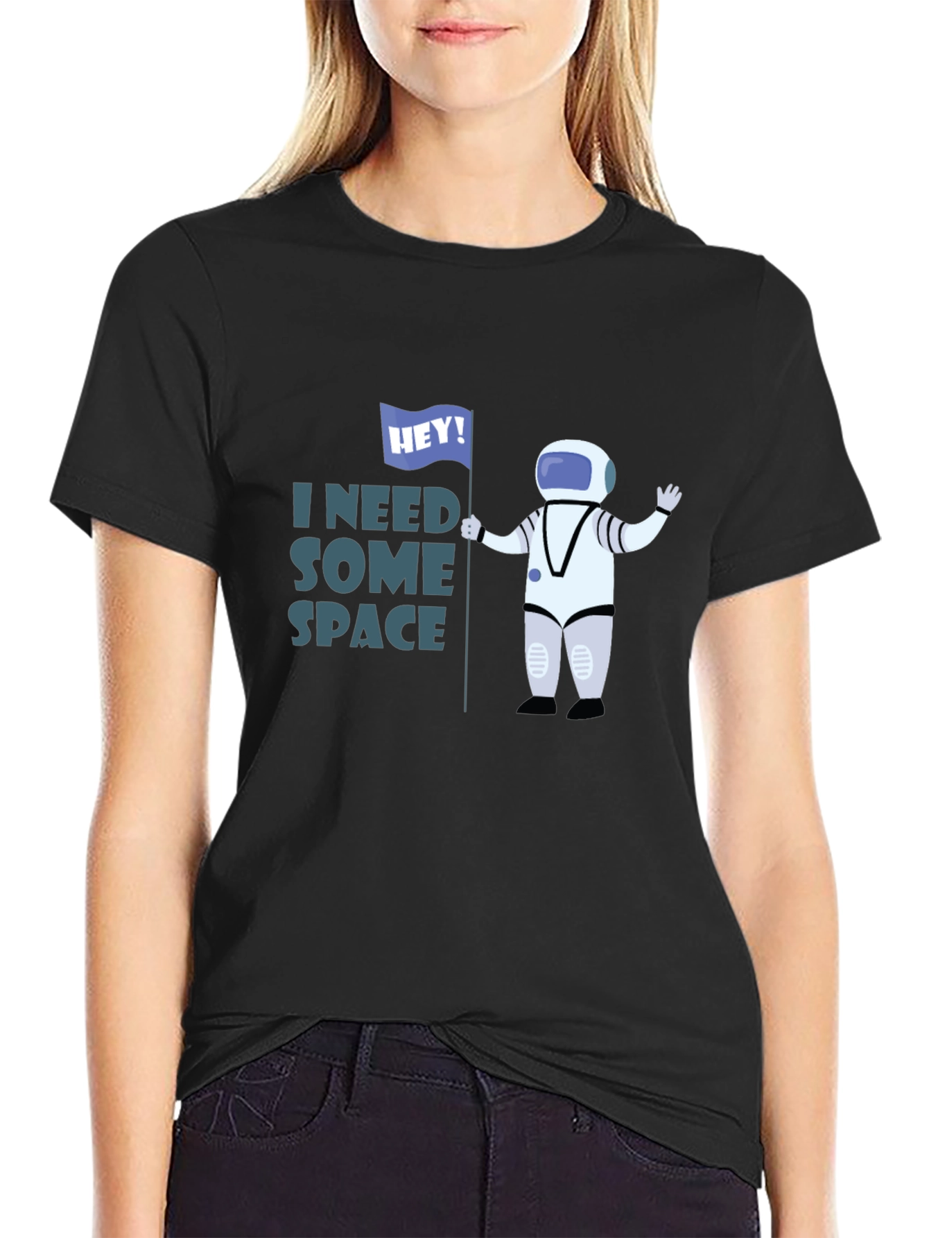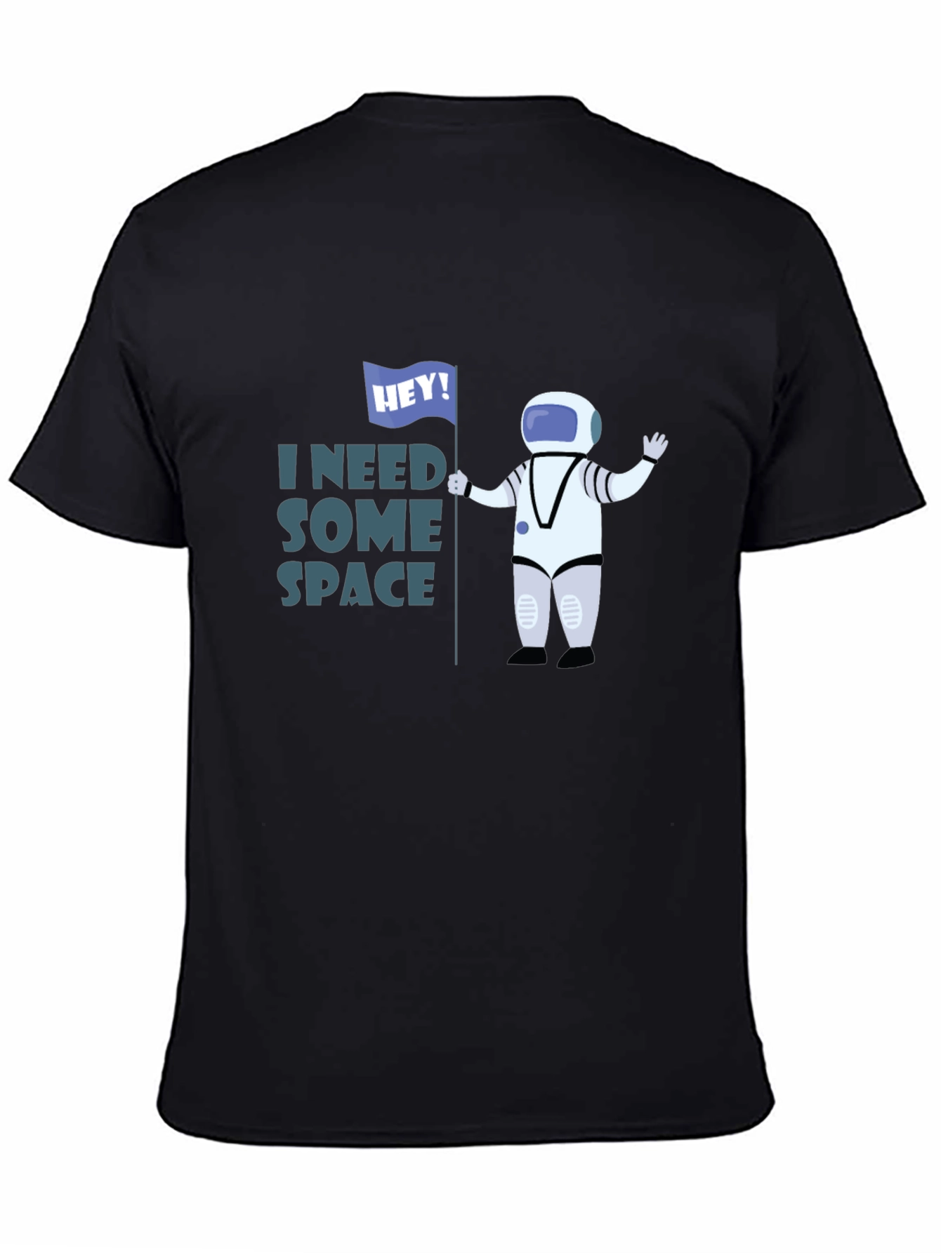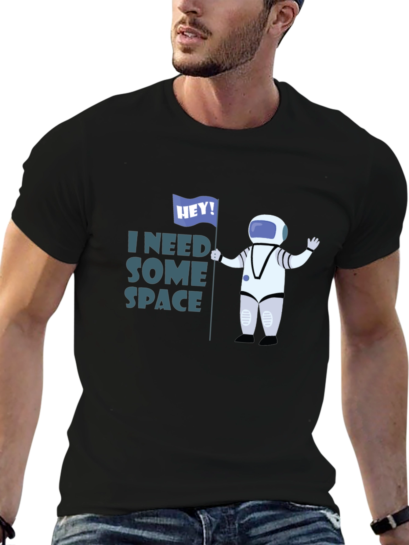 Luce esta original camiseta negra con un diseño divertido y llamativo. Presenta a un astronauta caricaturizado con un toque de humor. El estampado incluye la frase "I Need Some Space" (Necesito Algo de Espacio) junto a una bandera que dice "Hey!". Ideal para expresar tu personalidad y sentido del humor. Perfecta para el uso diario, eventos informales o como un regalo original para amantes del espacio y la diversión. Fabricada con materiales cómodos y duraderos para un uso prolongado. ¡Destaca con esta prenda única y demuestra que necesitas tu espacio personal!