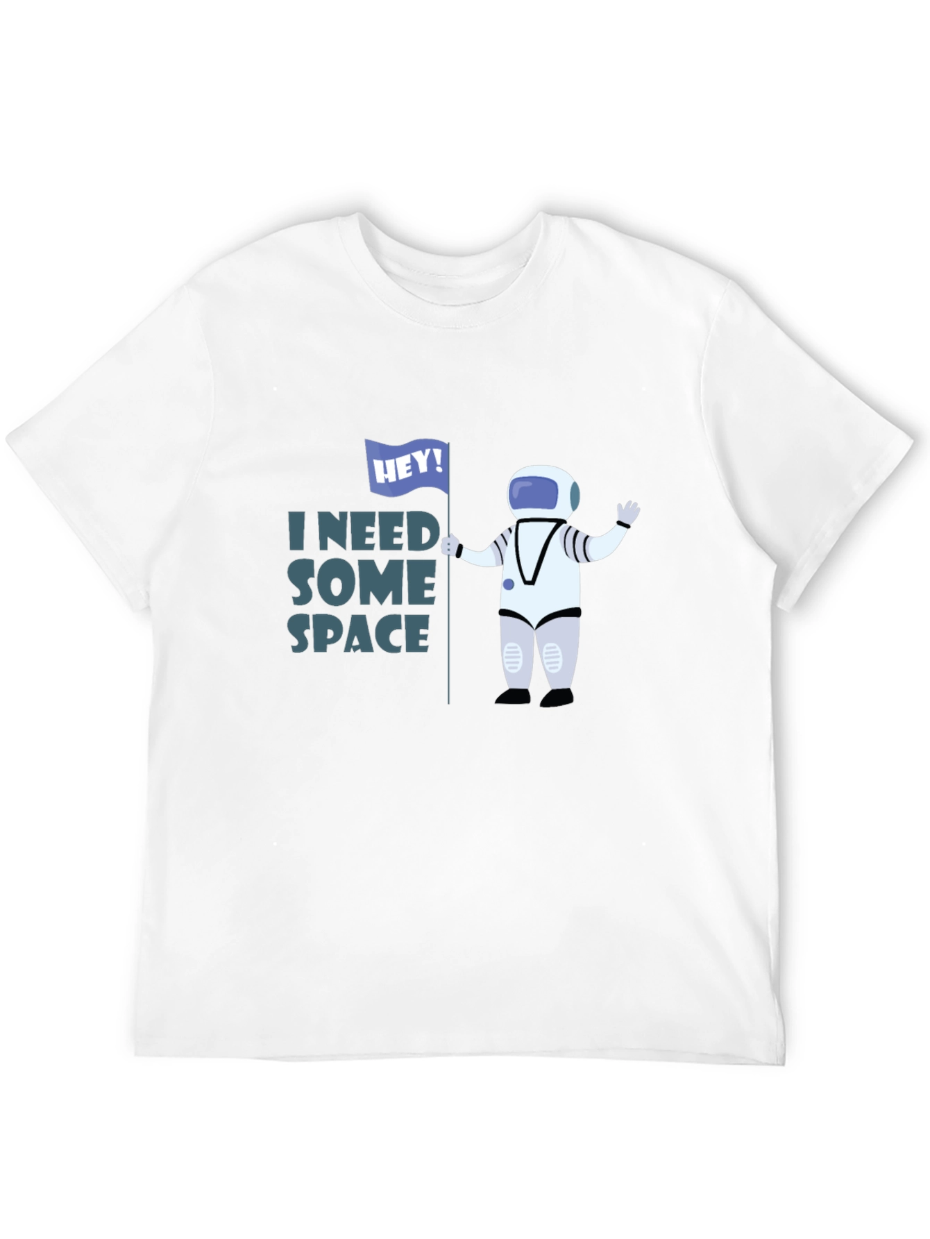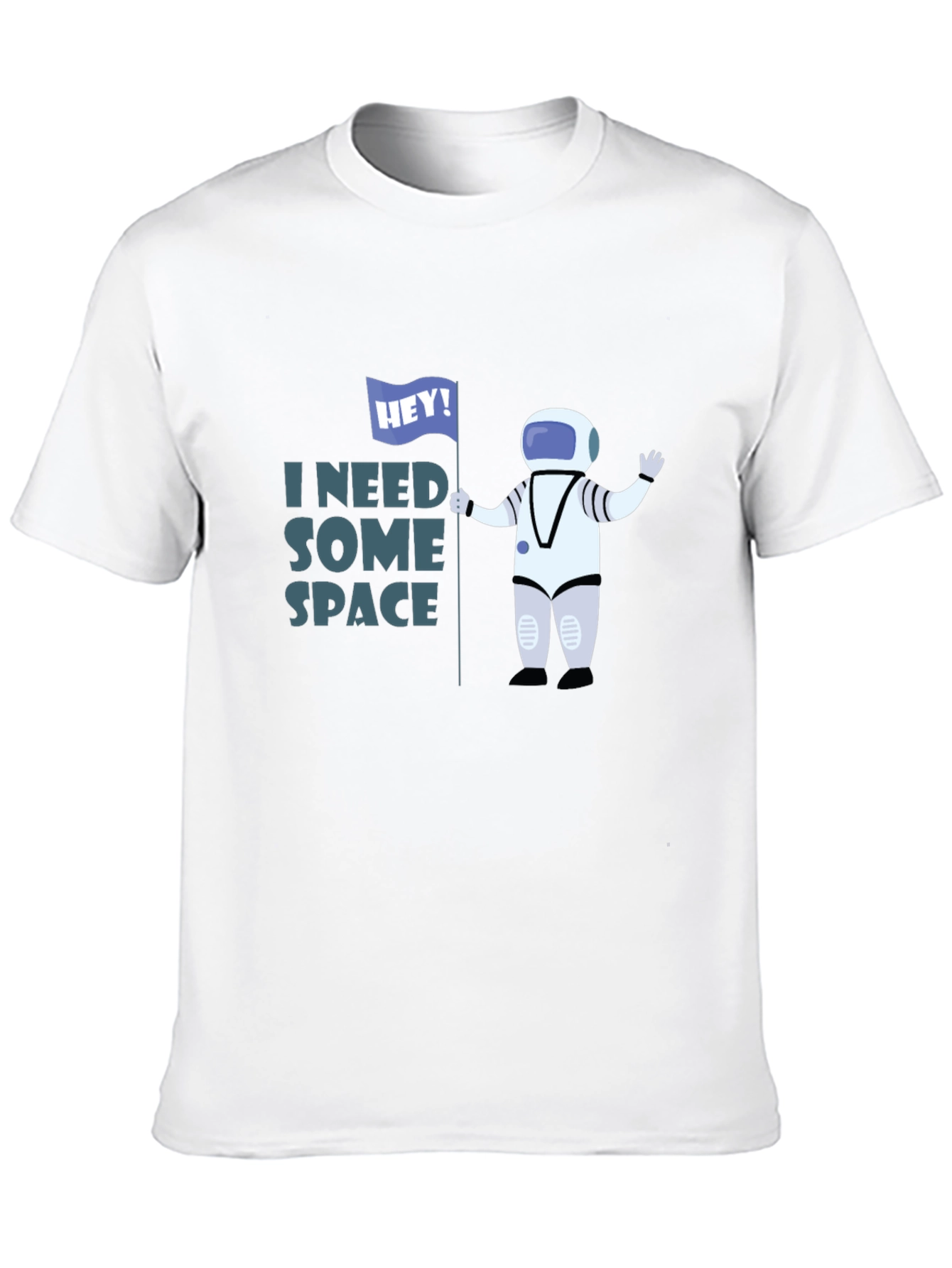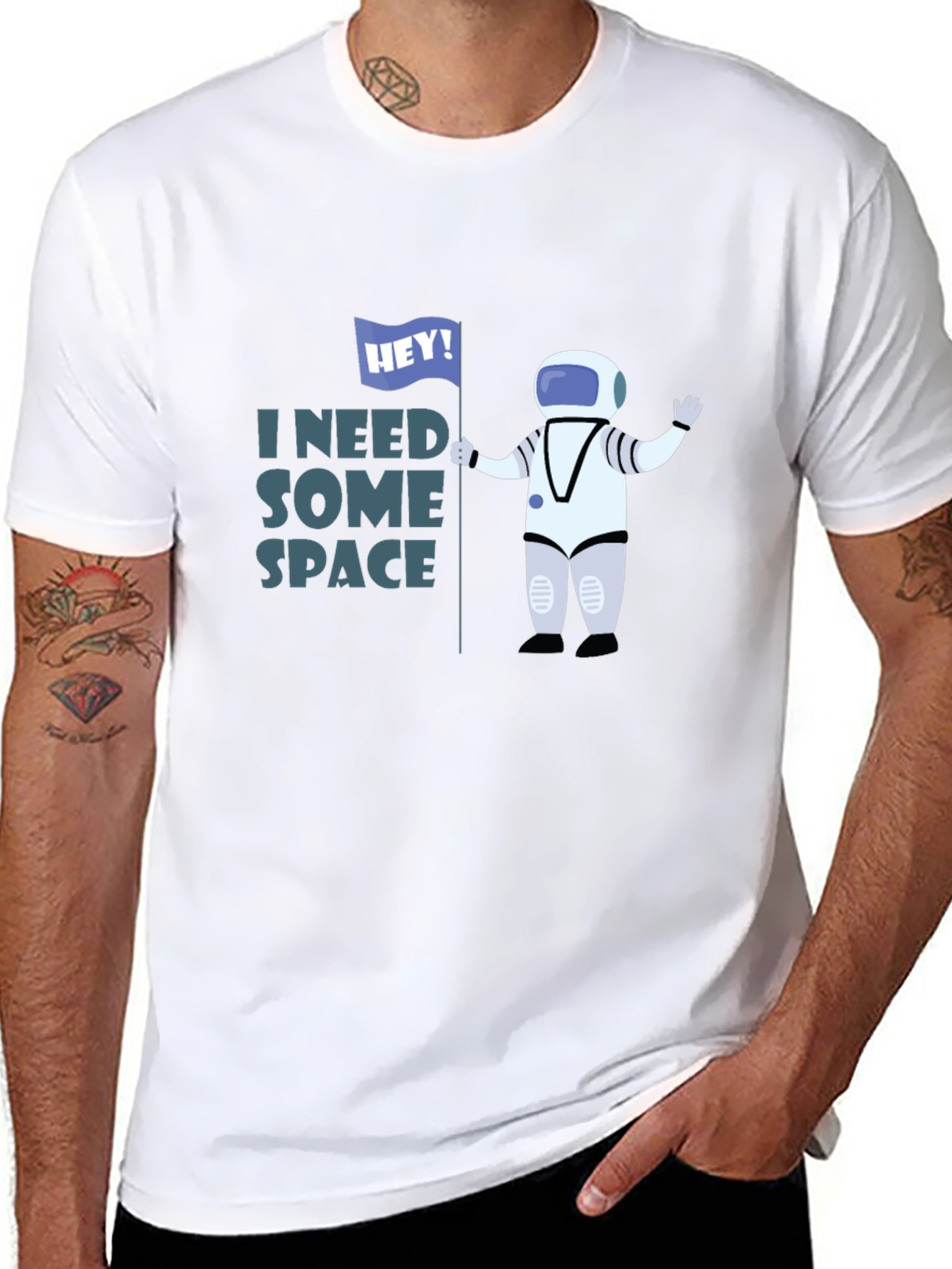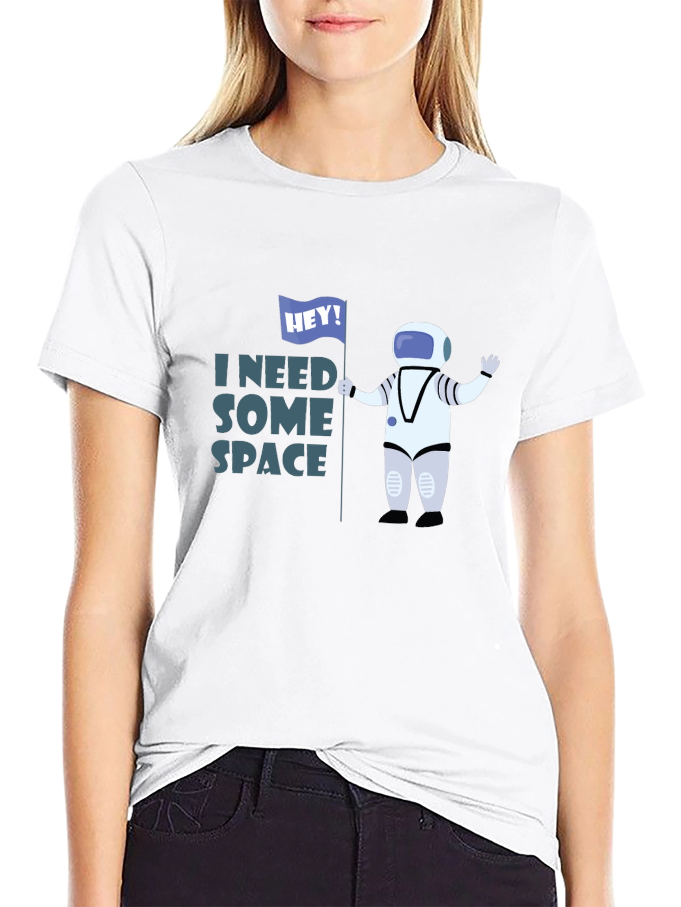 Luce esta original camiseta negra con un diseño divertido y llamativo. Presenta a un astronauta caricaturizado con un toque de humor. El estampado incluye la frase "I Need Some Space" (Necesito Algo de Espacio) junto a una bandera que dice "Hey!". Ideal para expresar tu personalidad y sentido del humor. Perfecta para el uso diario, eventos informales o como un regalo original para amantes del espacio y la diversión. Fabricada con materiales cómodos y duraderos para un uso prolongado. ¡Destaca con esta prenda única y demuestra que necesitas tu espacio personal!
