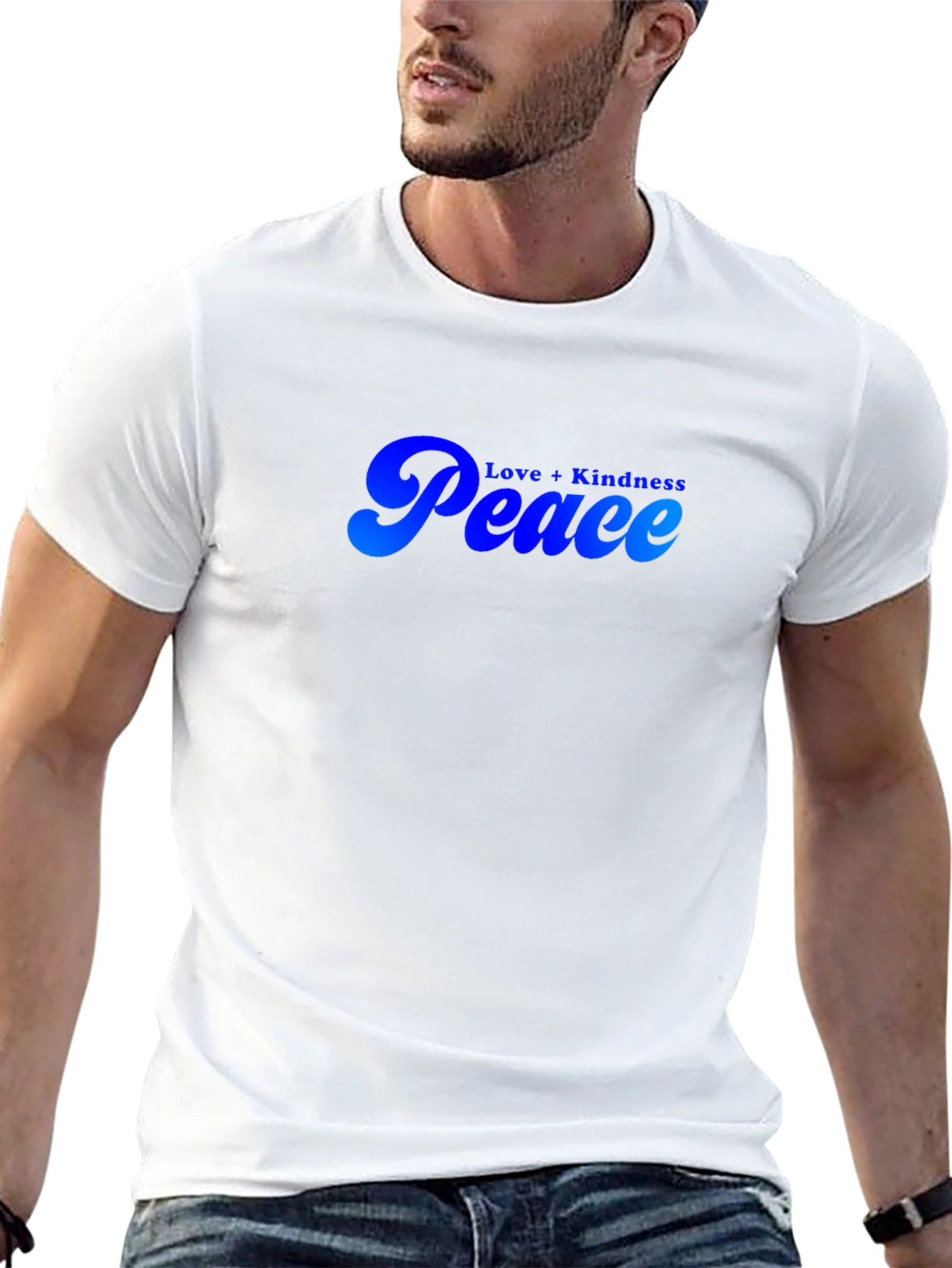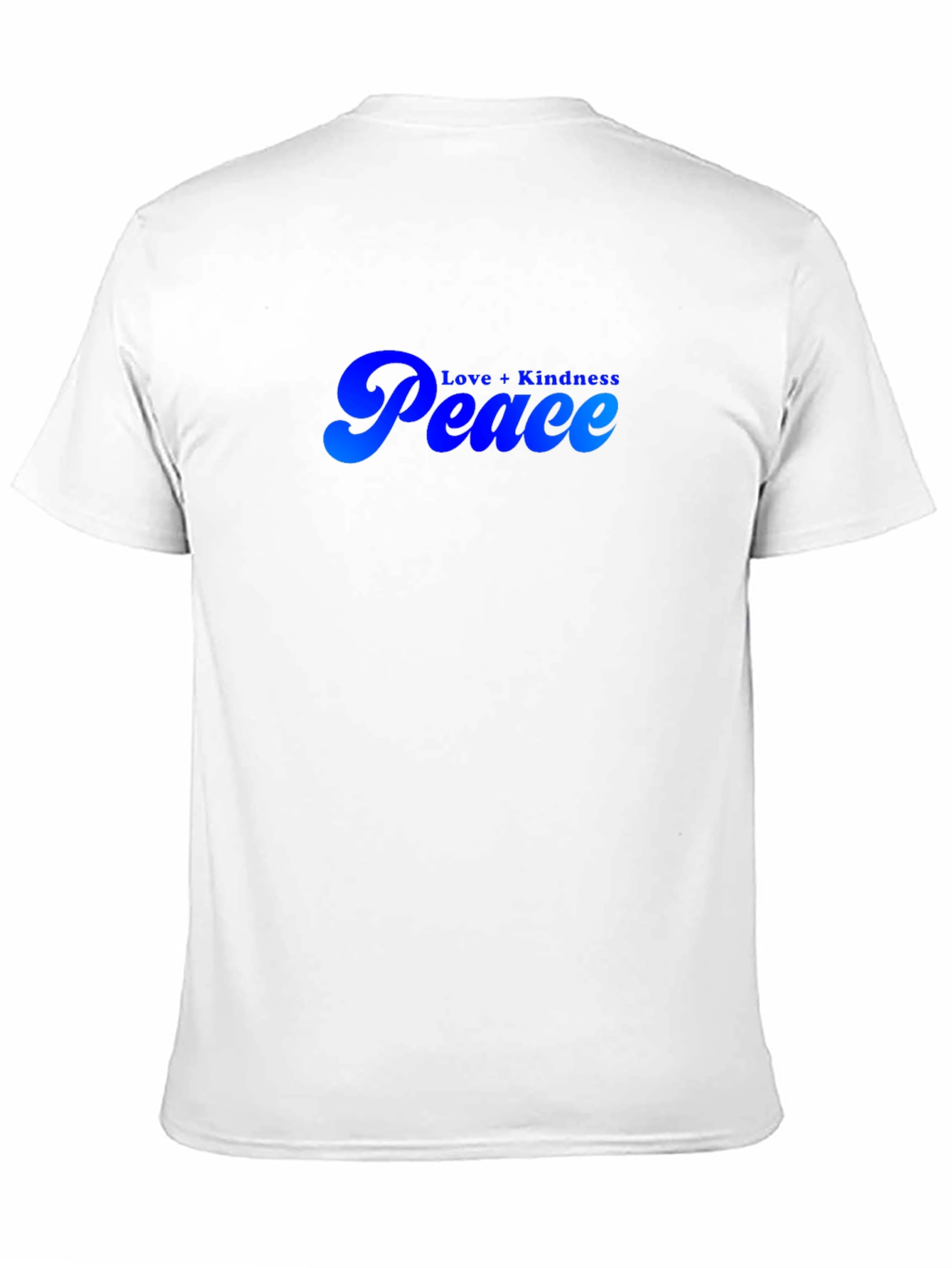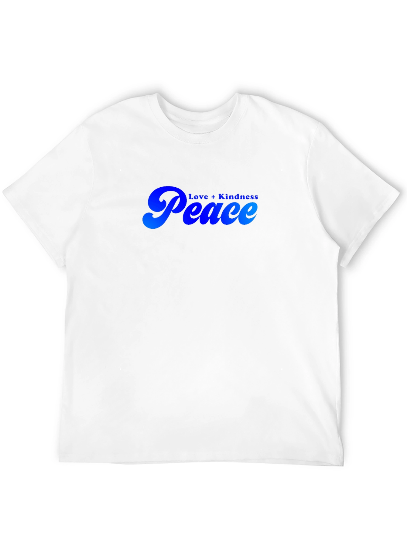 Luce un estilo relajado con esta camiseta negra de manga corta. Presenta un diseño llamativo con las palabras "Peace" y "Love + Kindness" en un degradado de azul, ofreciendo un toque de optimismo y positividad. Ideal para uso diario, esta camiseta es perfecta para expresar tu individualidad y promover un mensaje de paz y armonía. Su tejido suave proporciona comodidad durante todo el día. Combina esta prenda versátil con jeans, pantalones cortos o faldas para un look casual y moderno. Añade un toque de serenidad a tu guardarropa con esta camiseta única.