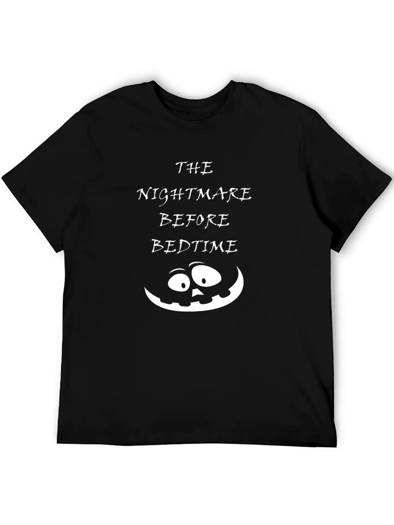 Prepárate para Halloween con esta divertida camiseta negra. Presenta una impresión llamativa con el texto "The Nightmare Before Bedtime" y un diseño gráfico de cara de calabaza. Perfecta para fiestas de Halloween, eventos temáticos o simplemente para agregar un toque de humor a tu vestuario diario. Hecha con materiales suaves y cómodos, esta camiseta te asegurará un ajuste perfecto y una sensación agradable durante todo el día. ¡Muestra tu amor por Halloween con esta prenda única y original! Ideal para hombres y mujeres que buscan un estilo casual y moderno con un toque festivo.