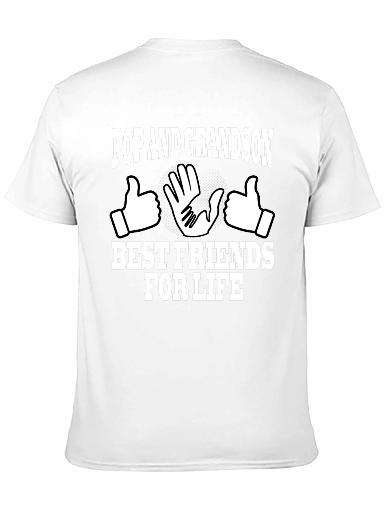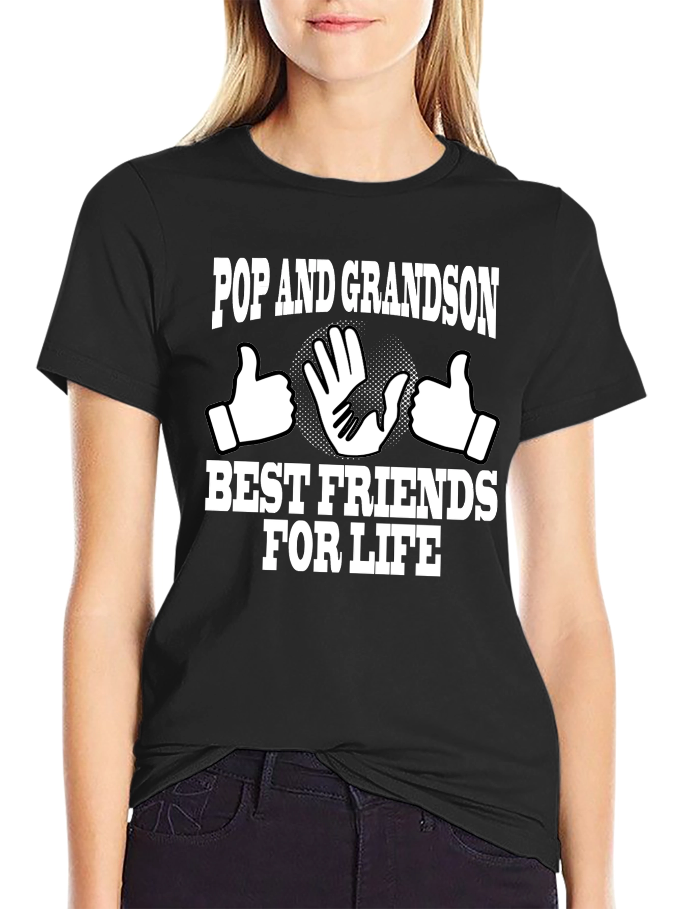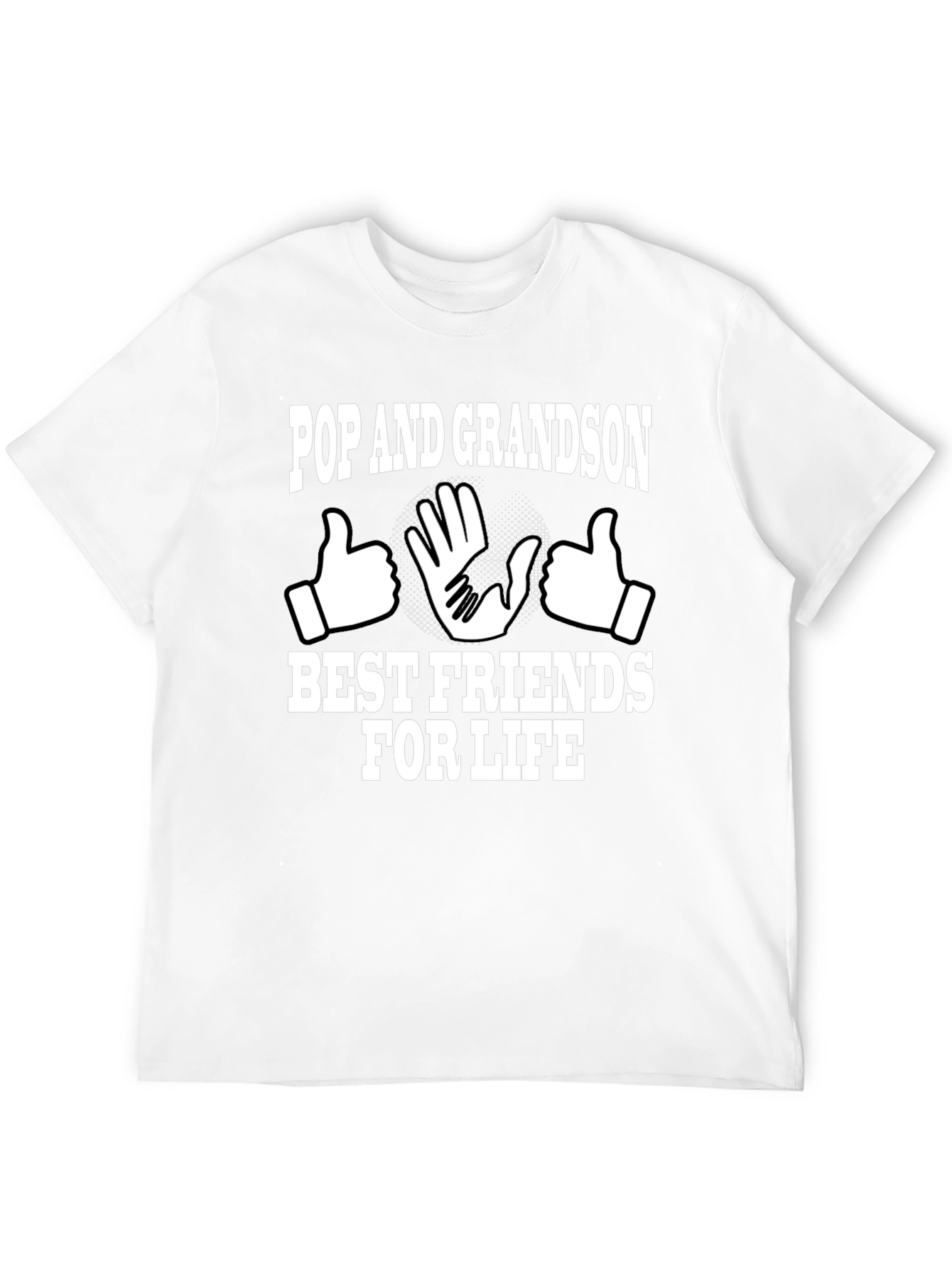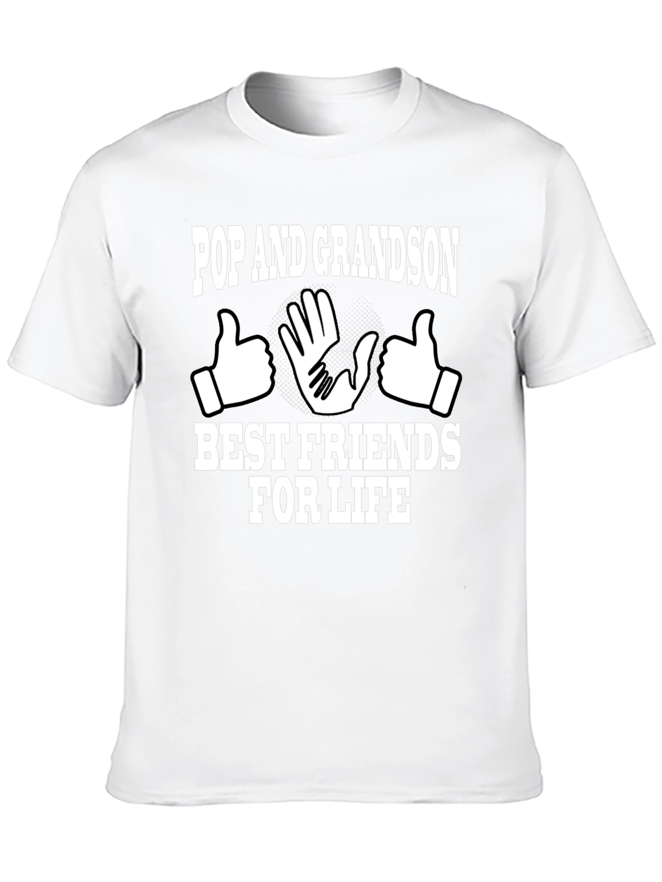 Muestra tu vínculo especial con esta camiseta negra que celebra la relación entre abuelo y nieto. El diseño presenta la frase "POP AND GRANDSON BEST FRIENDS FOR LIFE" en llamativas letras blancas, complementada con ilustraciones de manos entrelazadas en señal de complicidad. Perfecta para regalar en cumpleaños, el Día del Padre o simplemente para demostrar el cariño incondicional. Hecha con materiales suaves y cómodos, esta camiseta es ideal para usar a diario o en ocasiones especiales donde quieras destacar ese lazo familiar único. ¡Luce con orgullo tu conexión con tu nieto!