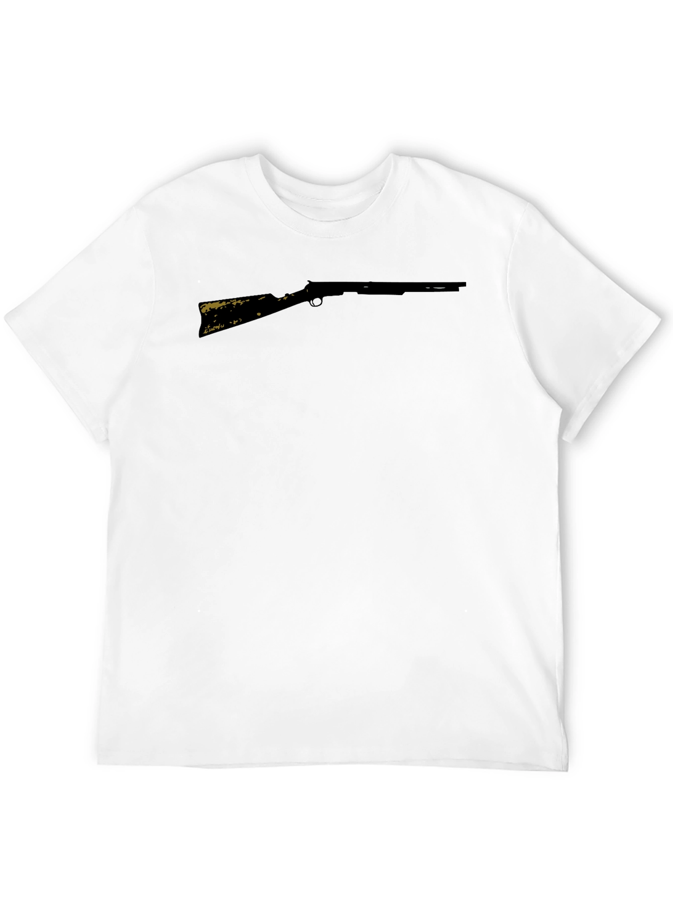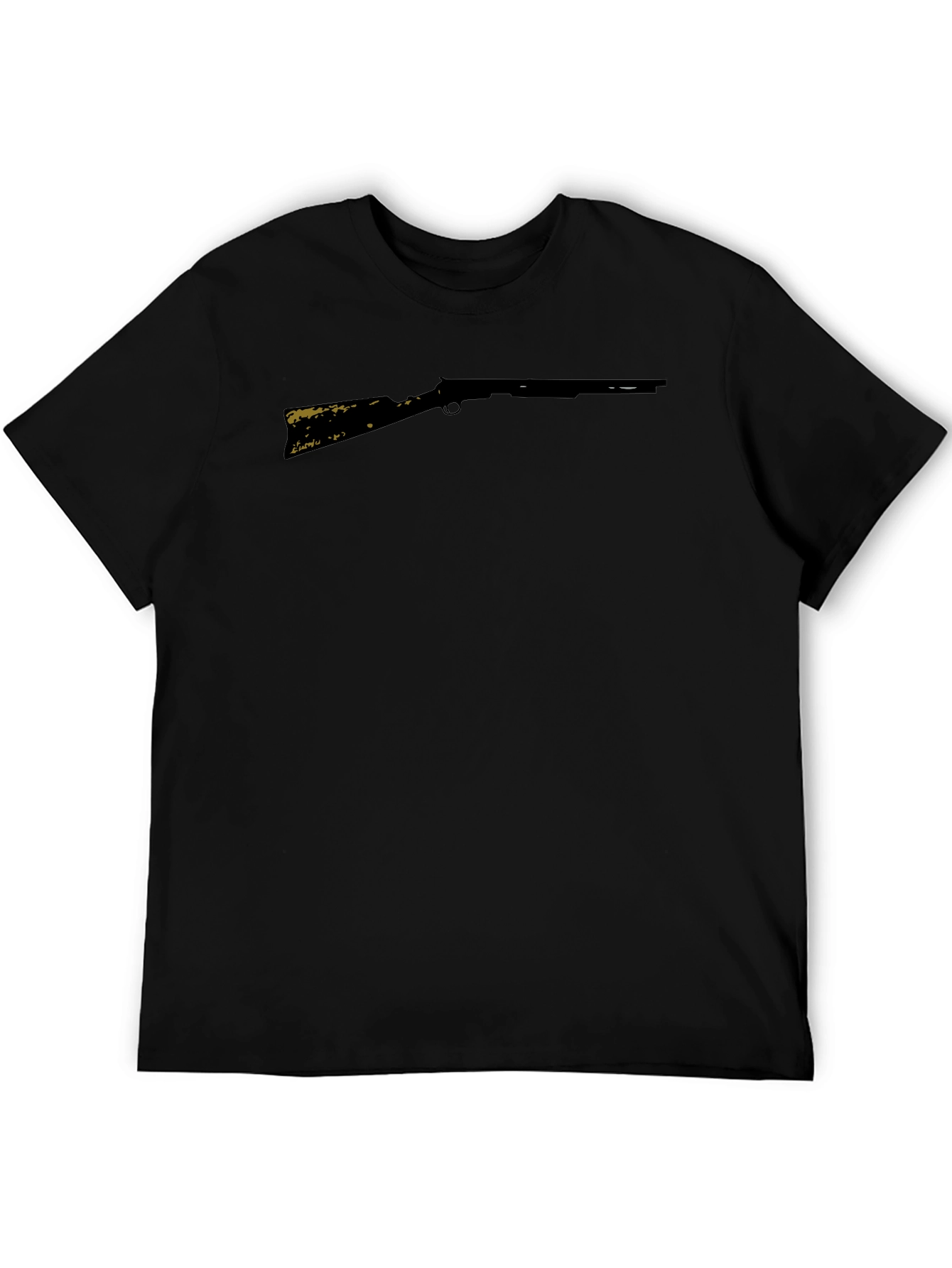 Destaca tu estilo con esta camiseta negra de manga corta para hombre. Presenta un diseño único de un rifle estampado en el pecho, ideal para aquellos que buscan expresar su individualidad. Confeccionada con materiales suaves y cómodos, esta camiseta es perfecta para el uso diario, ya sea para salir con amigos, relajarse en casa o para un evento casual. Su corte clásico asegura un ajuste favorecedor, mientras que el color negro ofrece versatilidad para combinar con cualquier atuendo. Añade un toque audaz y moderno a tu guardarropa con esta llamativa camiseta. ¡Consigue la tuya hoy mismo!