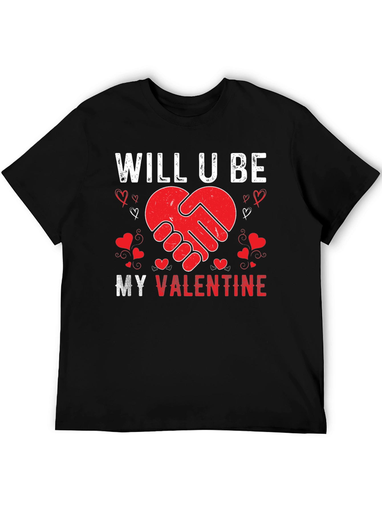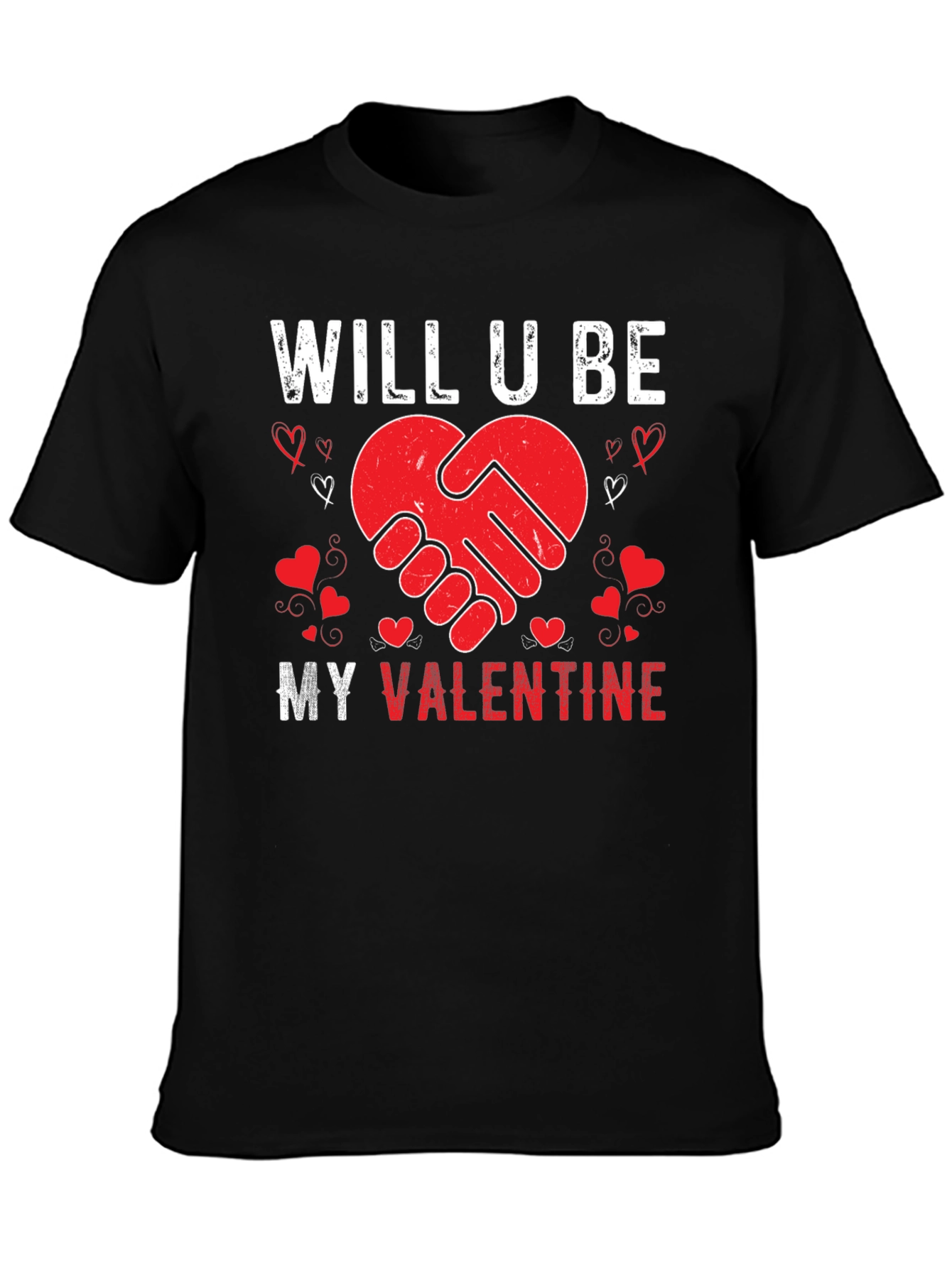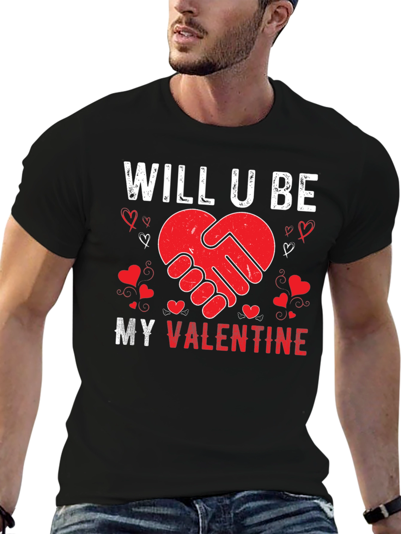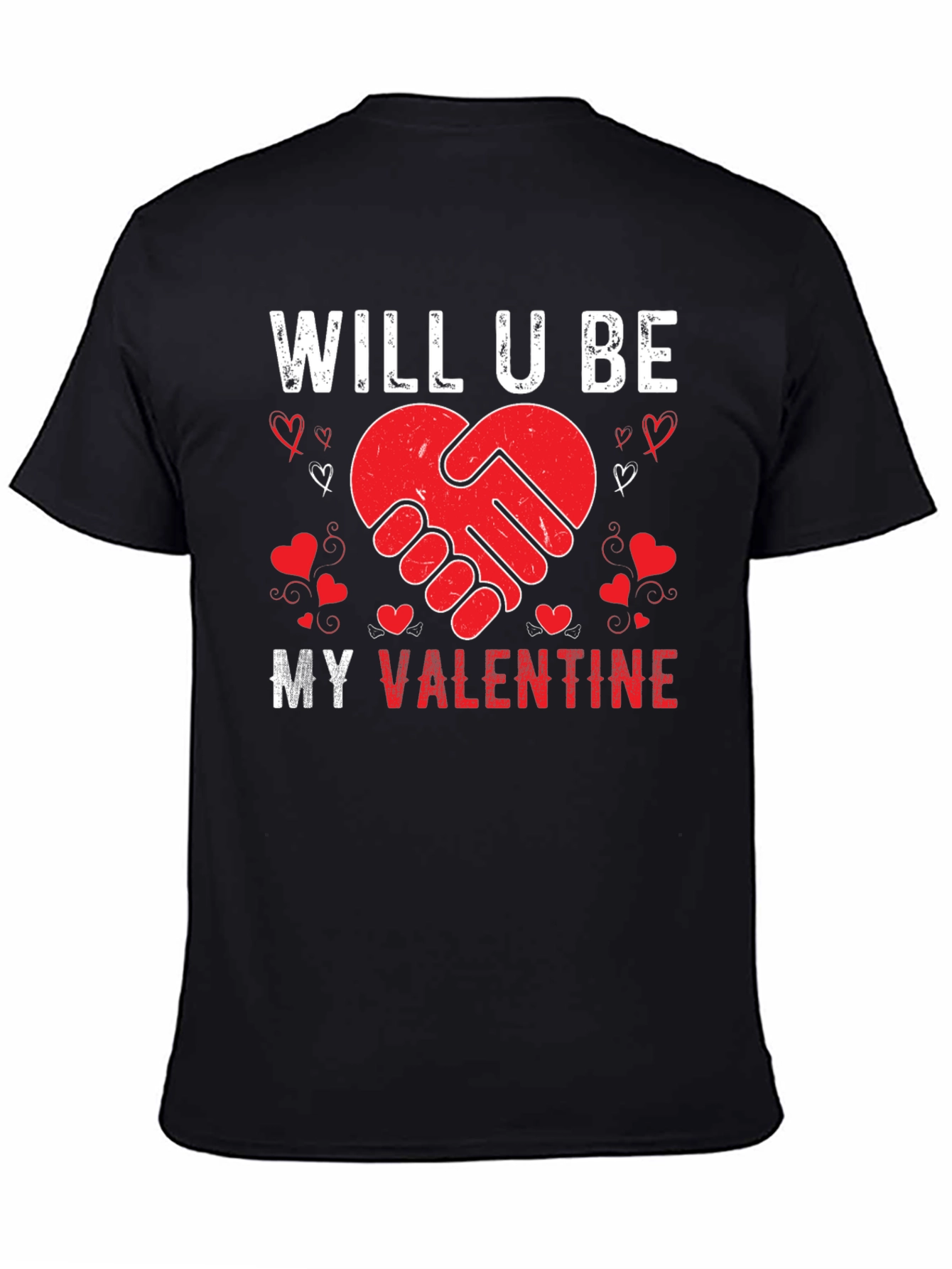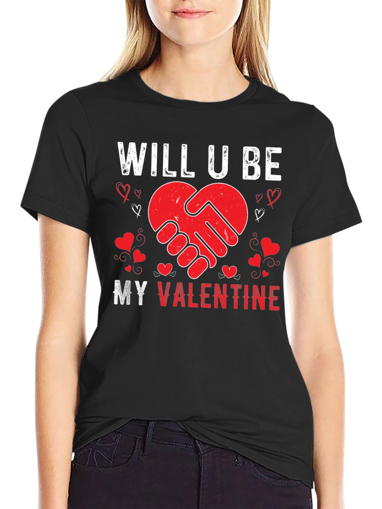 Celebra el amor con esta camiseta negra de San Valentín. Presenta un diseño único con las palabras "WILL U BE" en blanco sobre un corazón rojo formado por dos manos estrechándose. El texto "MY VALENTINE" está debajo en rojo, rodeado de pequeños corazones. Ideal para mostrar tu espíritu romántico en el Día de San Valentín o cualquier día que quieras expresar tu afecto. Perfecta para regalar a tu pareja o para lucir tú mismo. Hecha con materiales de alta calidad para mayor comodidad y durabilidad.