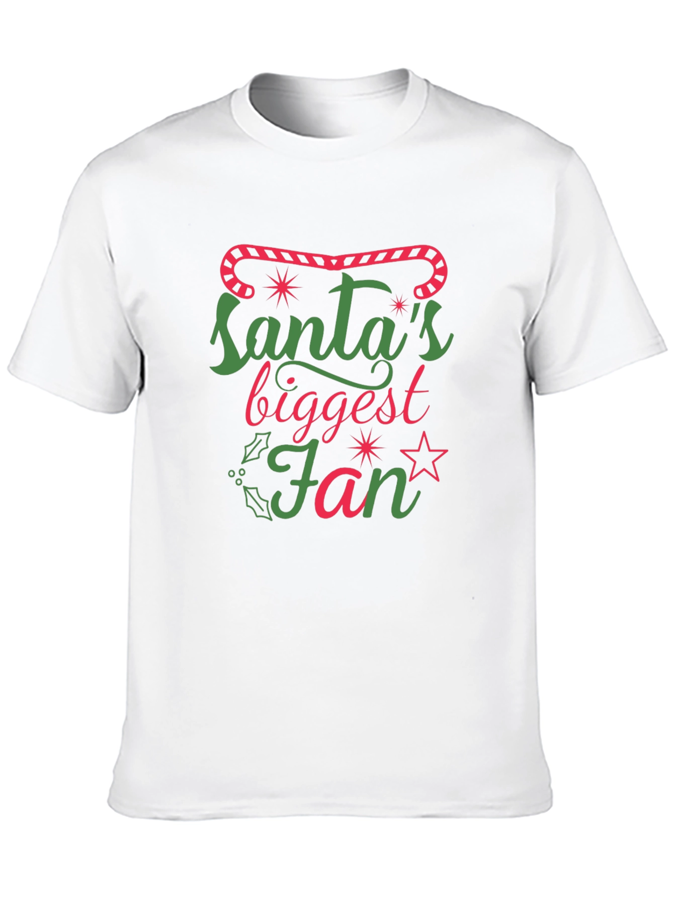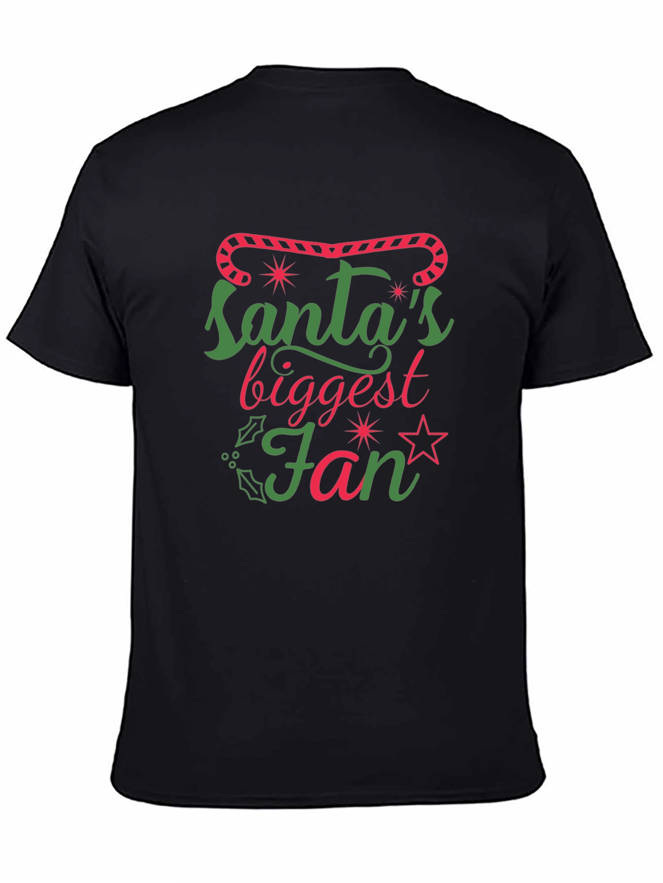 ¡Muestra tu espíritu navideño con esta divertida camiseta negra! Presenta un diseño llamativo con el texto 'Santa's Biggest Fan' en alegres colores verde y rojo, adornado con estrellas y elementos navideños. Perfecta para llevar durante las fiestas, reuniones familiares o simplemente para contagiar alegría navideña. Fabricada con un tejido cómodo y de alta calidad, esta camiseta es ideal para cualquier fan de la Navidad. ¡Un regalo perfecto para ti o para tus seres queridos!