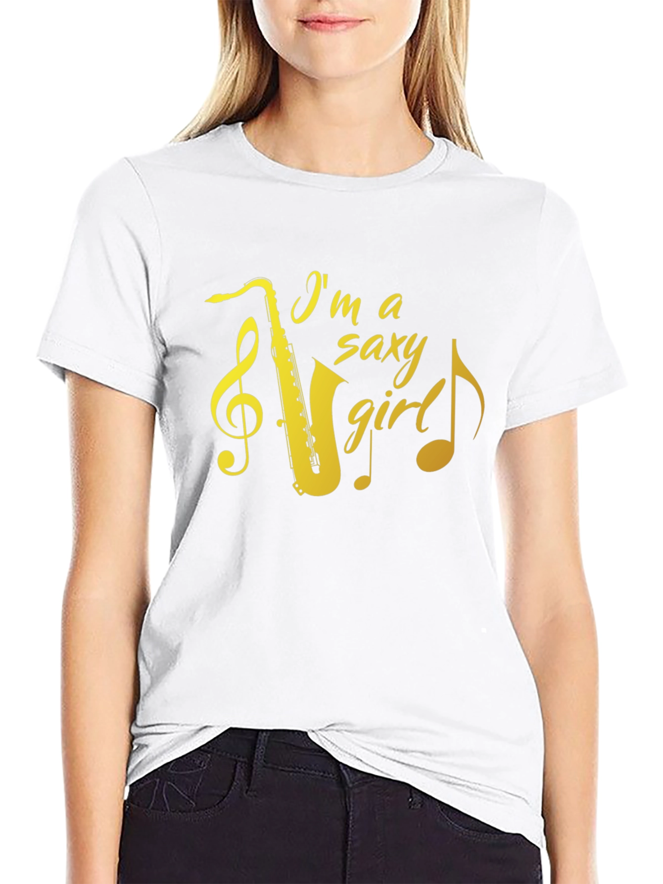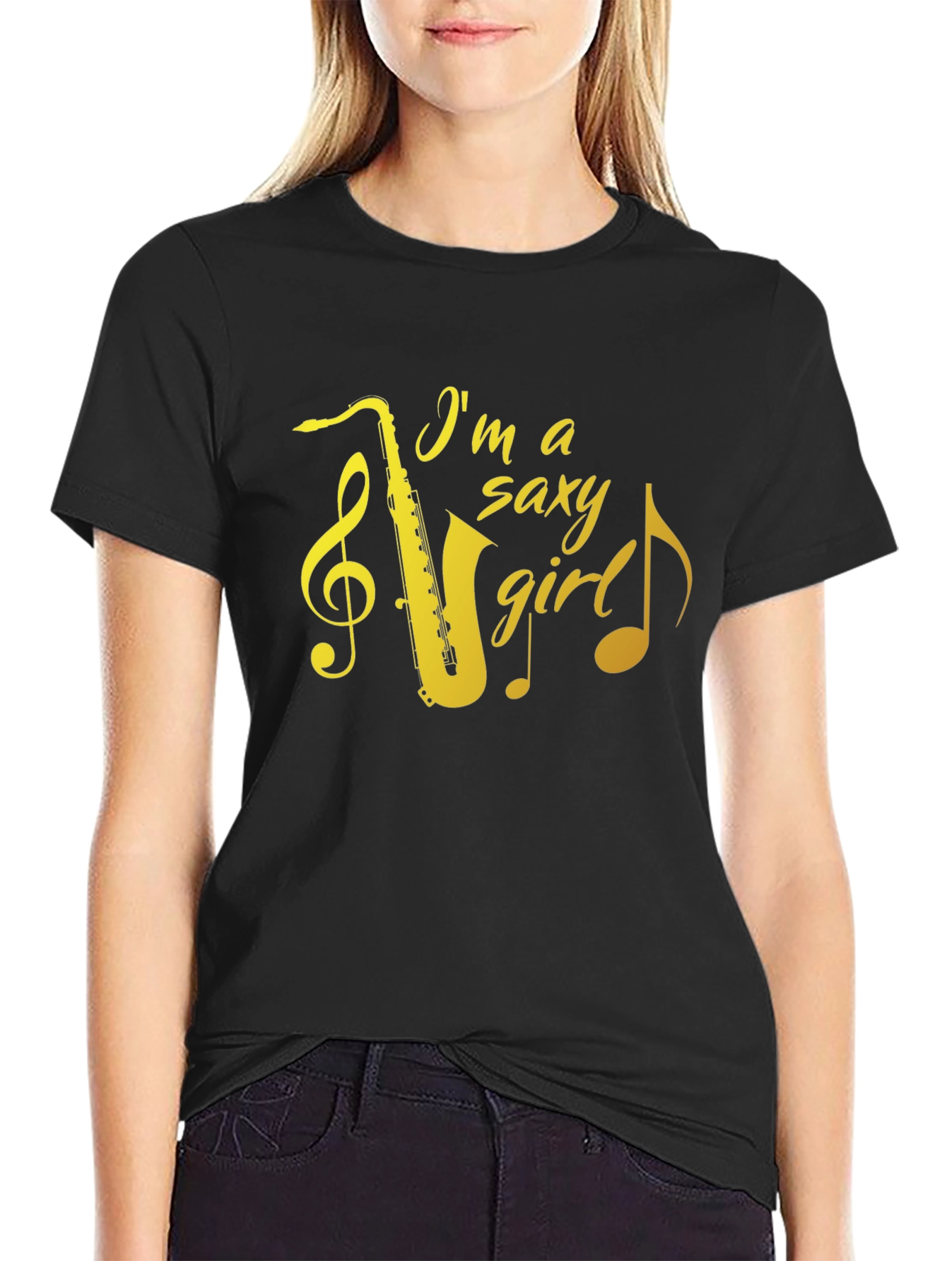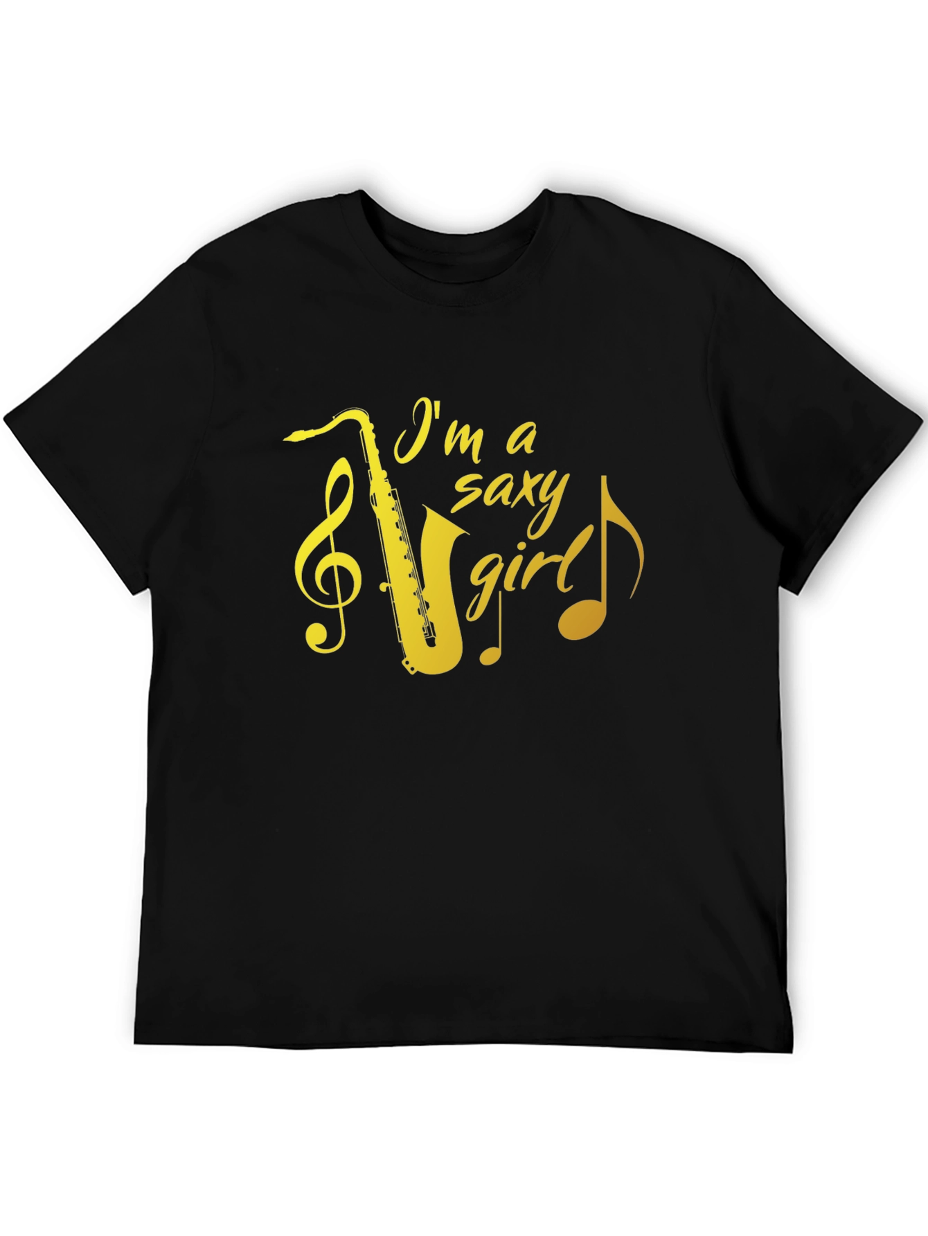 Muestra tu amor por la música con esta elegante camiseta negra. Presenta un diseño llamativo con la frase "I'm a saxy girl" junto a un saxofón dorado y notas musicales. Perfecta para músicos, amantes del jazz y cualquiera que quiera expresar su estilo único. Fabricada con materiales suaves y cómodos, esta camiseta es ideal para el uso diario, conciertos, ensayos o simplemente relajarse con amigos. Un regalo original para esa persona especial que adora el saxofón y la buena música. Destaca con esta prenda original y llena de ritmo.