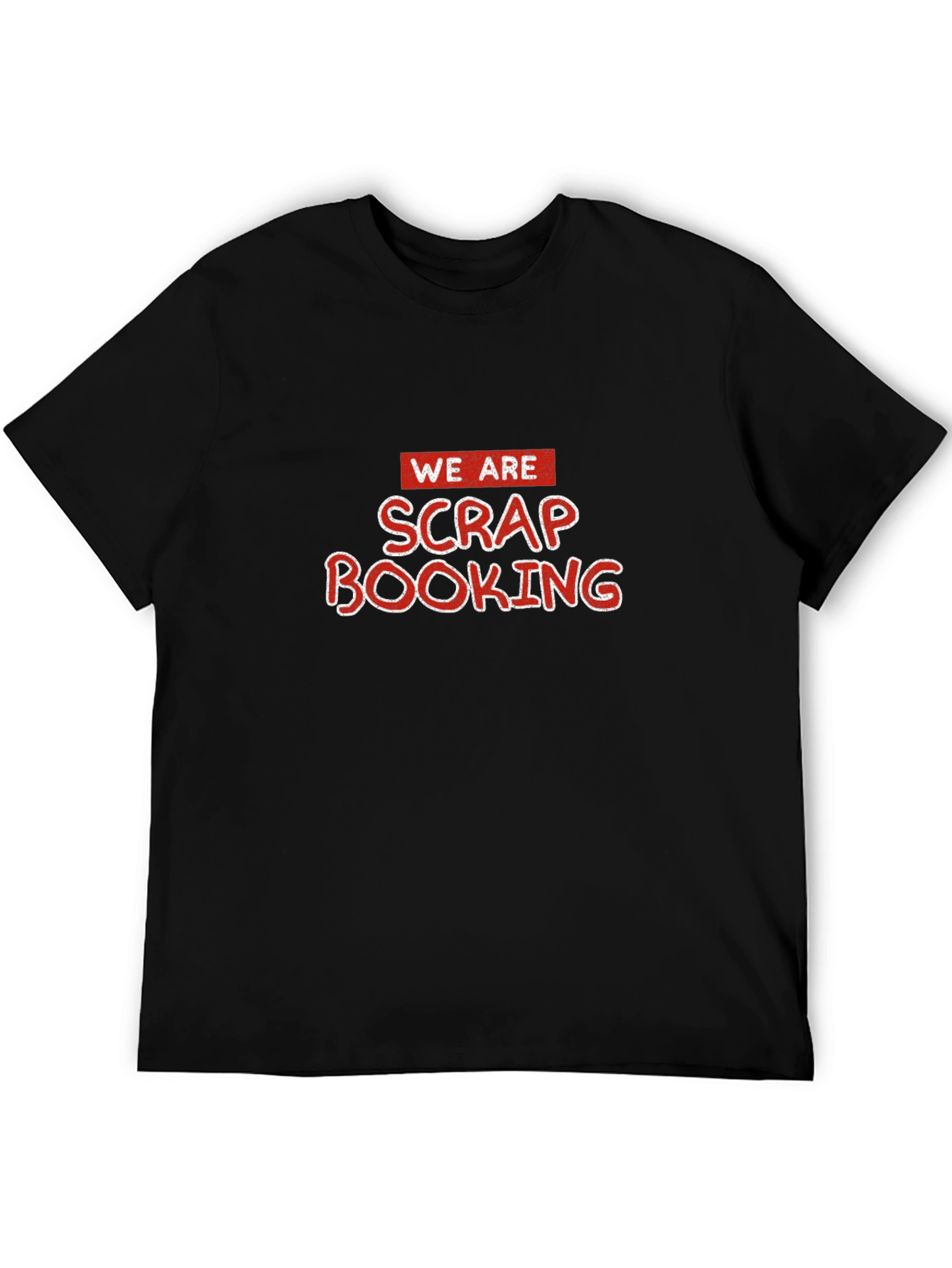 Luce tu pasión por el "scrap booking" con esta camiseta negra de manga corta. El diseño llamativo en rojo y blanco destaca el mensaje "WE ARE SCRAP BOOKING", perfecto para expresar tu amor por las manualidades. Ideal para usar en talleres creativos, reuniones de "scrap booking" o simplemente para el día a día. Fabricada con materiales suaves y cómodos, esta camiseta es perfecta para cualquier aficionado al arte y las manualidades. ¡Muestra tu estilo único y creativo con esta prenda original y divertida!