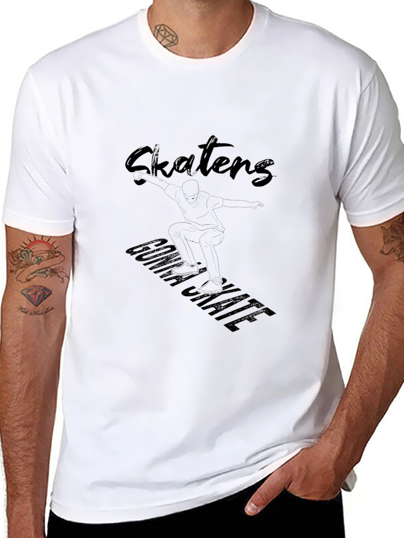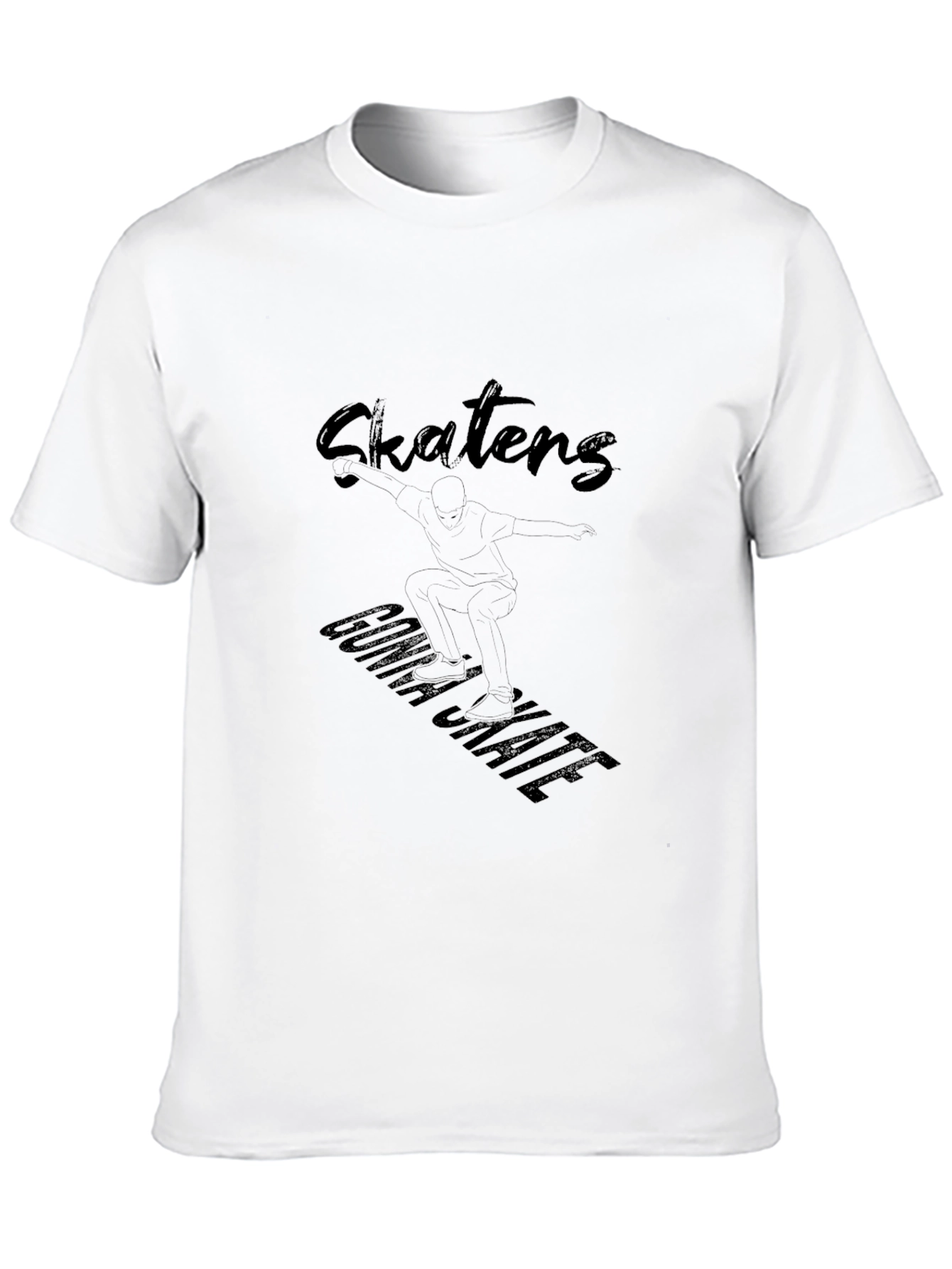Luce un estilo urbano y moderno con esta camiseta negra de manga corta. El diseño presenta un estampado con la frase 'Skaters Gonna Skate' y una ilustración de un skater, ideal para los amantes del skateboarding y la cultura urbana. Fabricada con materiales suaves y cómodos, esta camiseta es perfecta para el uso diario, ya sea para patinar, salir con amigos o simplemente relajarte. Su corte clásico se adapta a cualquier estilo, y su color negro la hace fácil de combinar con cualquier prenda. Muestra tu pasión por el skate con esta prenda única y versátil.