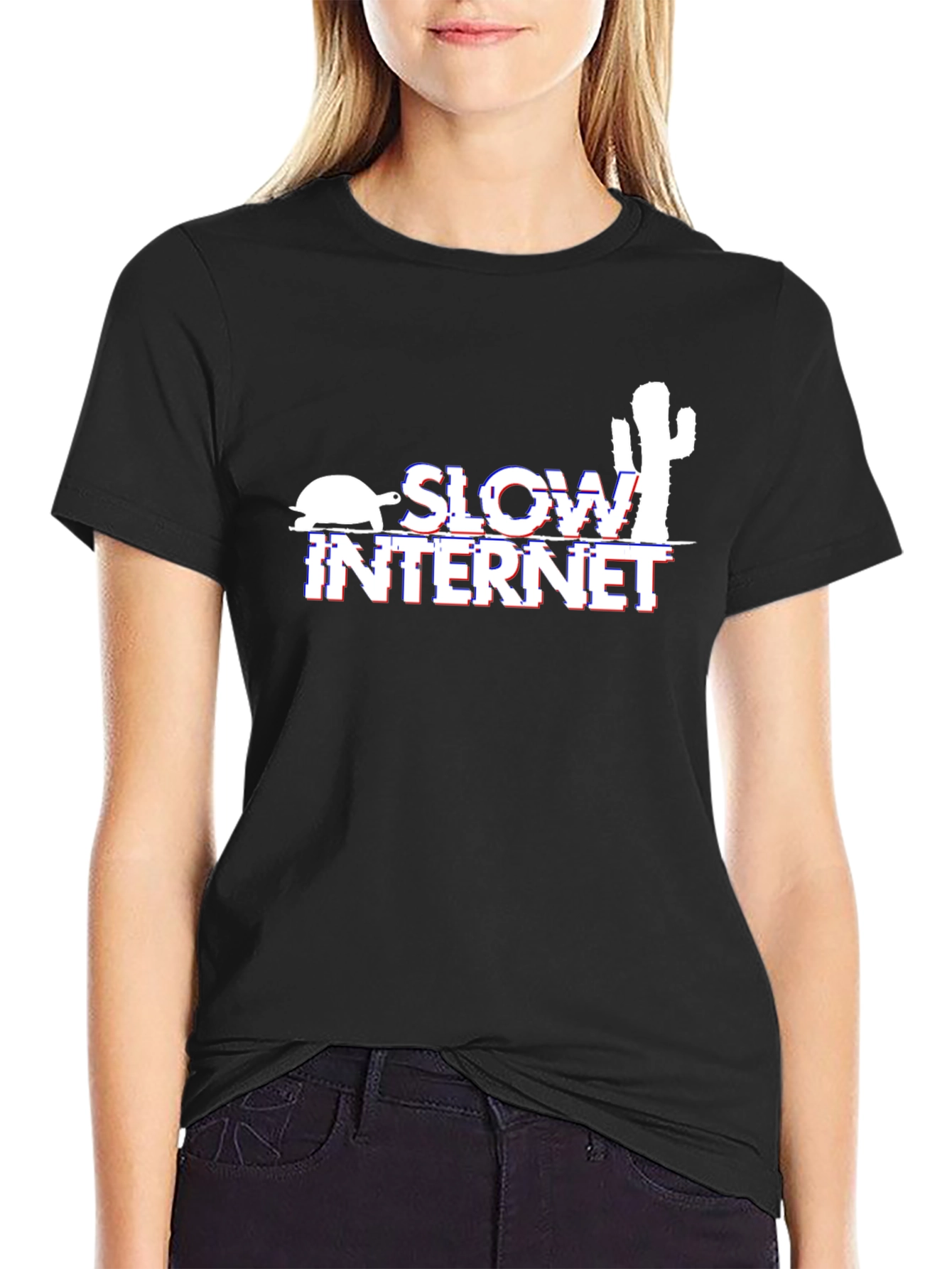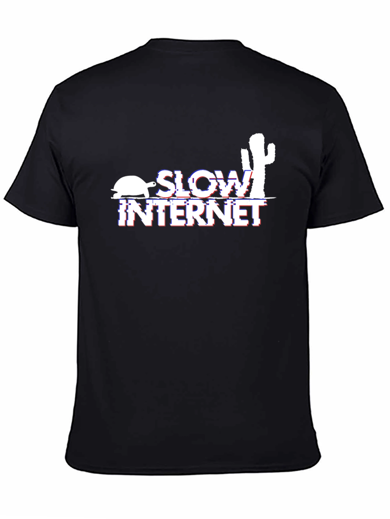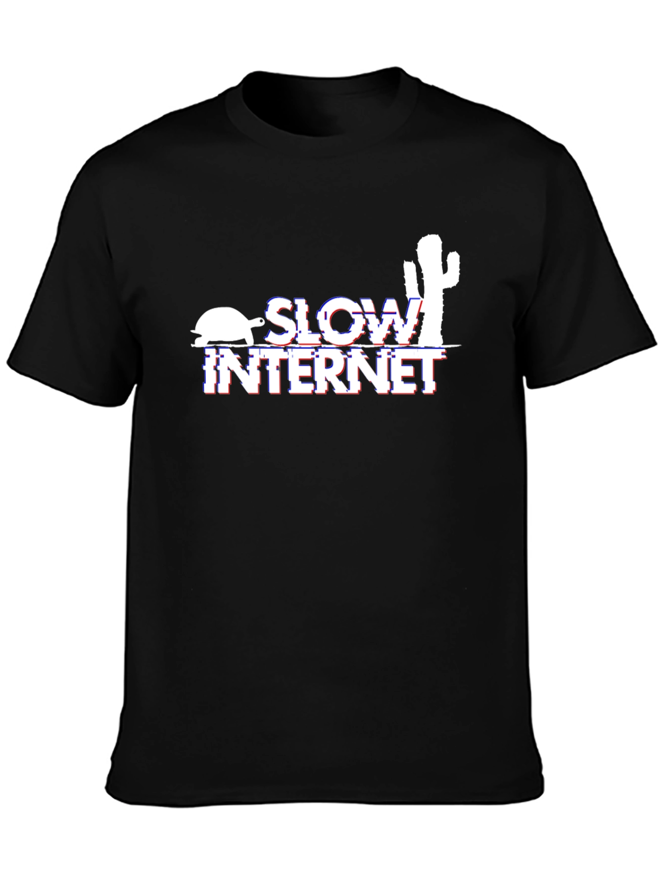 Esta camiseta negra de manga corta presenta un diseño original y humorístico. En el centro, se puede apreciar la frase "SLOW INTERNET" en letras blancas con un efecto glitch que simula una conexión lenta. Acompañando al texto, hay un dibujo de una tortuga a la izquierda y un cactus a la derecha, también en color blanco. Confeccionada en un tejido suave y cómodo, esta camiseta es perfecta para aquellos que disfrutan del sarcasmo y tienen un sentido del humor particular. Ideal para llevar en el día a día, expresar tu personalidad y sacar una sonrisa a los demás. ¡Una prenda llamativa que no pasará desapercibida!