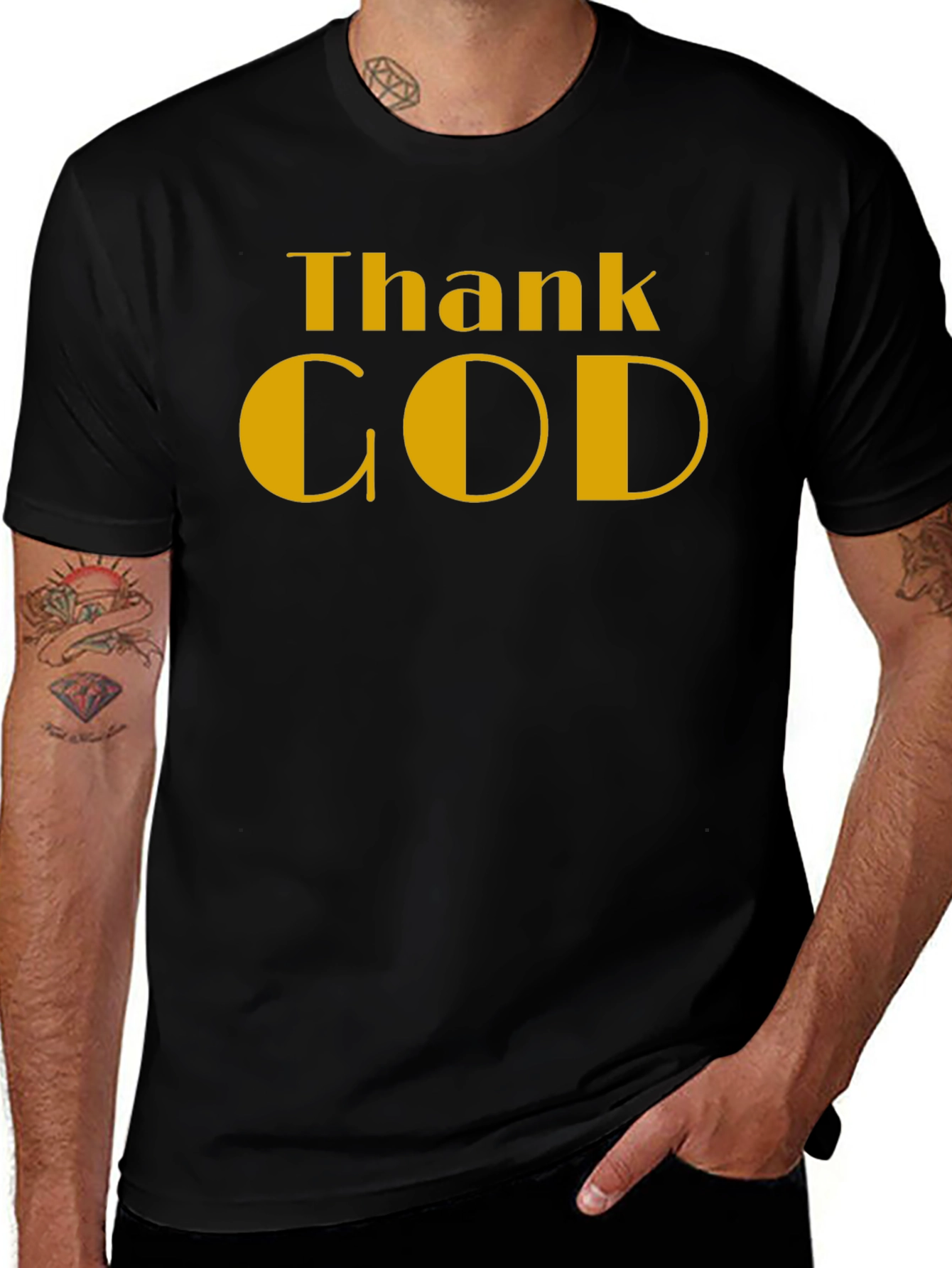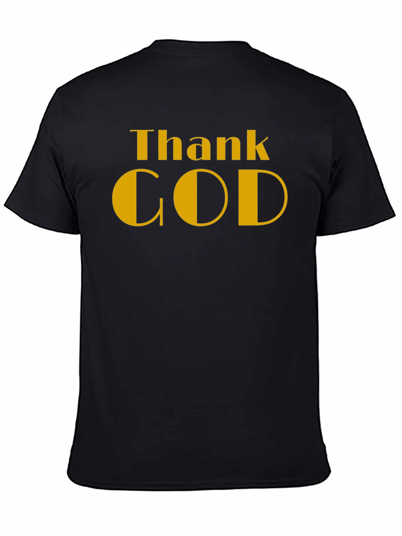 Expresa tu fe con estilo con esta camiseta negra de diseño llamativo. La frase "Thank God" en letras doradas destaca sobre el fondo oscuro, creando un contraste elegante y moderno. Perfecta para uso diario, esta camiseta ofrece comodidad y un mensaje inspirador. Ideal para combinar con jeans, pantalones cortos o faldas, esta prenda es una declaración de gratitud y un complemento versátil para tu guardarropa. Lleva contigo un recordatorio constante de bendiciones y muestra tu fe con orgullo. Su diseño simple pero impactante la convierte en un regalo significativo para amigos y familiares.
