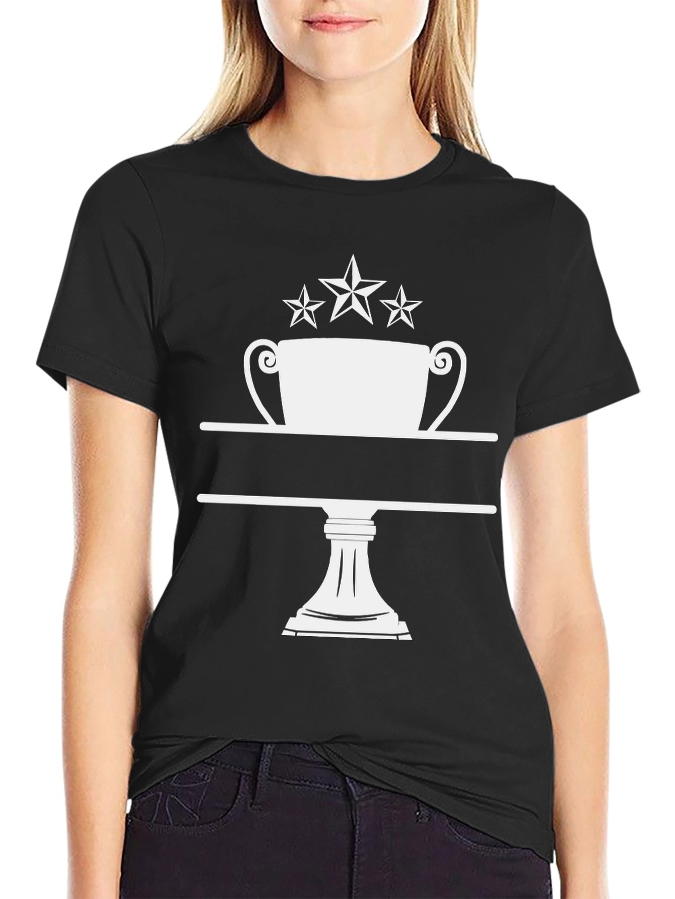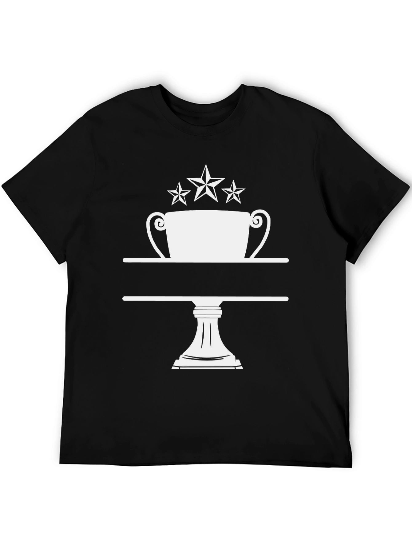Luce un estilo único con esta camiseta negra de manga corta. Presenta un llamativo diseño blanco de un trofeo estilizado, coronado con tres estrellas, ideal para destacar tu espíritu ganador. La prenda parece estar confeccionada en un tejido suave y cómodo, perfecto para el uso diario. Esta camiseta es una excelente opción para expresar tu personalidad y pasión por el éxito. Combínala con tus jeans favoritos para un look casual o úsala para entrenar y mostrar tu dedicación. ¡Consigue la tuya y celebra tus logros con estilo!