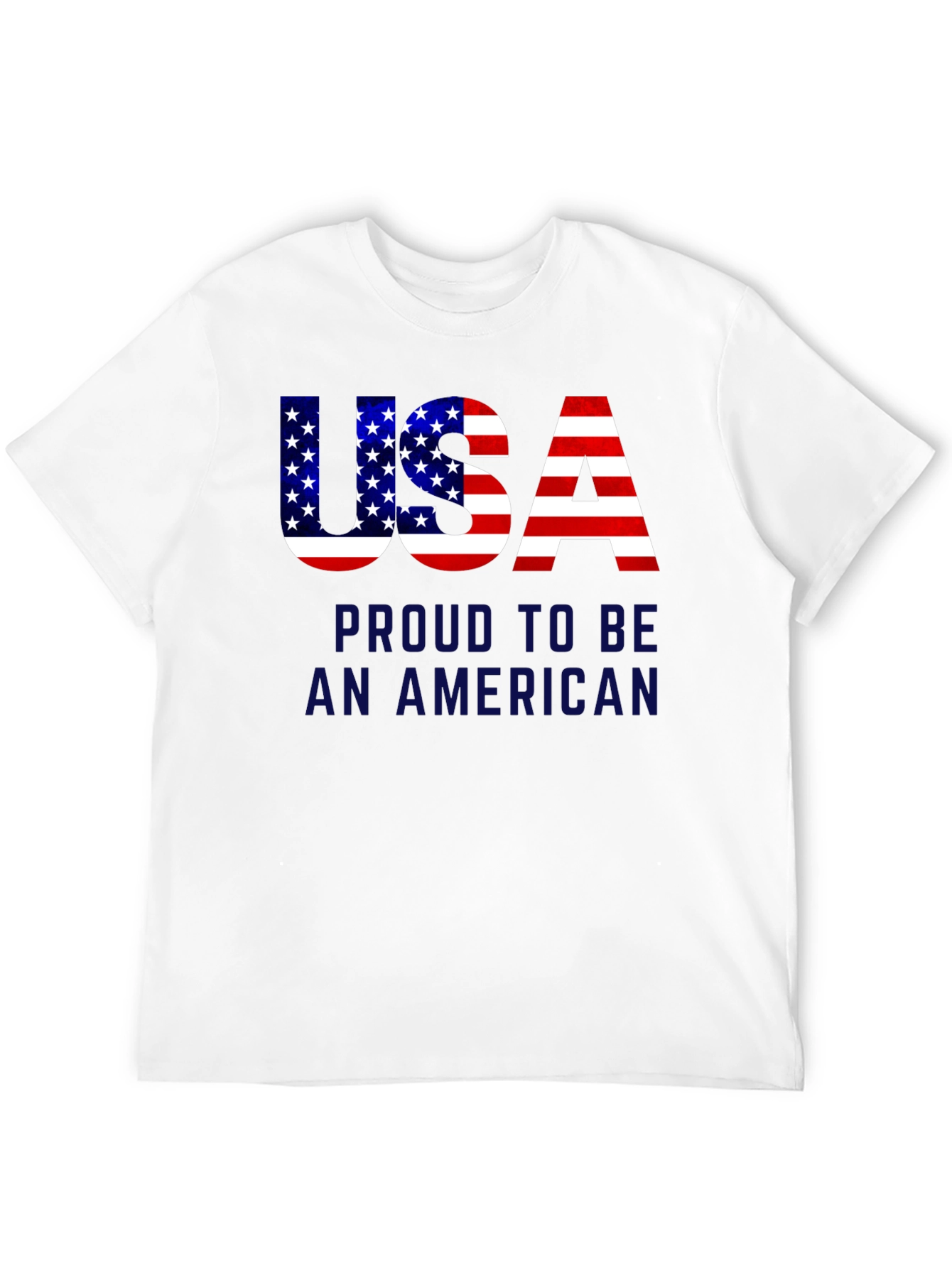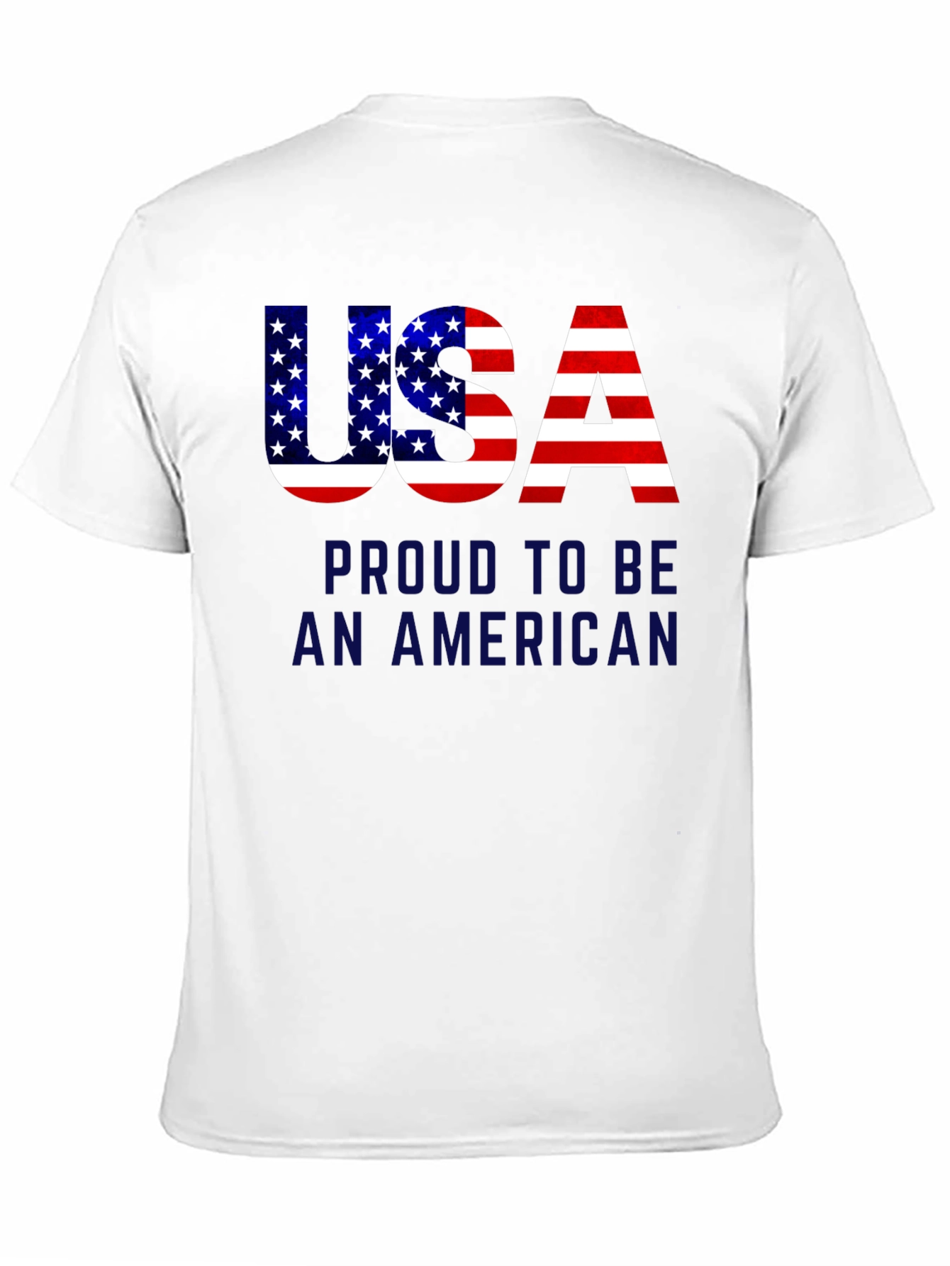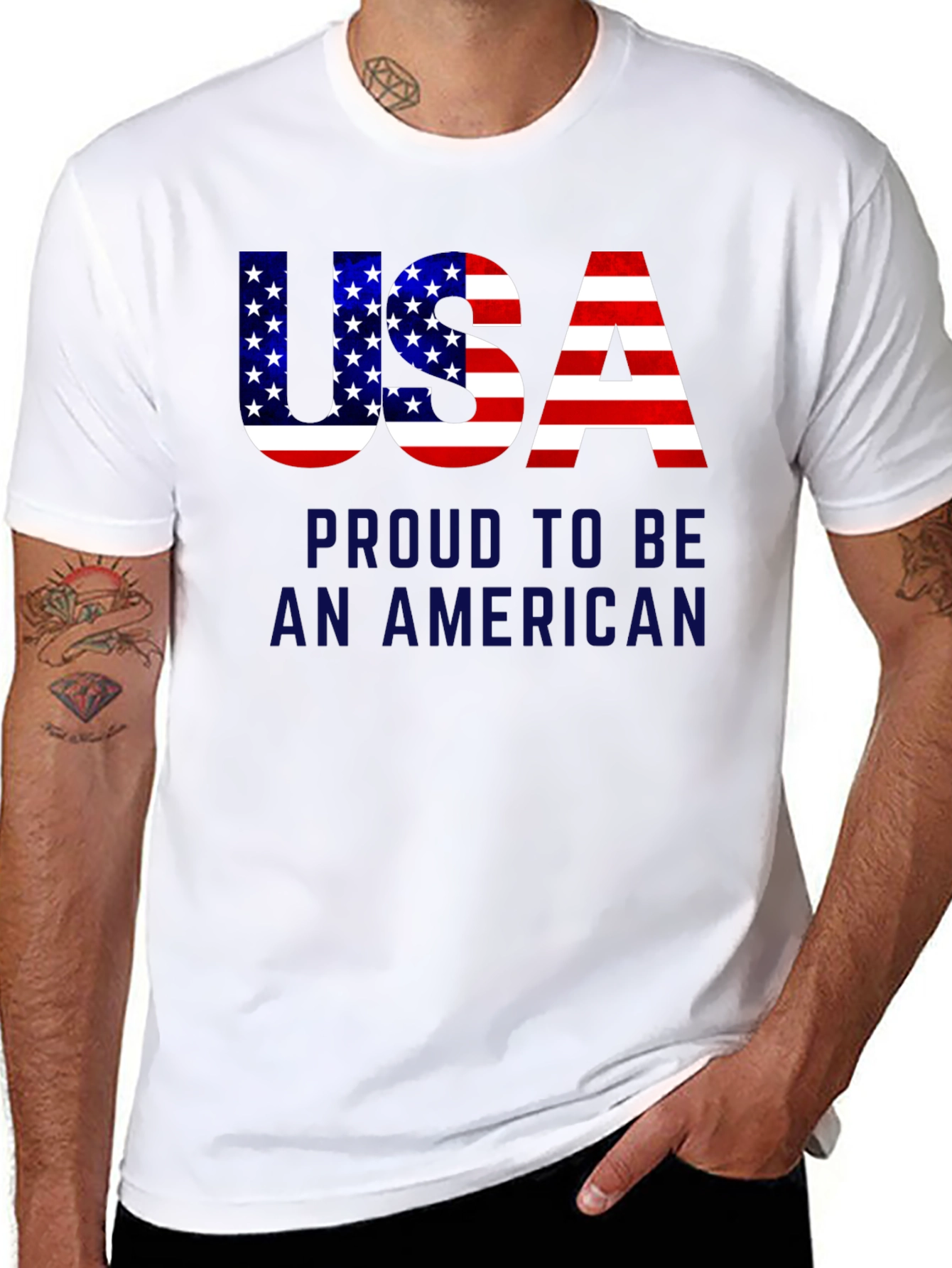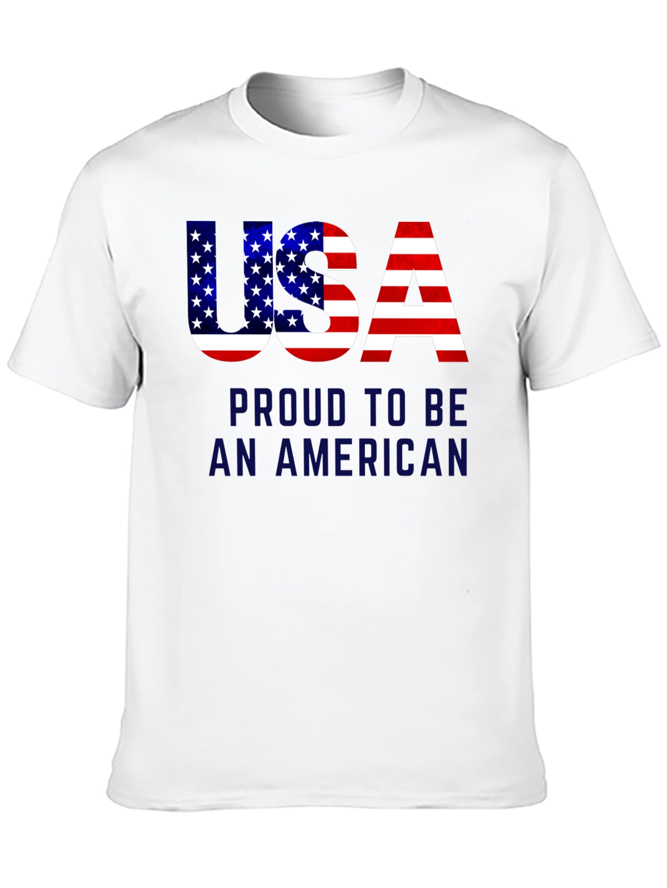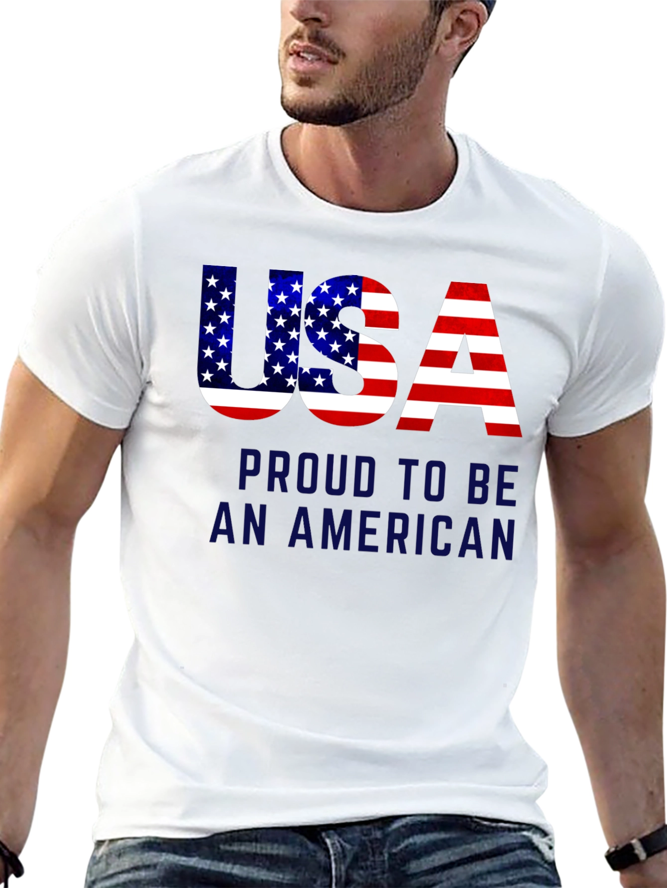 Demuestra tu orgullo americano con esta camiseta negra de manga corta. Presenta un diseño patriótico con las letras "USA" rellenas con la bandera estadounidense, junto con la frase "Proud to be an American" en azul. Ideal para celebrar el 4 de julio, el Día de los Veteranos o cualquier ocasión en la que quieras mostrar tu patriotismo. Su corte clásico y cómodo la hace perfecta para el uso diario. Fabricada con materiales de calidad para asegurar durabilidad y confort. Una prenda imprescindible para cualquier americano orgulloso.