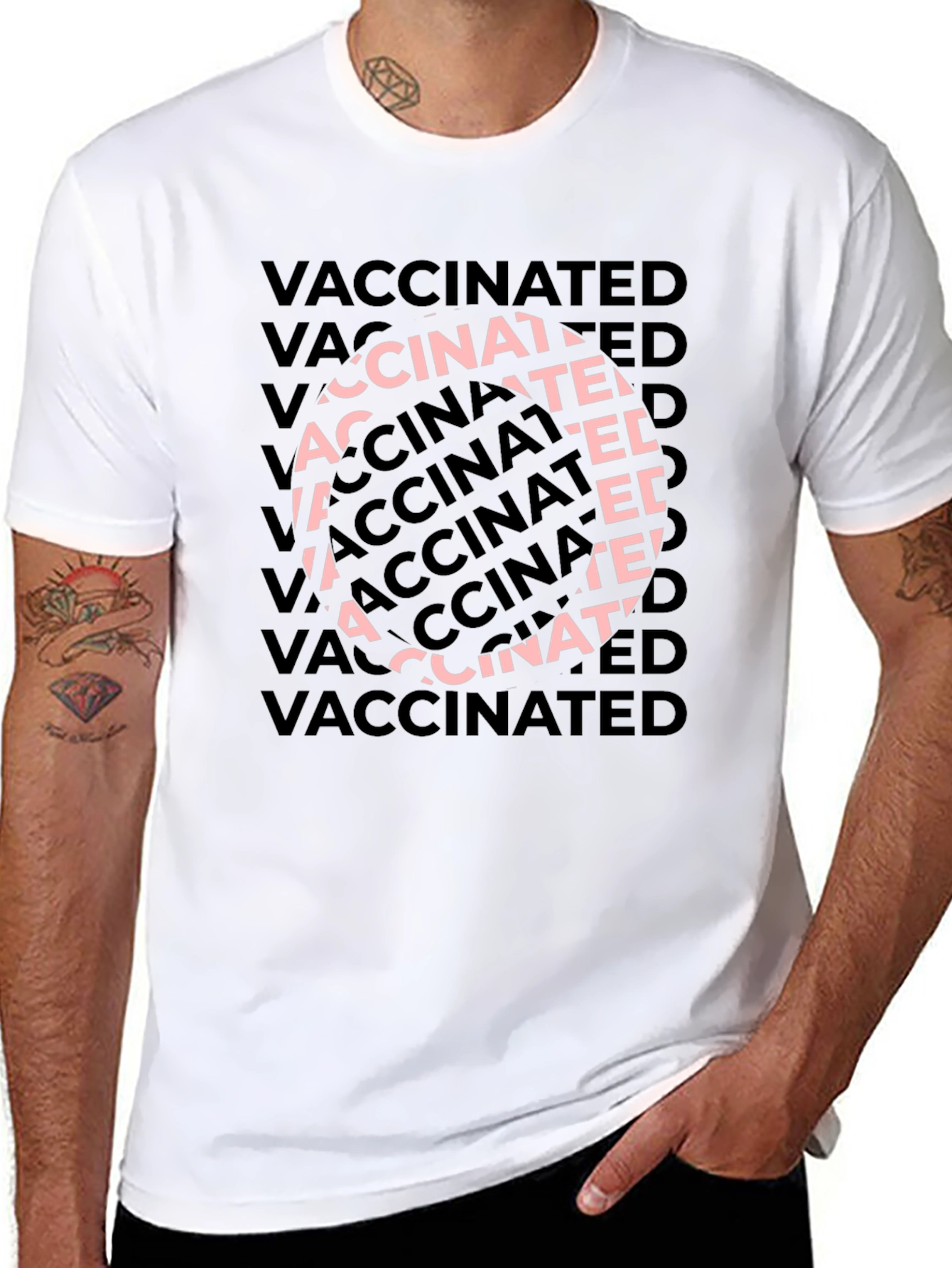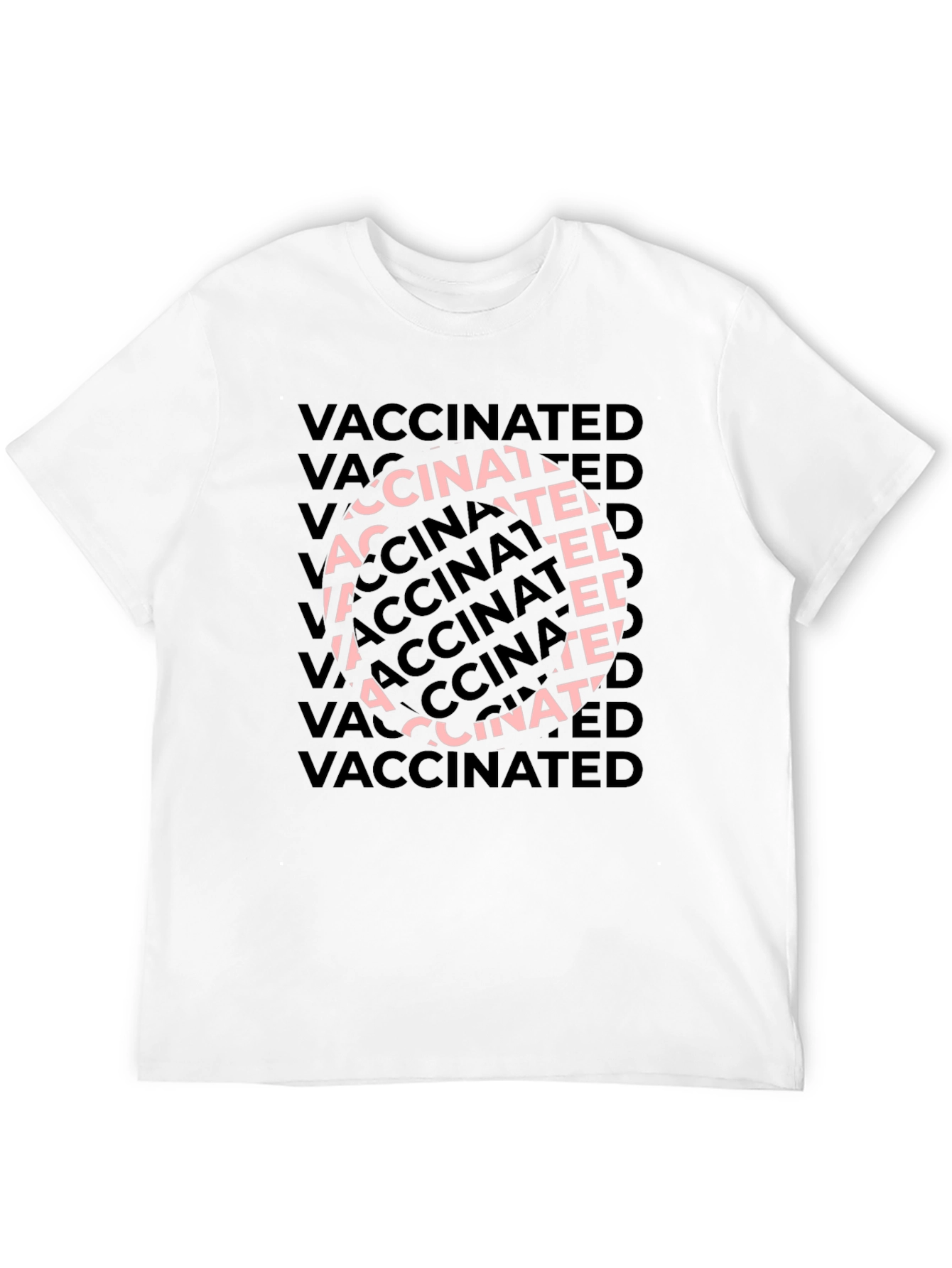 Esta elegante camiseta negra presenta un diseño audaz y llamativo con la palabra "VACCINATED" repetida en un patrón circular, creando un efecto visual dinámico y moderno. El diseño juega con dos tonos, resaltando ciertas letras en rosa, que contrastan con el fondo negro de la camiseta, aportando un toque de estilo y distinción. Fabricada con materiales suaves al tacto, esta prenda ofrece comodidad y durabilidad, ideal para el uso diario. Perfecta para expresar tu postura sobre la vacunación con estilo, esta camiseta es ideal para combinar con jeans, pantalones casuales o incluso debajo de una chaqueta. Su diseño único la convierte en una excelente opción para eventos informales, salidas con amigos o simplemente para lucir un look relajado y a la moda. ¡Añade esta prenda única a tu guardarropa y marca la diferencia!
