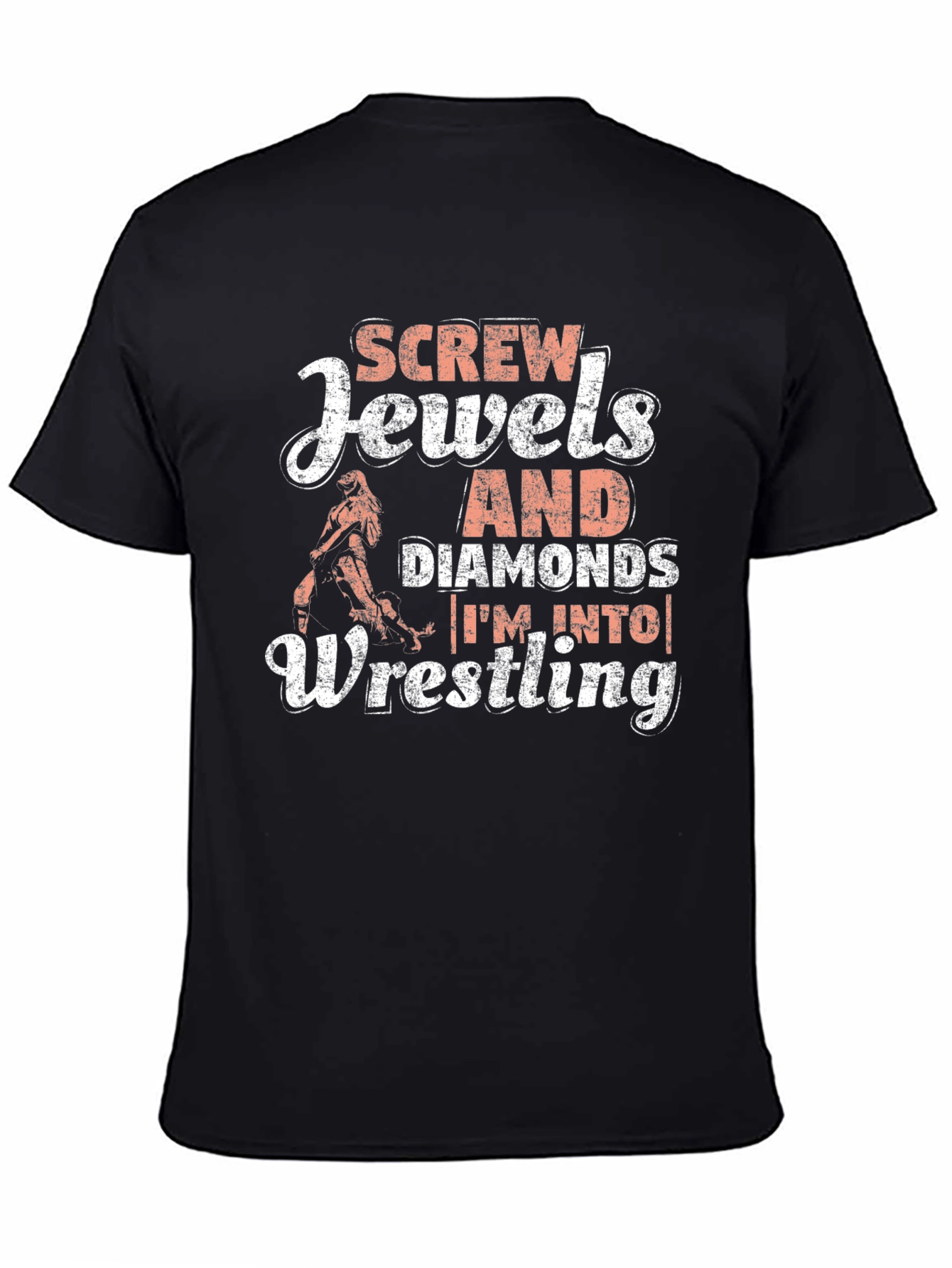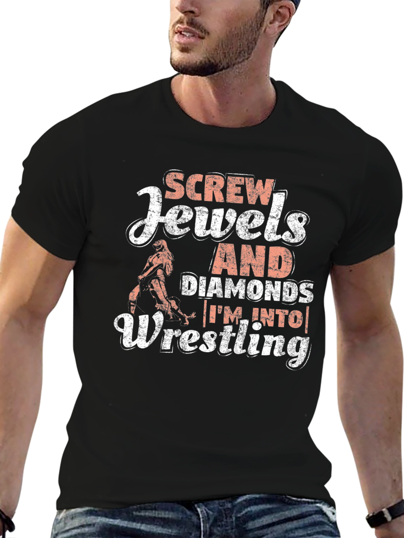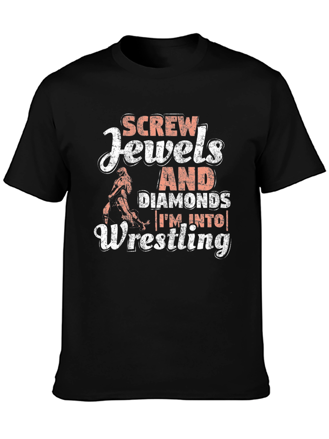 Muestra tu pasión por la lucha libre con esta llamativa camiseta negra. Con un diseño audaz que proclama "Screw Jewels and Diamonds I'm Into Wrestling", esta camiseta es perfecta para cualquier aficionado. El diseño incorpora una ilustración de dos luchadores en acción. Fabricada con materiales suaves y cómodos, es ideal para uso diario, eventos deportivos o simplemente para relajarte en casa. Esta camiseta es una forma original de mostrar tu amor por el deporte, diferenciándote del resto. ¡Consigue la tuya y demuestra que prefieres un buen combate a cualquier joya!