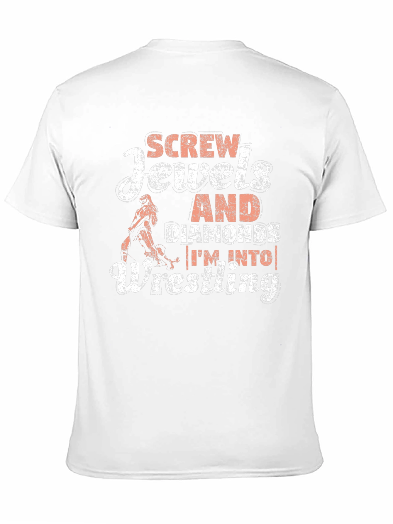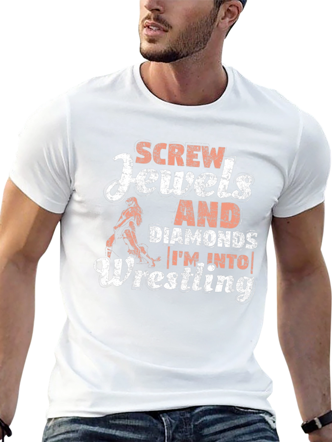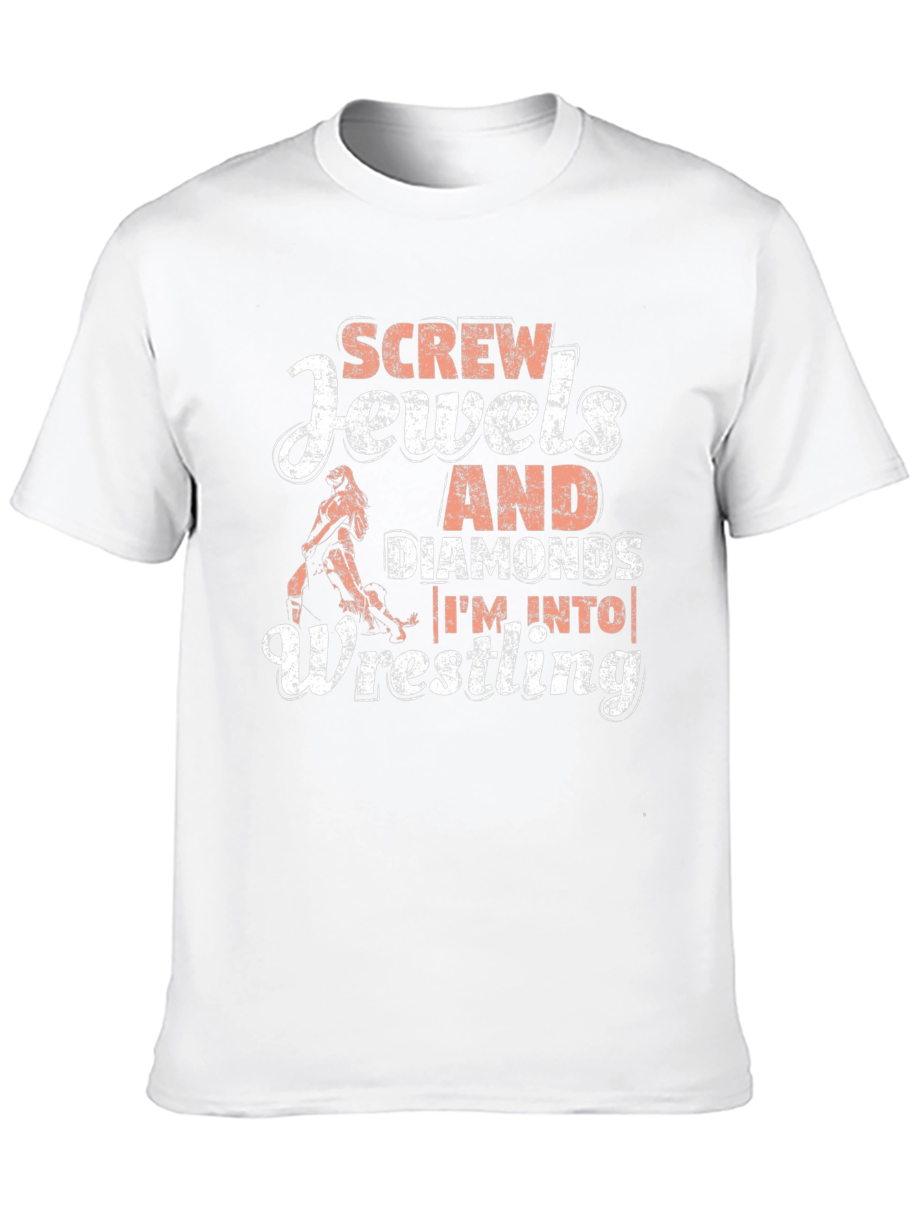 Muestra tu pasión por la lucha libre con esta llamativa camiseta negra. Con un diseño audaz que proclama "Screw Jewels and Diamonds I'm Into Wrestling", esta camiseta es perfecta para cualquier aficionado. El diseño incorpora una ilustración de dos luchadores en acción. Fabricada con materiales suaves y cómodos, es ideal para uso diario, eventos deportivos o simplemente para relajarte en casa. Esta camiseta es una forma original de mostrar tu amor por el deporte, diferenciándote del resto. ¡Consigue la tuya y demuestra que prefieres un buen combate a cualquier joya!